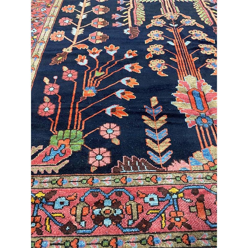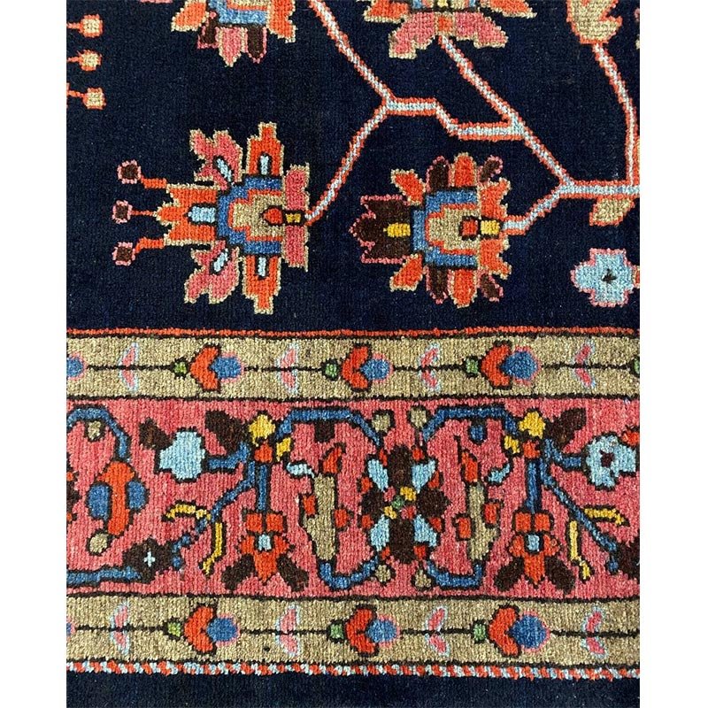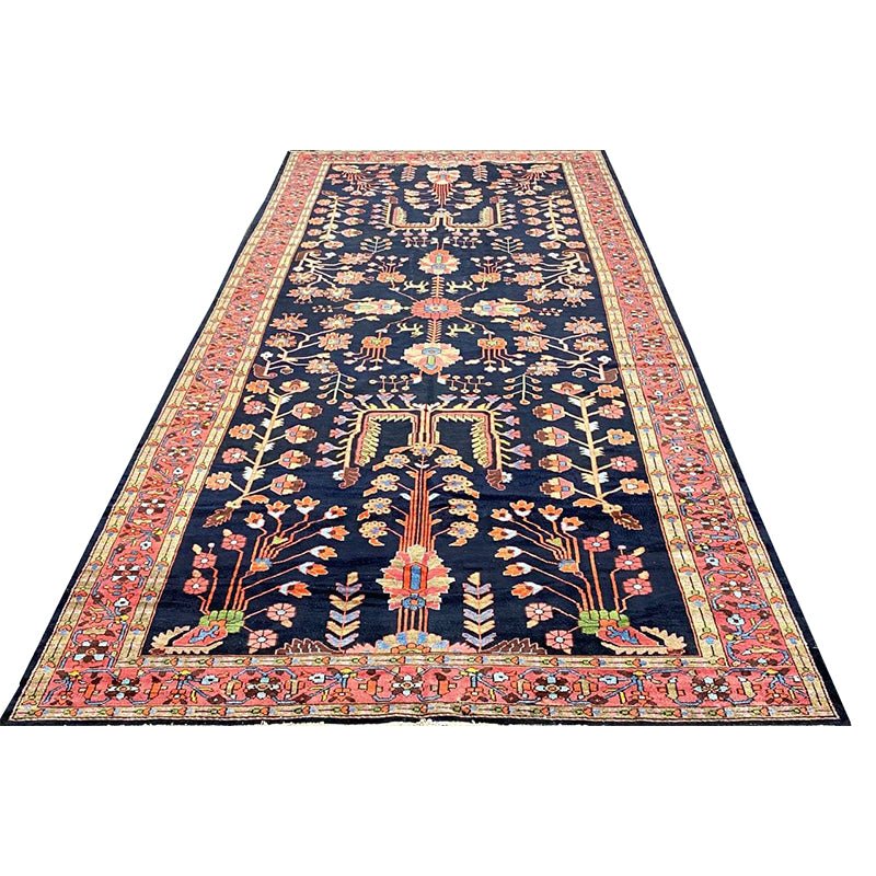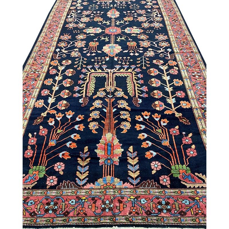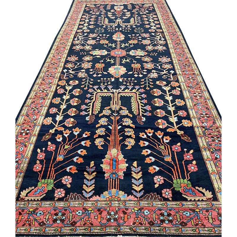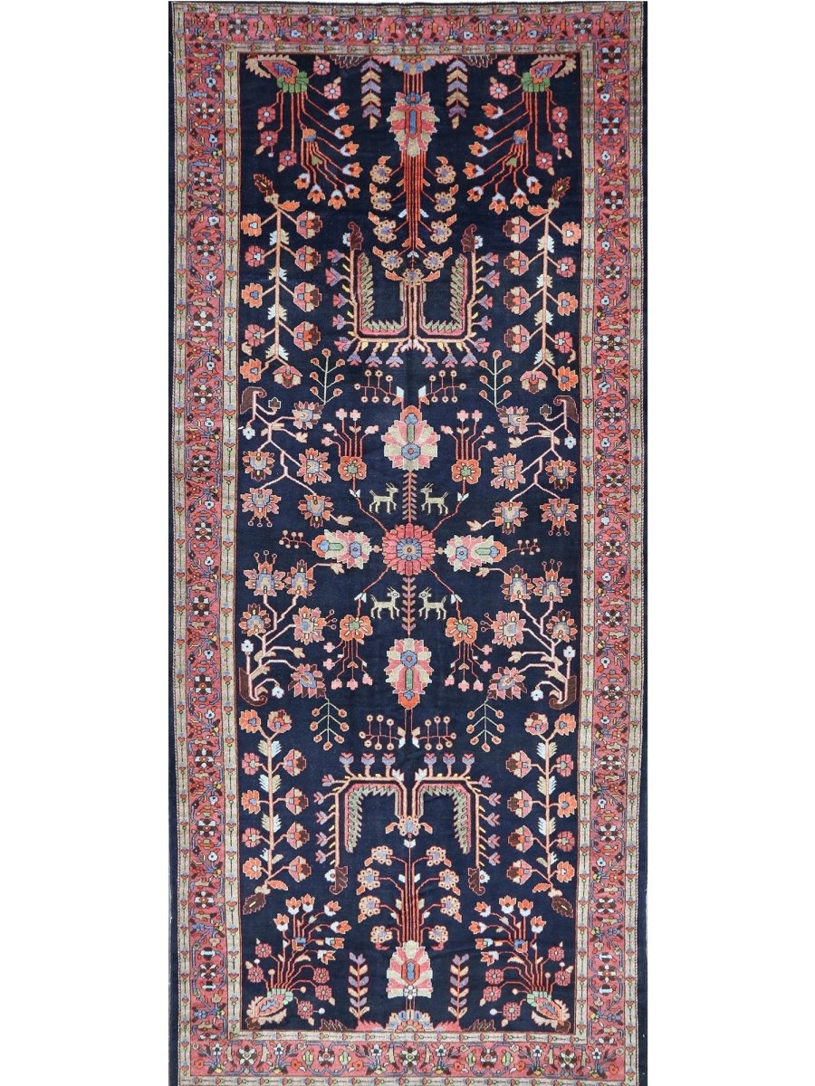 Discover the beauty of this 7x17 Old Persian Hamadan Area Rug. Handwoven in Persia, this rug showcases skilled artistry. Its size makes it an excellent choice for hallways, entryways, and narrow spaces, adding a touch of traditional elegance to your decor. The pattern features a geometric design and floral motifs, giving it a unique and eye-catching feel. The color palette includes a deep navy blue as a primary color, complemented by red, beige, and light pink tones within the geometric motifs and borders. These colors work together to create a distinctive ambiance. Made from durable wool, this rug is more than just a floor covering; it's a work of art that will enhance your home decor for years. Enjoy the lasting charm of a handwoven rug, plus free US shipping.