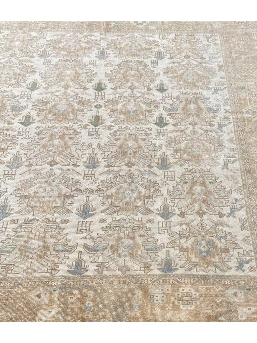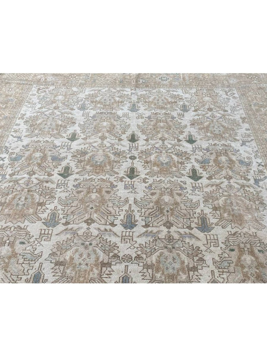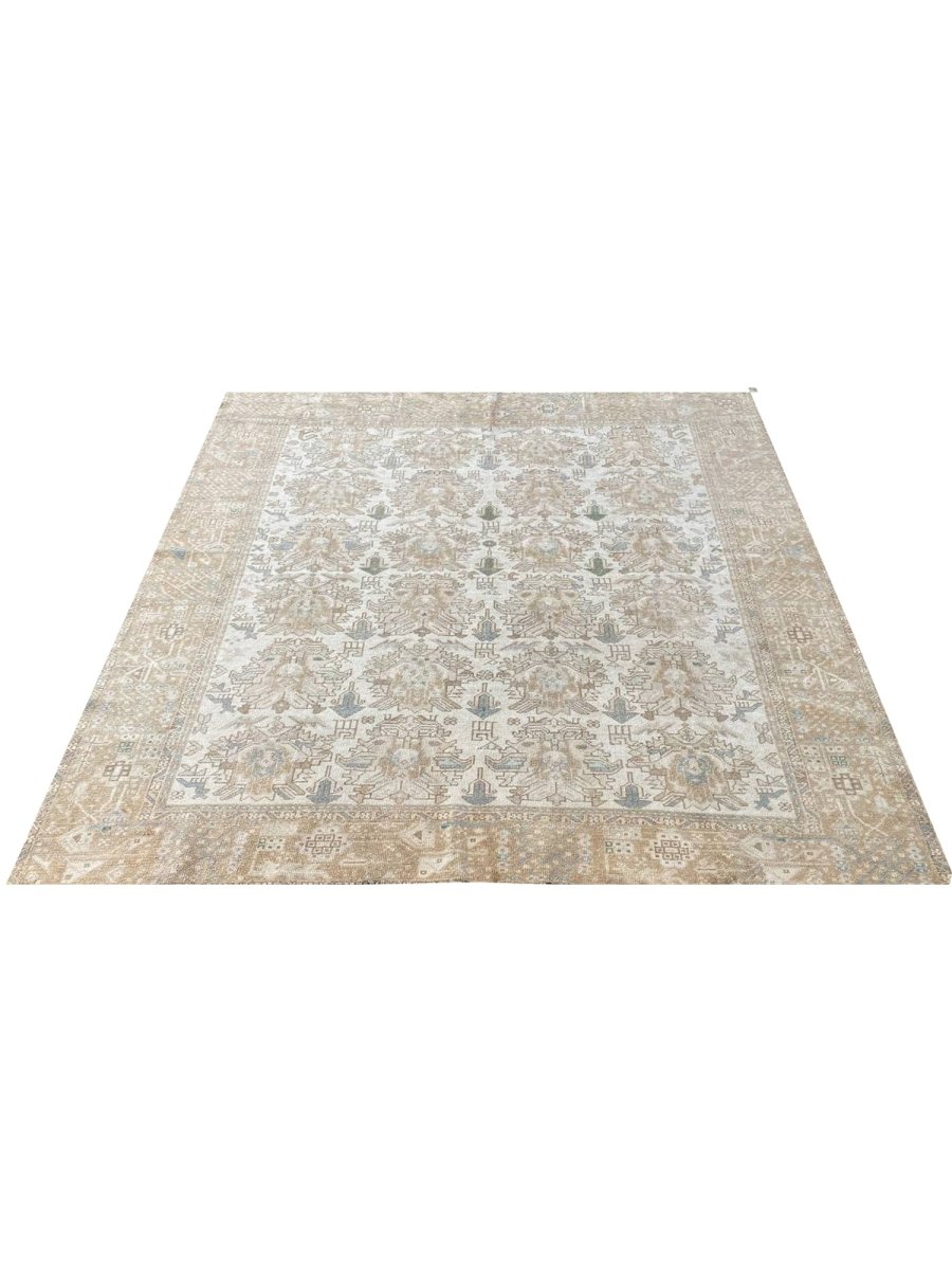 Discover the beauty of this 7x7 Old Persian Karajeh Area Rug. Handwoven in Persia, this rug showcases skilled artistry. Its square size makes it a unique and versatile choice for various spaces in your home, like bedrooms or living rooms. The geometric pattern, characteristic of Karajeh rugs, gives it a distinctive and eye-catching feel. The color palette includes neutral beige, light brown, and gray tones within the geometric motifs and borders. These earthy tones work together to create a warm and inviting ambiance. Made from durable wool, this rug is more than just a floor covering; it's a work of art that will enhance your home decor for years. Enjoy the lasting charm of a handwoven rug, plus free US shipping.