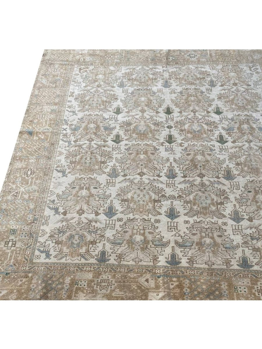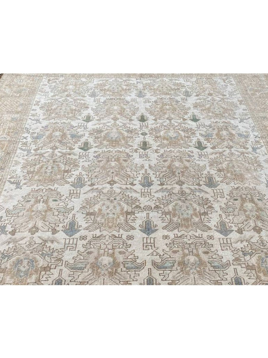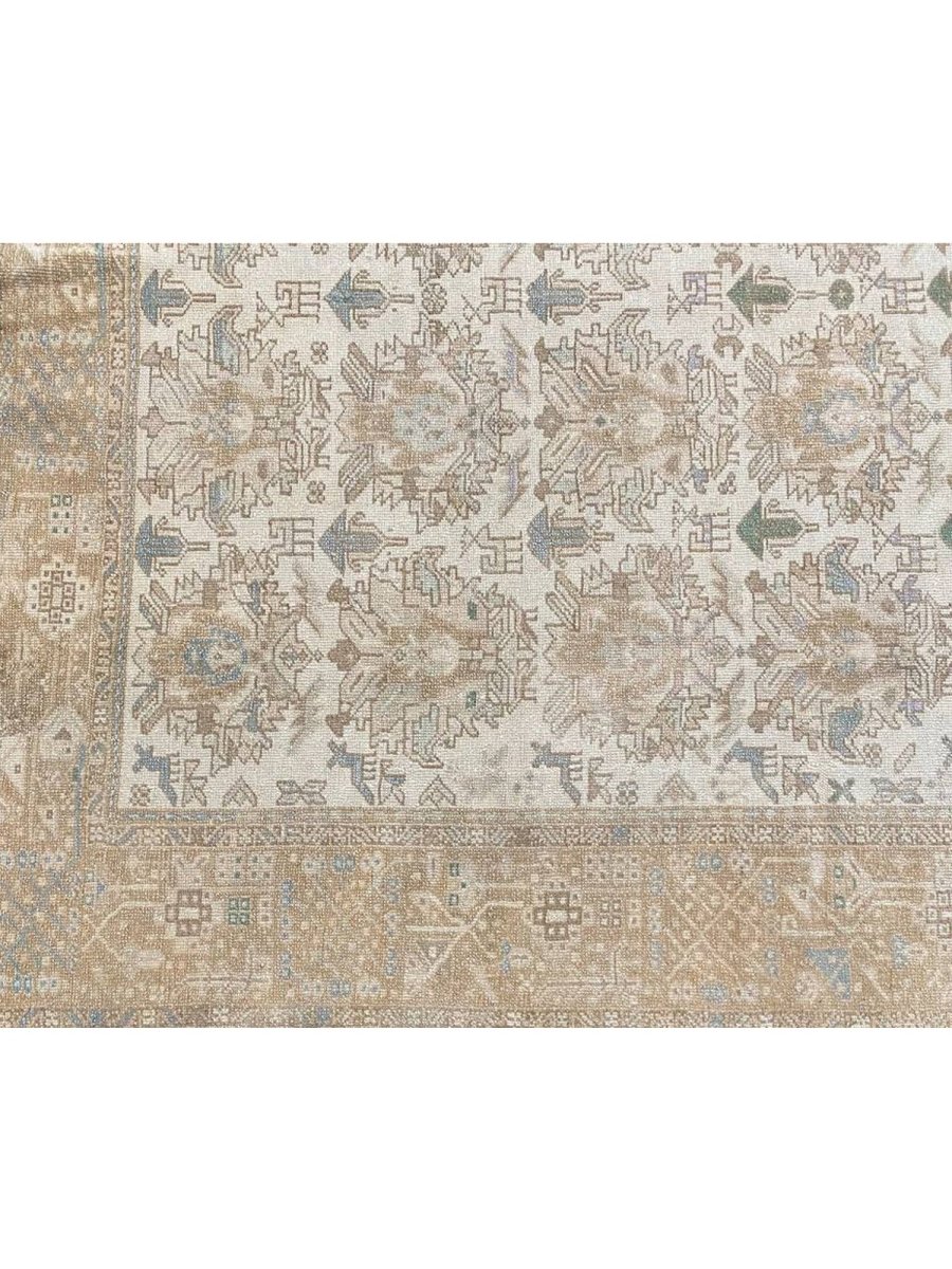 Discover the beauty of this 7x7 Old Persian Karajeh Area Rug. Handwoven in Persia, this rug showcases skilled artistry. Its square size makes it a unique and versatile choice for various spaces in your home, like bedrooms or living rooms. The geometric pattern, characteristic of Karajeh rugs, gives it a distinctive and eye-catching feel. The color palette includes neutral beige, light brown, and gray tones within the geometric motifs and borders. These earthy tones work together to create a warm and inviting ambiance. Made from durable wool, this rug is more than just a floor covering; it's a work of art that will enhance your home decor for years. Enjoy the lasting charm of a handwoven rug, plus free US shipping.