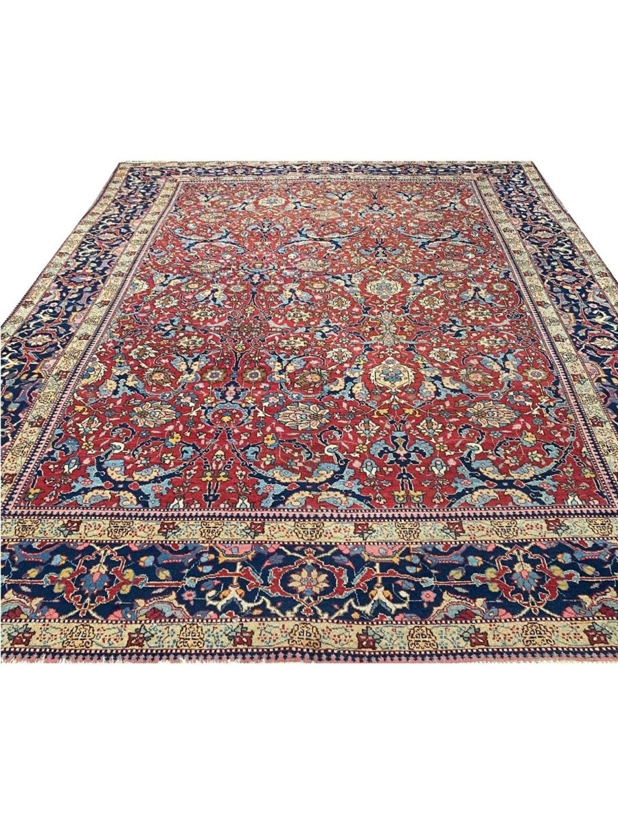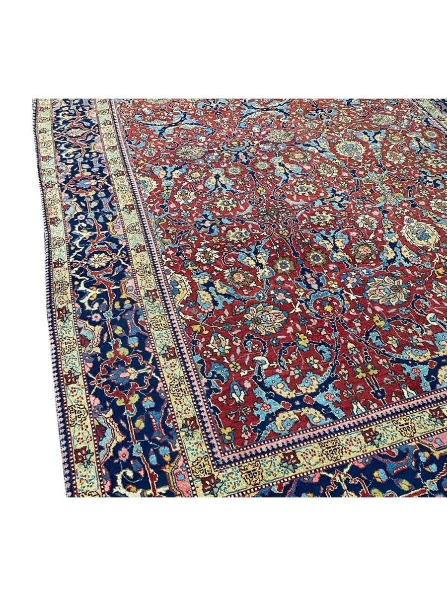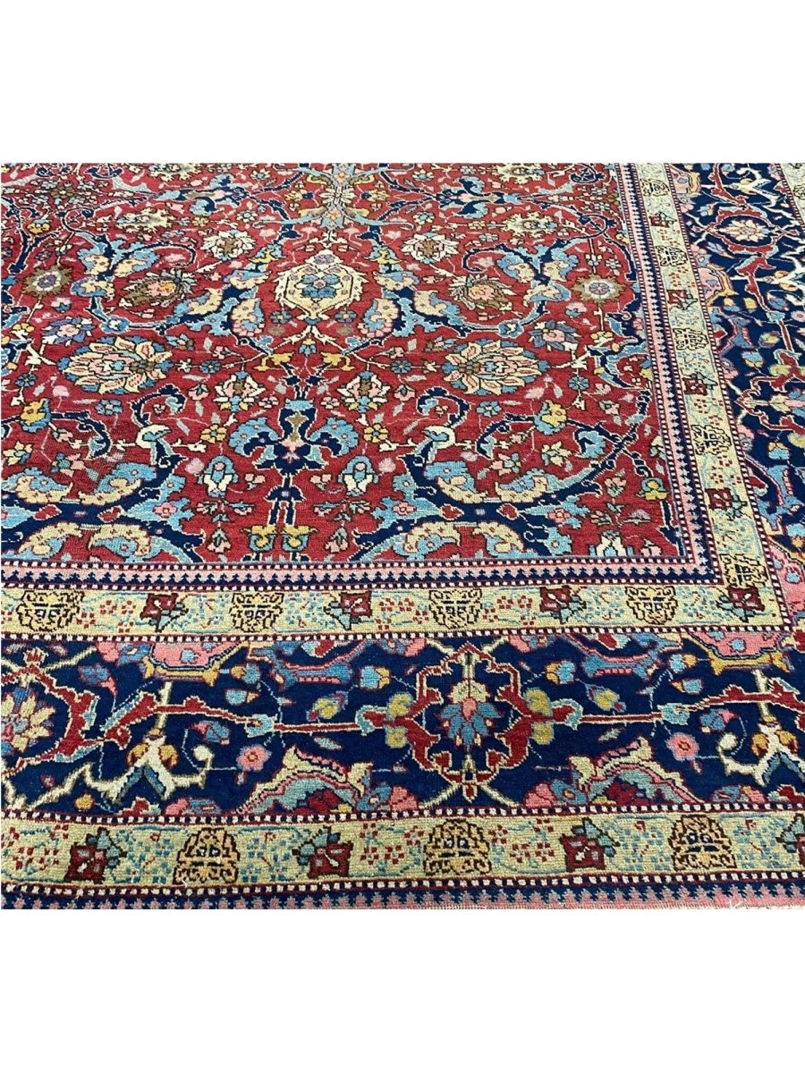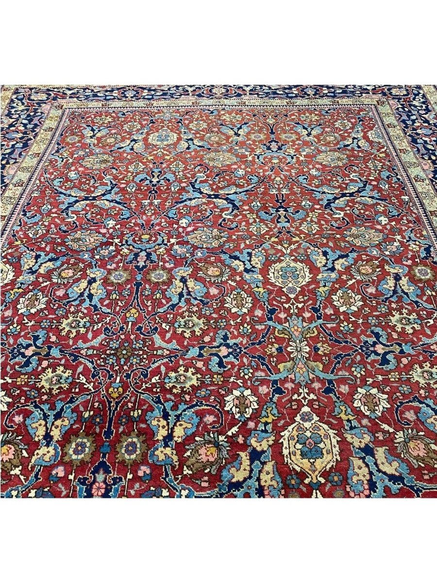 Add warmth and sophistication with the 9x11 Antique Persian Tabriz Area Rug, a timeless addition that brings traditional style and charm to your home. Hand-knotted from the finest quality wool, this stunning rug features a geometric design that adds character and elegance to any room. Perfect for dining rooms, living spaces, or making a statement in an entranceway, it creates a cozy atmosphere. The striking blend of red, blue, beige, and pink tones complements a variety of home styles. This exceptional piece not only enhances your décor but also serves as a beautiful work of art. Enjoy free US shipping.