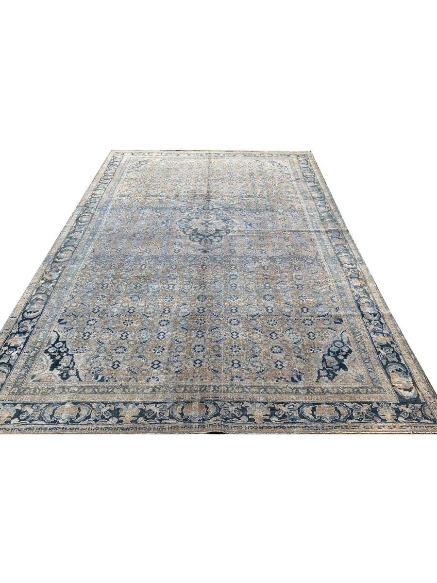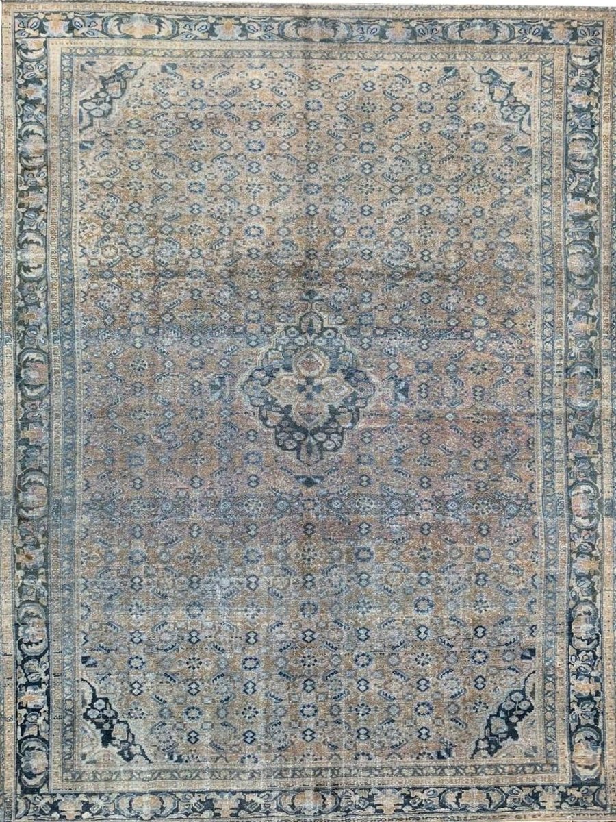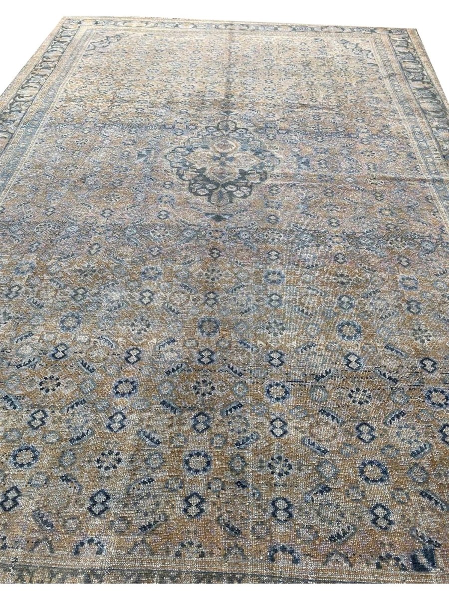 Enhance your home with the timeless charm of this 9x12 Old Persian Hamedan Area Rug. Handmade from soft wool, this rug showcases a refined medallion pattern at the center, surrounded by a dense field of repeating floral motifs and vine-like forms. Its colors are a gentle mix of muted blue, dusty rose, soft beige, ivory, and hints of charcoal, giving it a calm, antique feel with just the right amount of depth. The intricate border features classic Persian floral designs, framing the rug with elegance and balance. Made in Hamedan, a historic weaving city in Persia, this piece brings warmth, tradition, and beauty to your space. Perfect for living rooms, dining areas, or large bedrooms. Free US shipping is included.