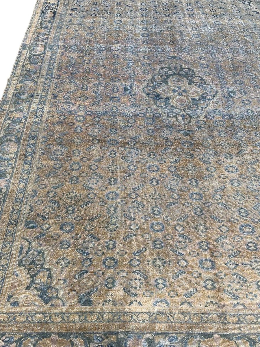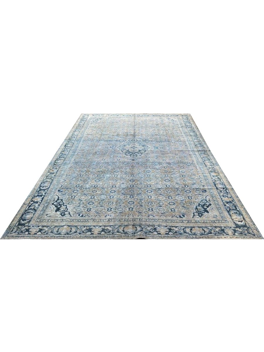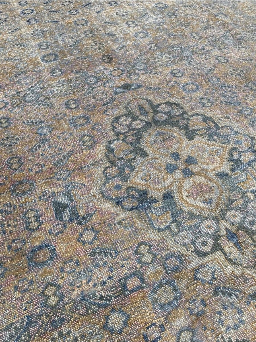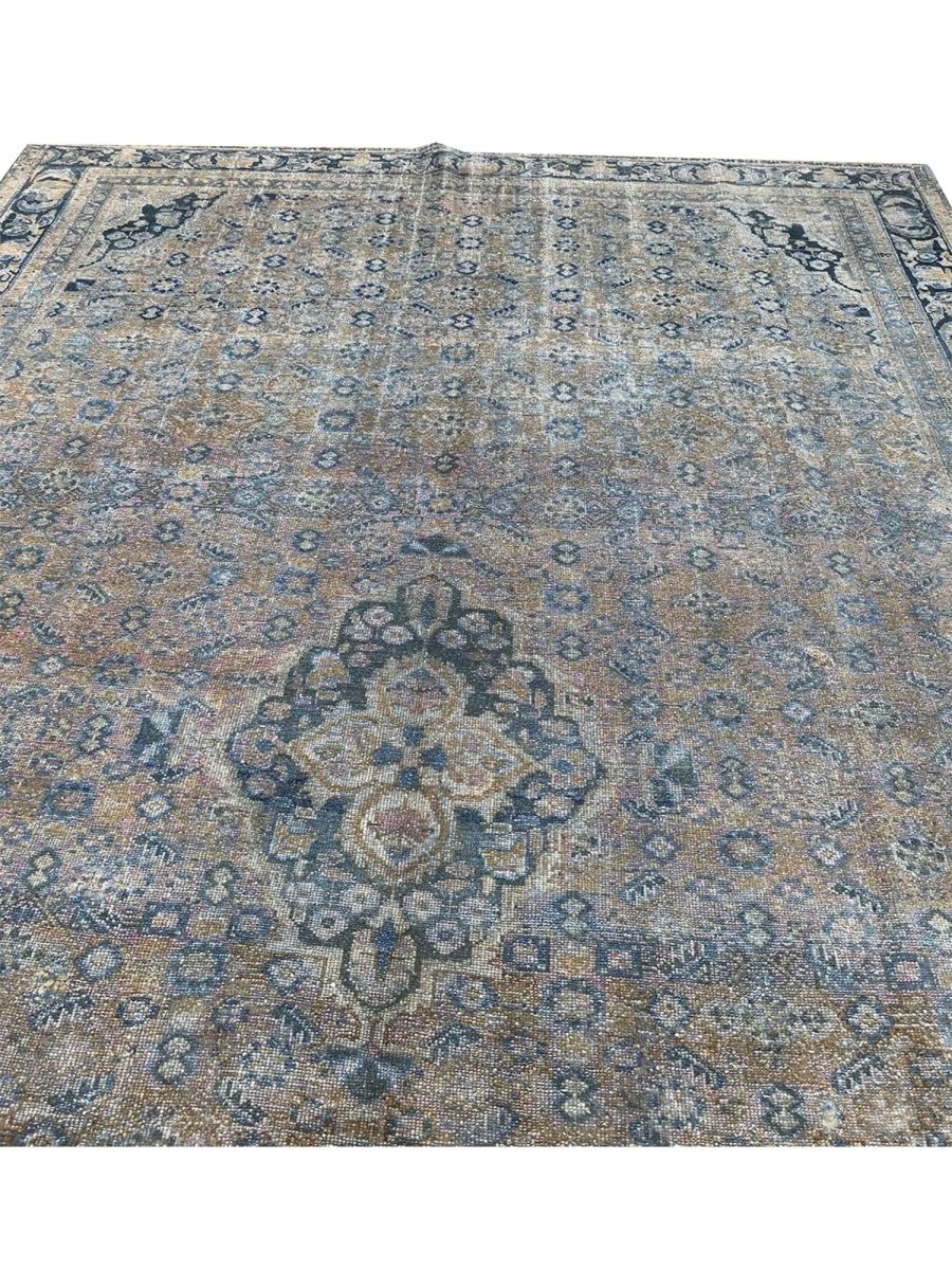 Enhance your home with the timeless charm of this 9x12 Old Persian Hamedan Area Rug. Handmade from soft wool, this rug showcases a refined medallion pattern at the center, surrounded by a dense field of repeating floral motifs and vine-like forms. Its colors are a gentle mix of muted blue, dusty rose, soft beige, ivory, and hints of charcoal, giving it a calm, antique feel with just the right amount of depth. The intricate border features classic Persian floral designs, framing the rug with elegance and balance. Made in Hamedan, a historic weaving city in Persia, this piece brings warmth, tradition, and beauty to your space. Perfect for living rooms, dining areas, or large bedrooms. Free US shipping is included.