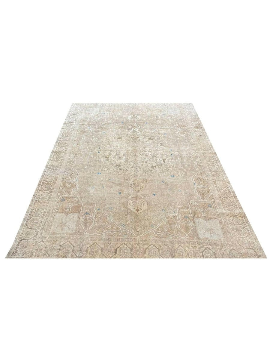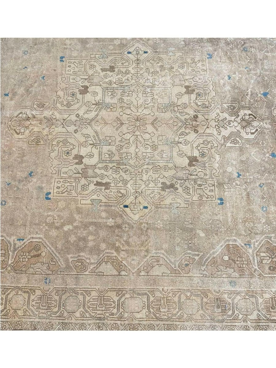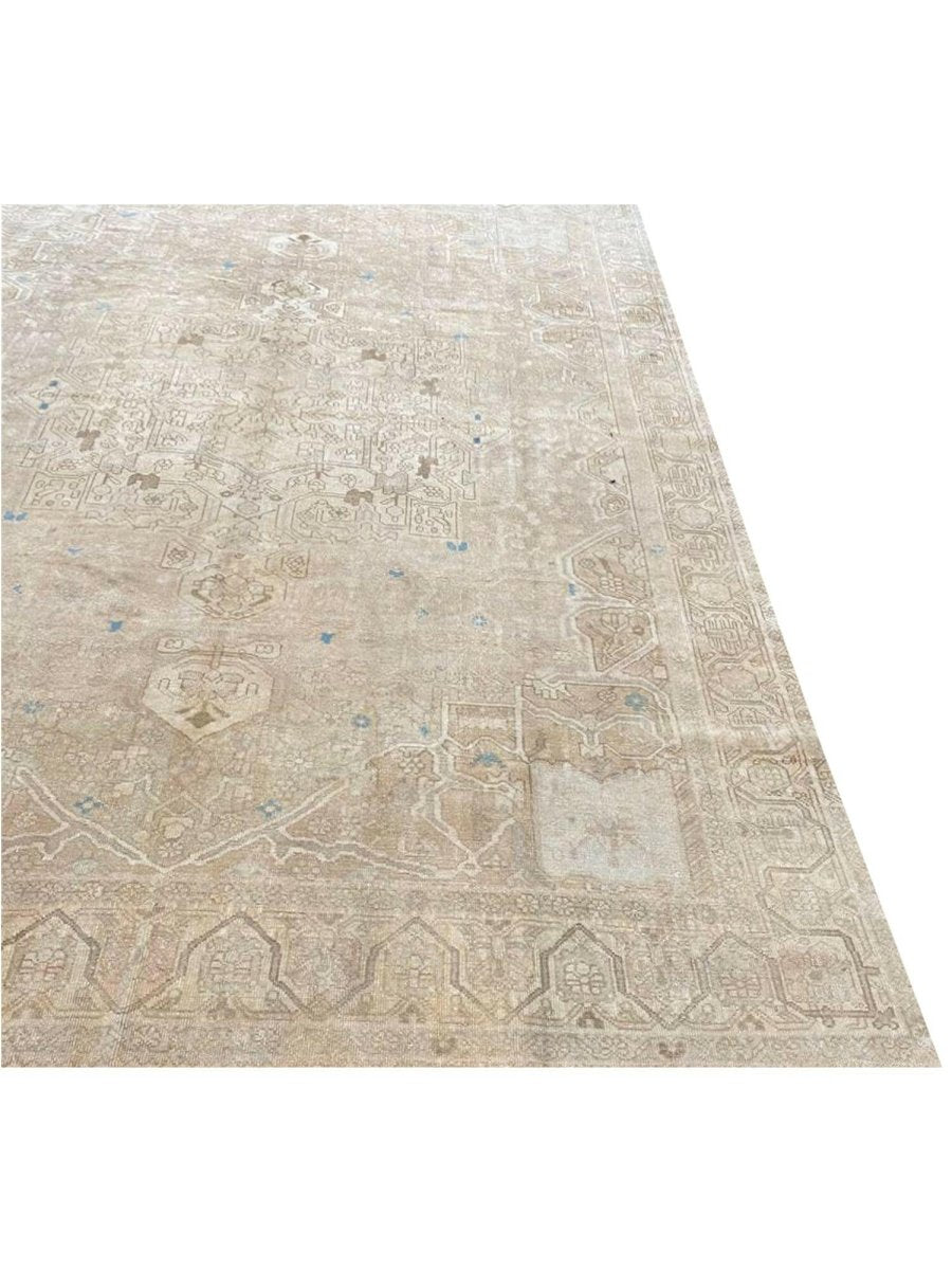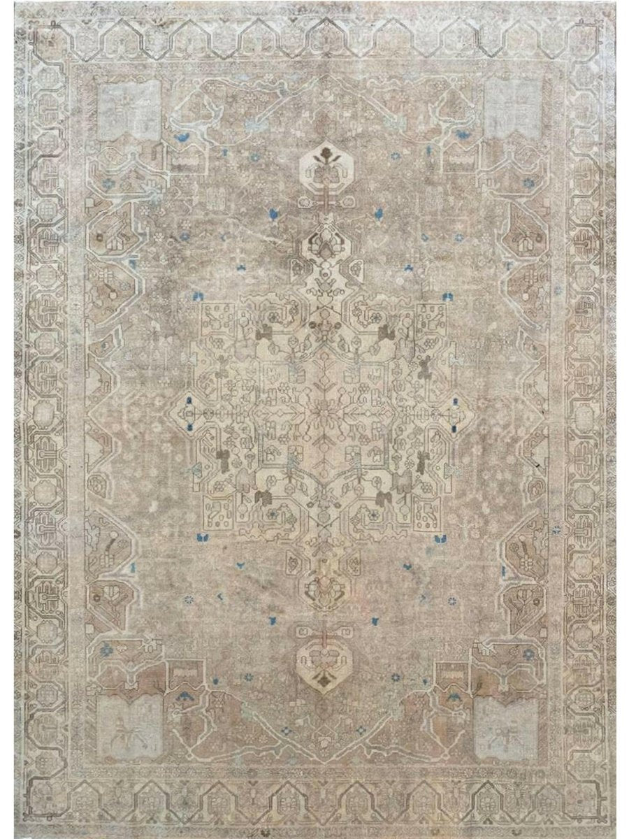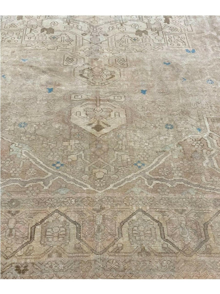 Uncover the subtle grace of this 8x10 Antique Persian Bakhtiari area rug. Hand-knotted in Persia, this beautiful rug features a faded medallion pattern within a field of repeating panels. The design reflects motifs and geometric elements. The primary color is soft beige, providing a lovely, muted background. Central medallion, panel designs are detailed with a palette that includes various shades of brown, gray, and subtle touches of blue, adding understated visual interest. This generously sized piece is perfect for bedrooms, living rooms, or dining areas, adding comfort and refined style. Crafted with traditional techniques and high-quality materials, the rug offers lasting durability and a soft, lavish feel underfoot. Enjoy free shipping in the United States.