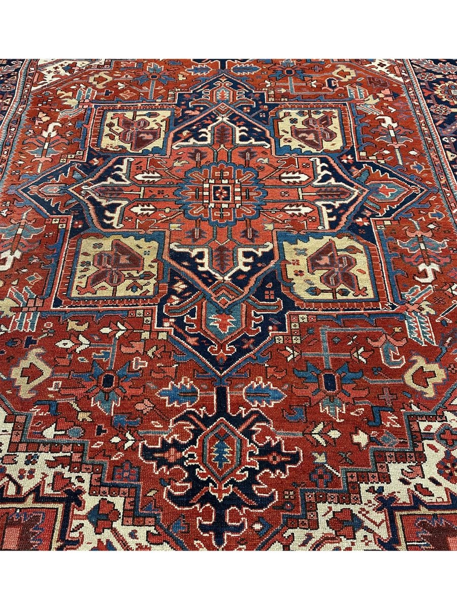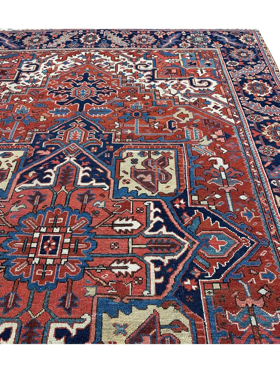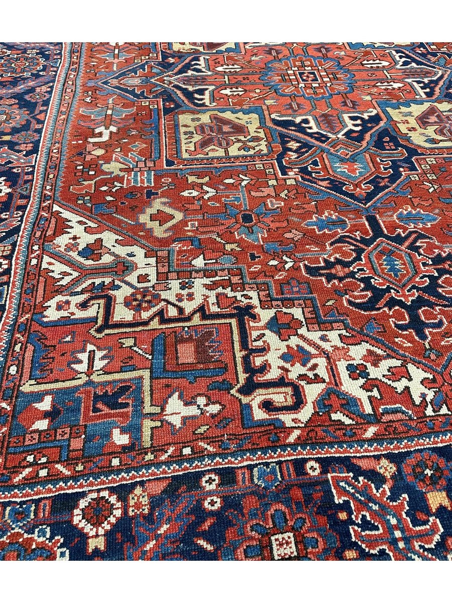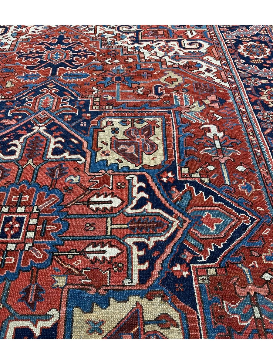 Transform your living area with the 8x11 Antique Persian Heriz Rug, a unique find that adds a touch of classic elegance to any room. This stunning traditional rug, crafted from high-quality wool, features a geometric design that enhances your interior decor. It creates an inviting atmosphere its rich hues of red, navy blue, beige, and white make it a versatile addition to your home. Beyond its practical use, this remarkable rug serves as a beautiful focal point in your space. Enjoy free US delivery.