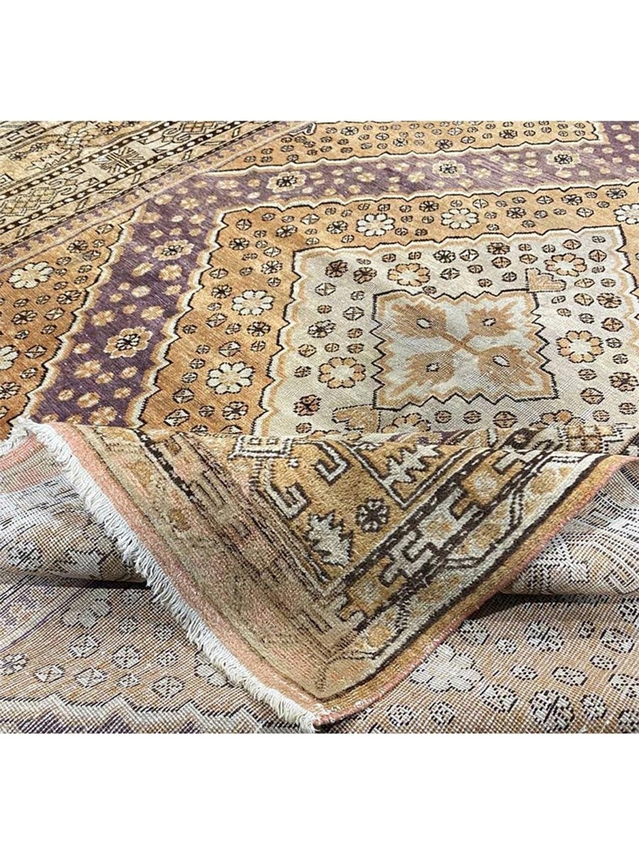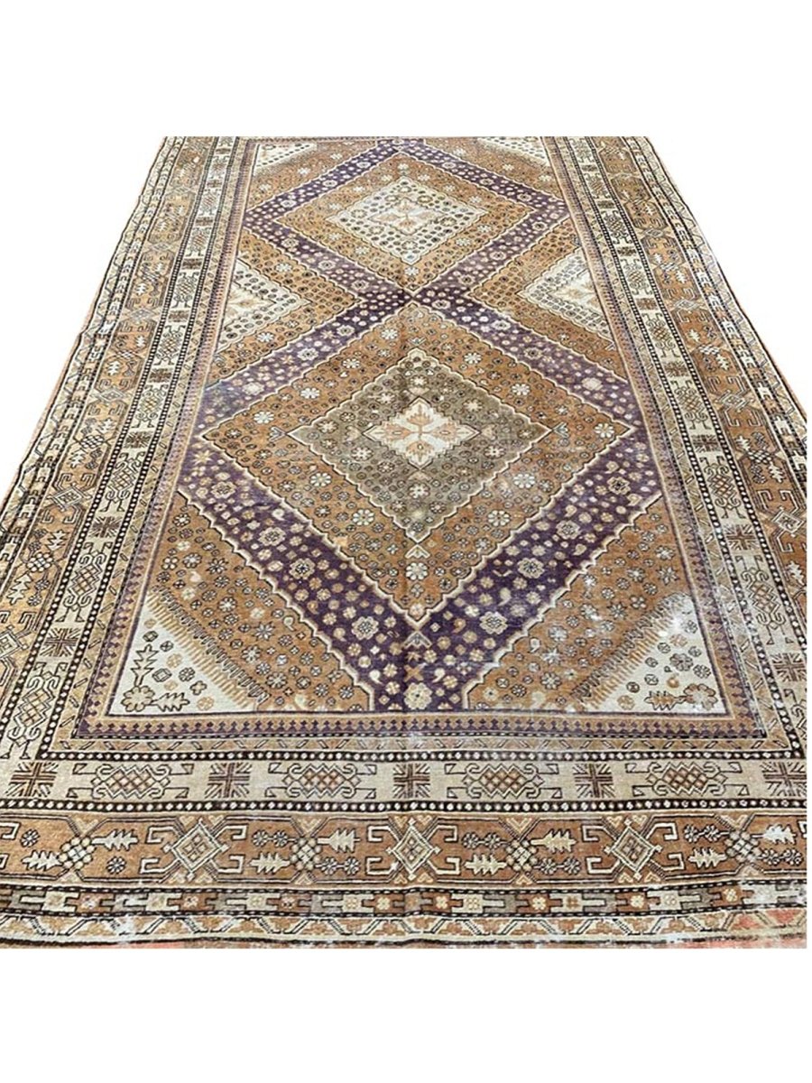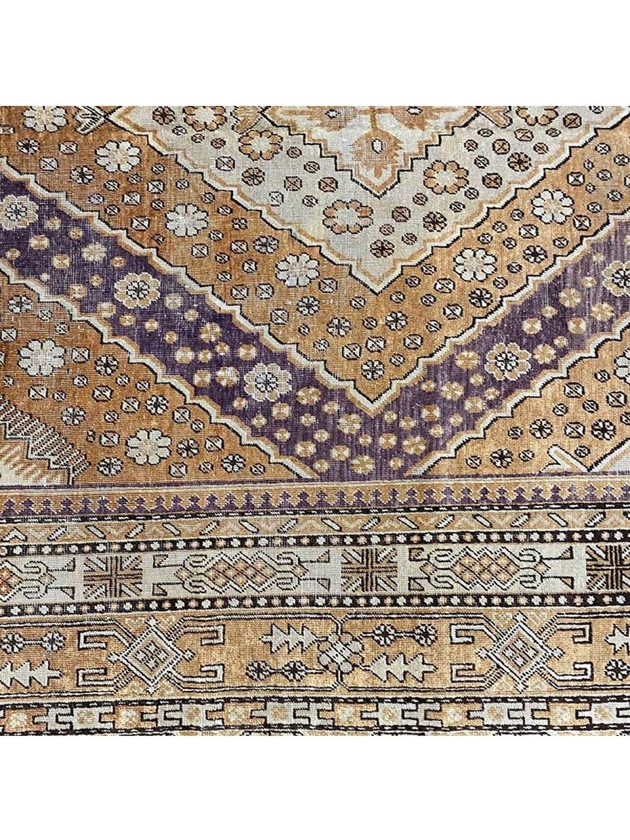 Encounter the timeless beauty of traditional craftsmanship with this exquisite 7x13 antique Khotan area rug, expertly hand-made with meticulous attention to detail. This rug boasts a unique geometric pattern, with a soothing beige and brown color palette that provides a warm and inviting backdrop for the intricate pattern. Subtle purple accents add a touch of elegance and sophistication, making this rug perfect for adding a touch of charm to any room. Whether placed in a formal living room or spacious bedroom, this rug will surely become a stunning focal point that ties the entire space together. The rug's intricate pattern and beautiful color palette complement various decorating styles. With proper care, this antique rug will continue to be a treasured possession for generations.