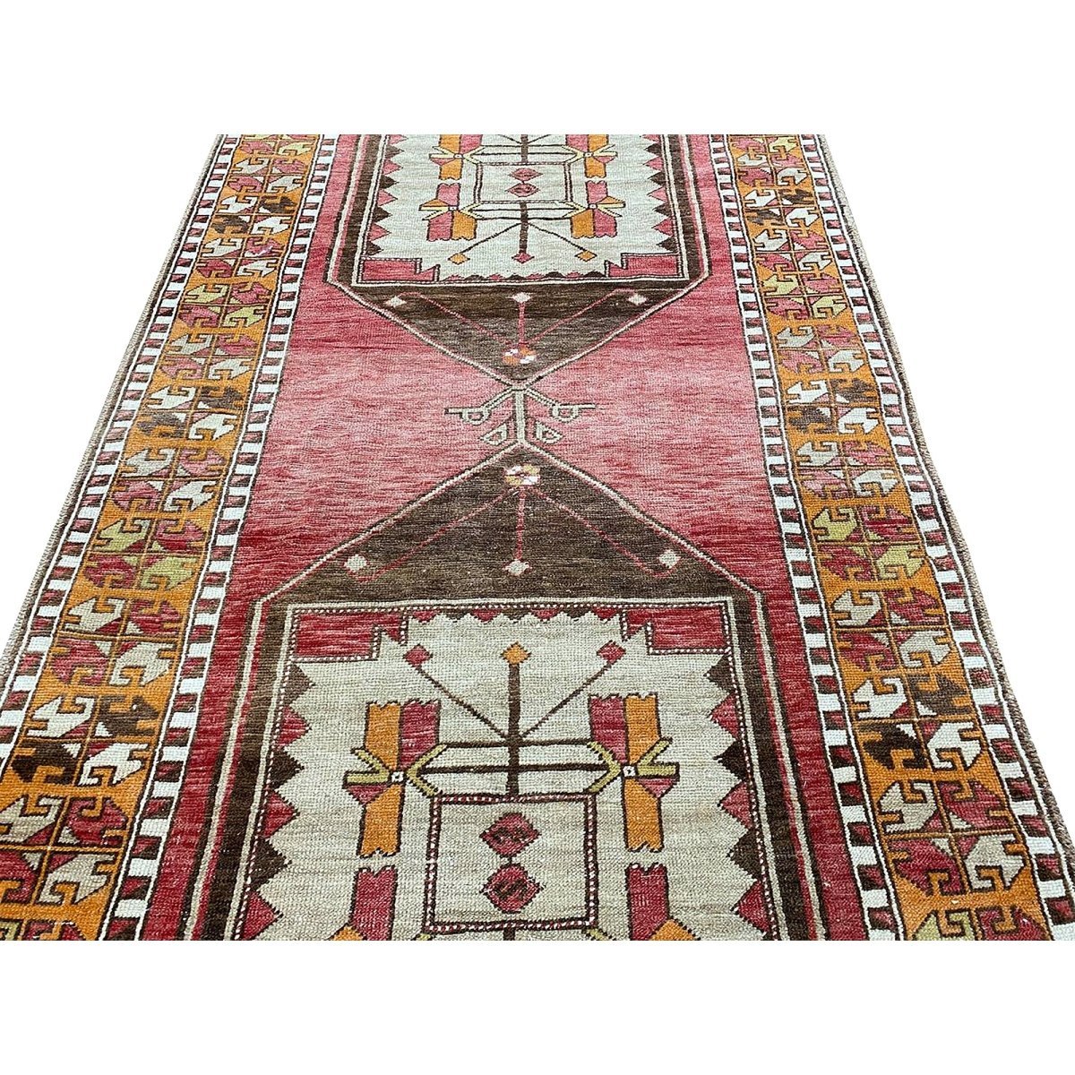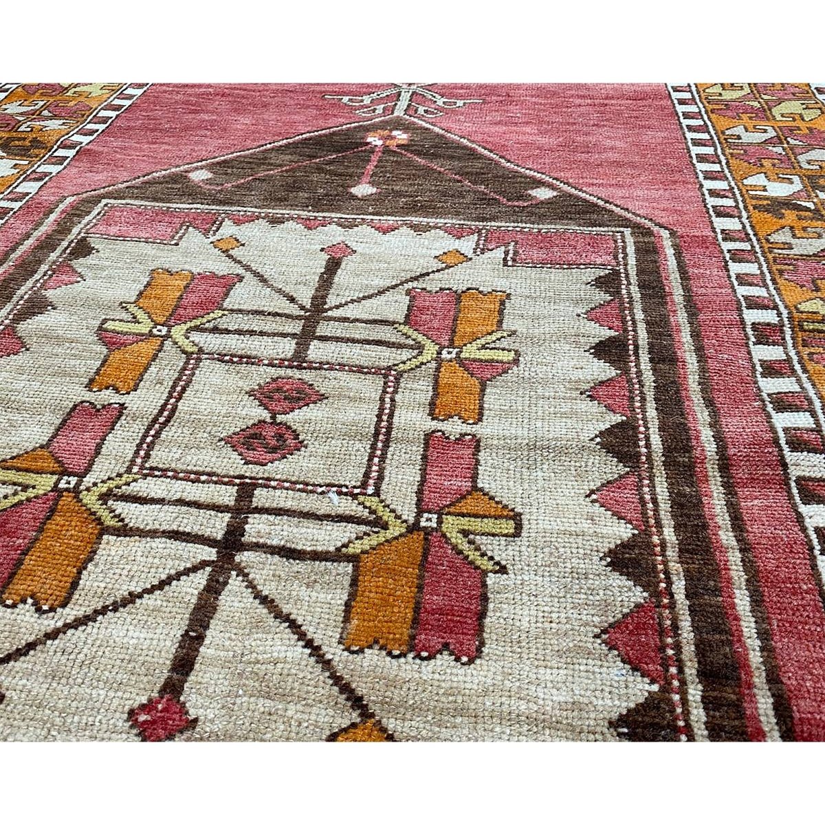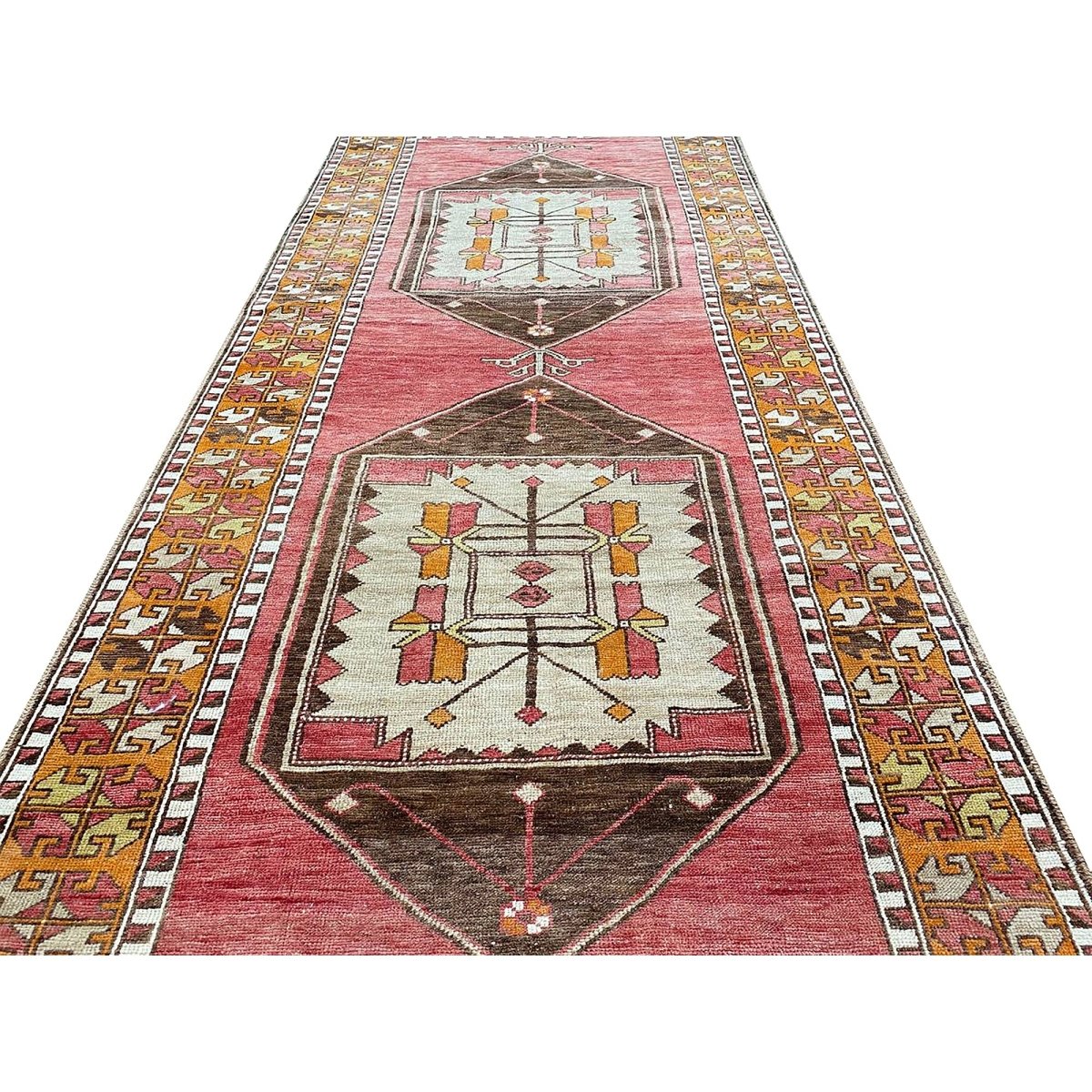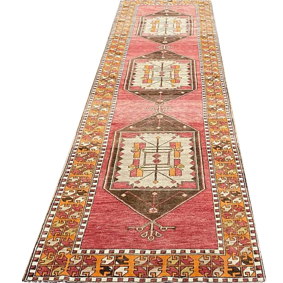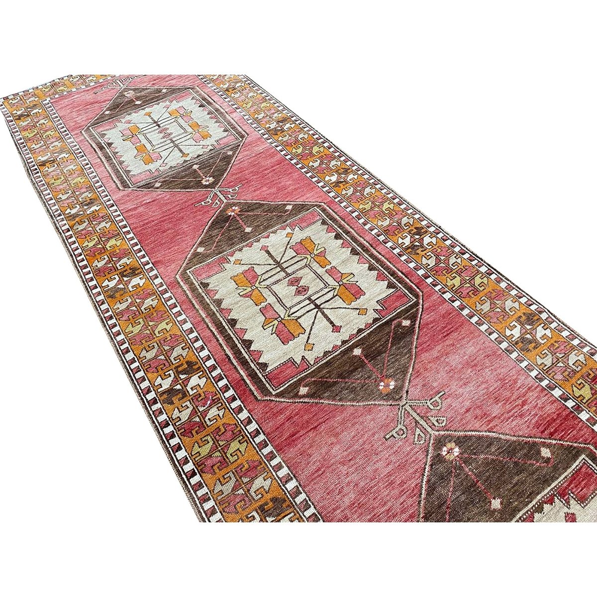 The 5x12 Old Turkish Anatolian Runner Rug is a unique treasure that adds coziness and personality to any space, transforming your living space. The elaborate flower design of this hand-knotted wool rug enhances your interior design. It provides a warm atmosphere and is ideal for dining spaces, small corridors, and as a chic kitchen runner. The tasteful blend of brown, orange, pink, and beige makes it a flexible option that goes well with a variety of design styles. In addition to its practical use, this amazing rug creates a beautiful focal point in your house. Take advantage of free US delivery.