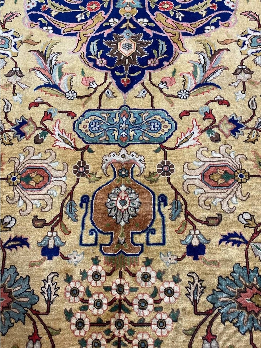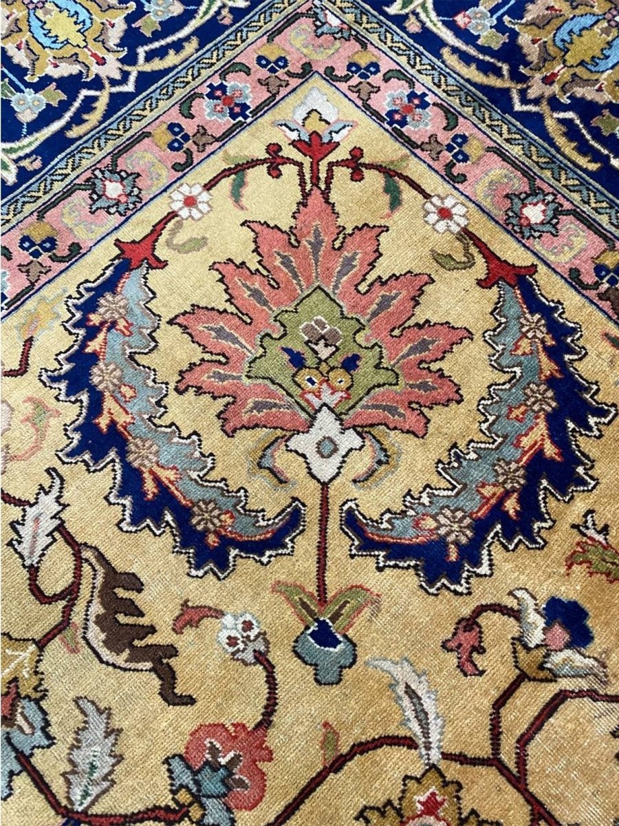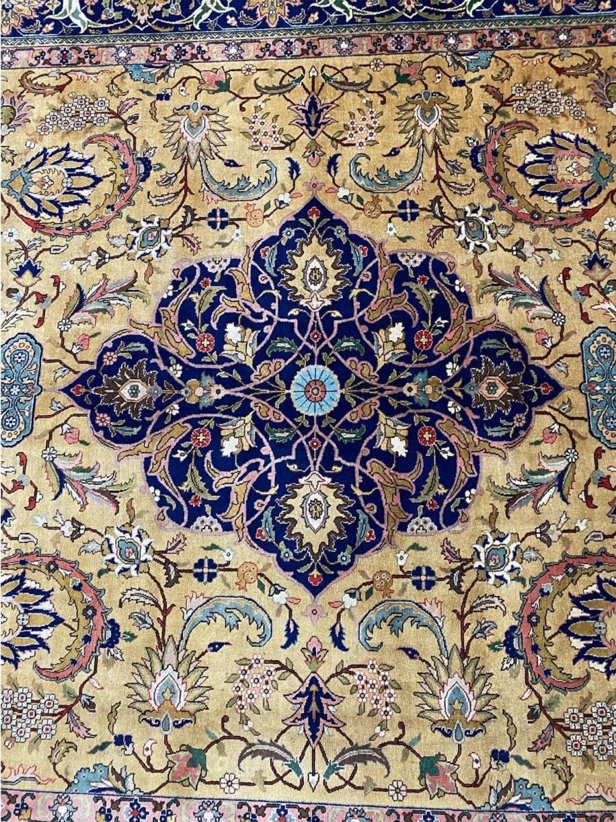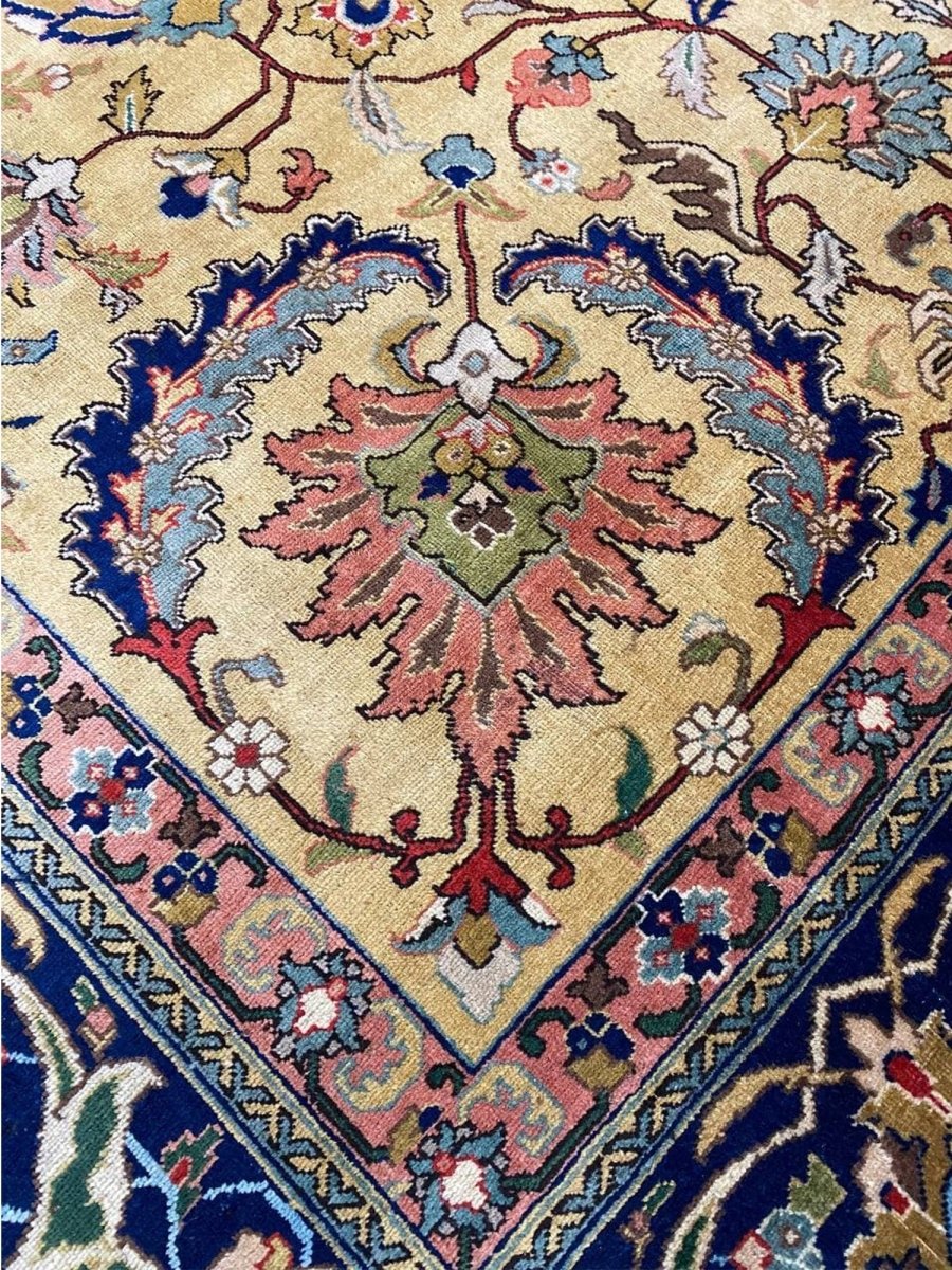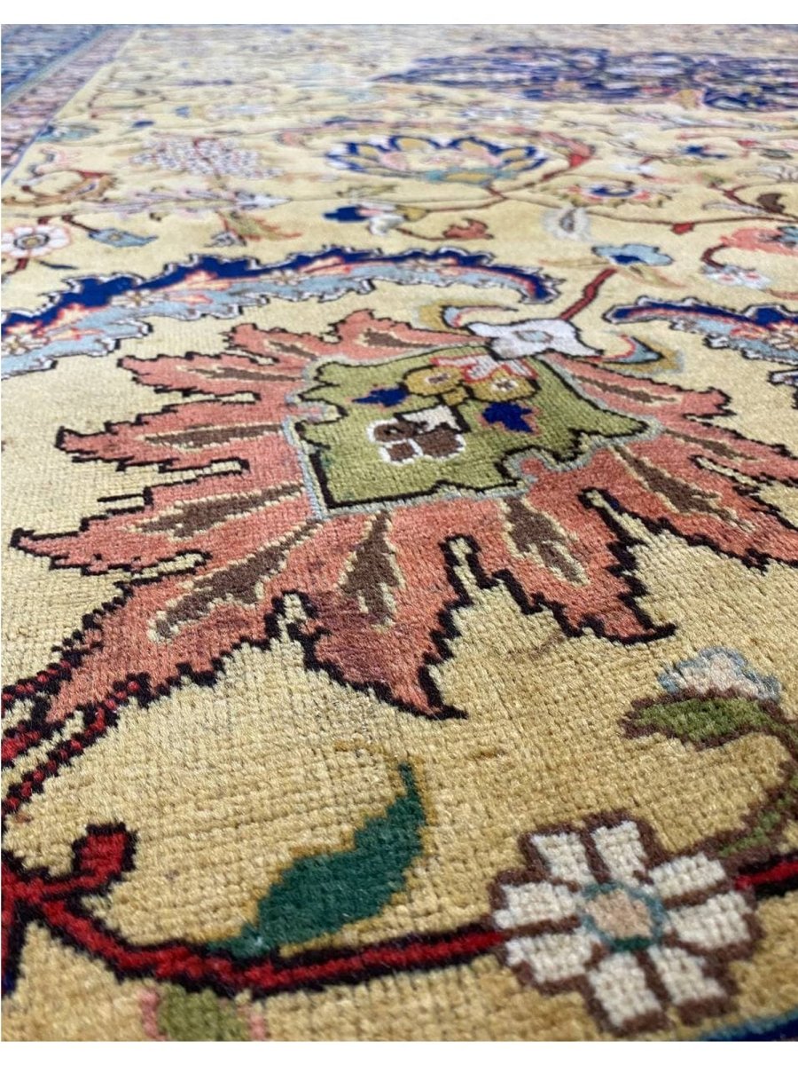 Discover the captivating appeal of the 9x13 Old Persian Tabriz Area Rug, a unique accent that adds classic style to your home. This gorgeous traditional rug, hand-knotted from premium wool, features a beautiful design with medallion motifs that brings personality to any room. It creates a cozy and welcoming ambiance and is ideal for dining tables, living rooms, or as a focal point in your foyer. Its beautiful blend of blue, peach, gold, and green hues makes it a versatile choice for various designs. This outstanding piece serves as a stunning work of art while enhancing your decor. Take advantage of free US delivery.