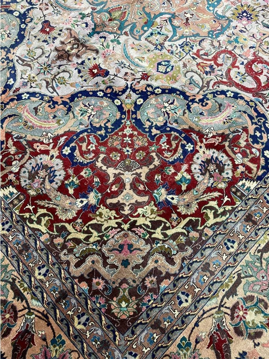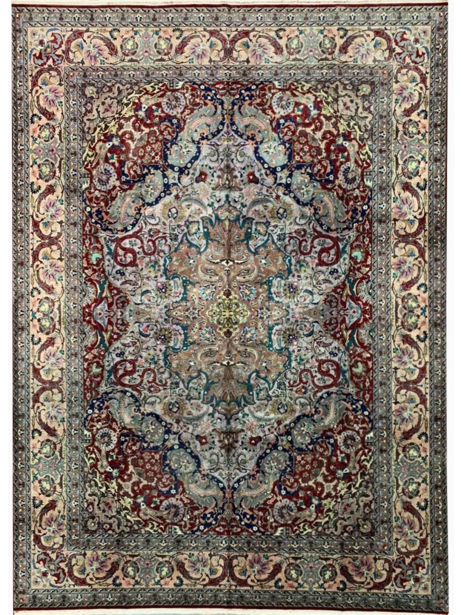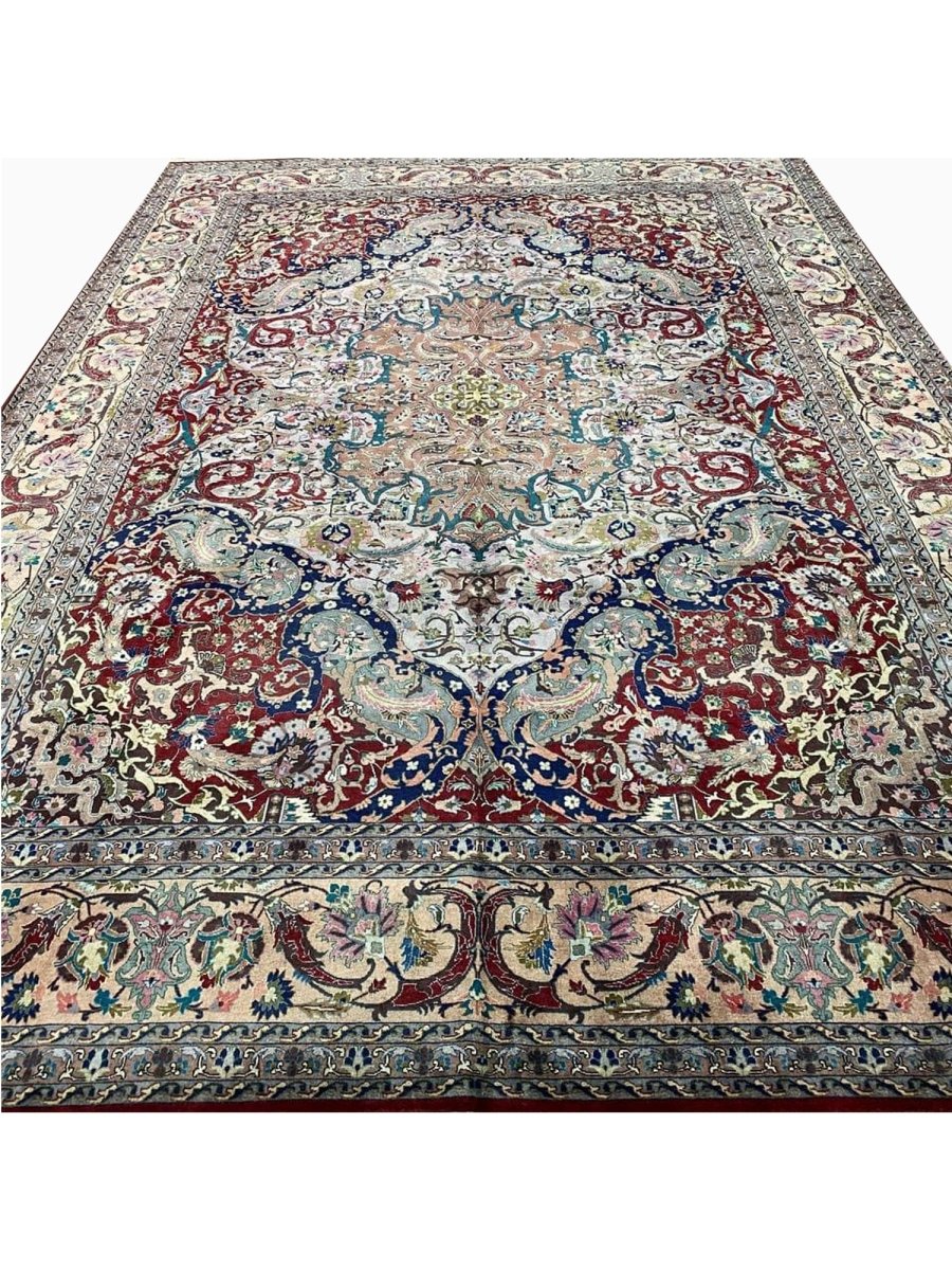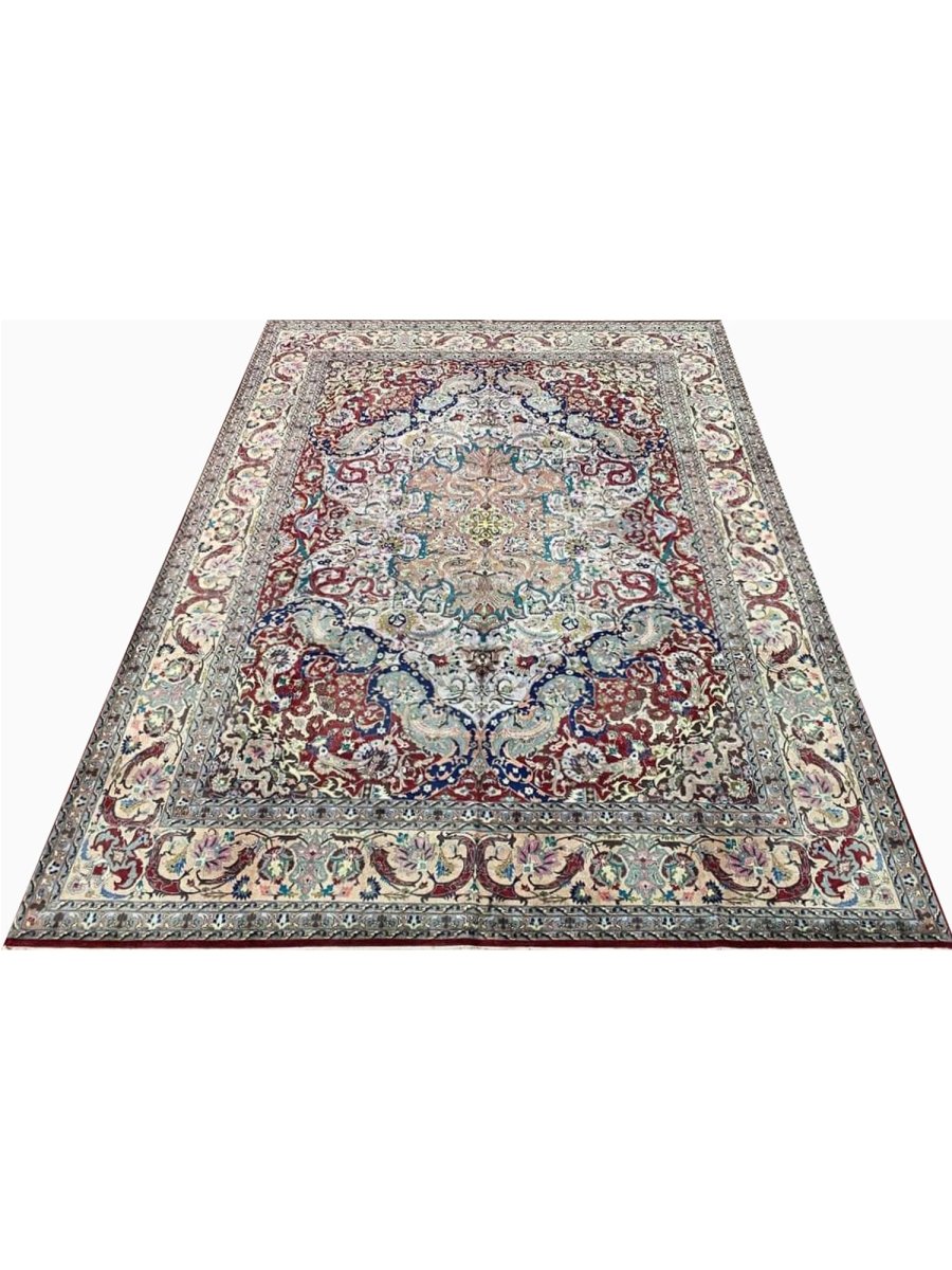 Experience the elegance of the 8x11 Old Persian Tabriz Masterpiece Rug, a unique piece that brings traditional beauty to your home. Hand-knotted from quality wool, this beautiful rug boasts a medallion pattern that adds charm to any room. Ideal for grand living rooms, dining rooms, or as a focal point in your entranceway, it makes any space feel cozy and inviting. The stunning combination of tan, beige, red, blue, and gray colors make it a great option for any style. This outstanding item not only beautifies your space but also stands as a stunning piece of art. Get free shipping in the US.