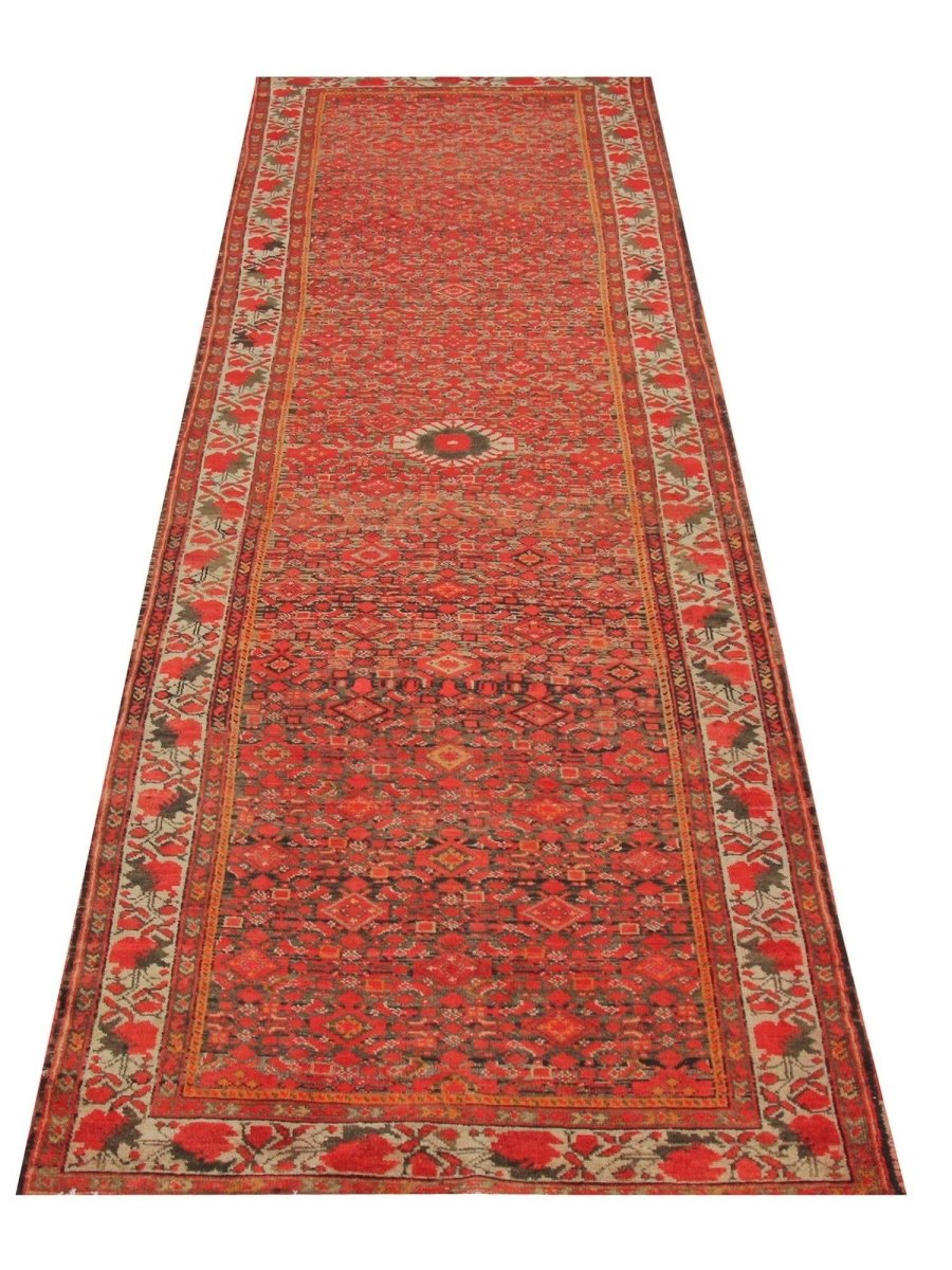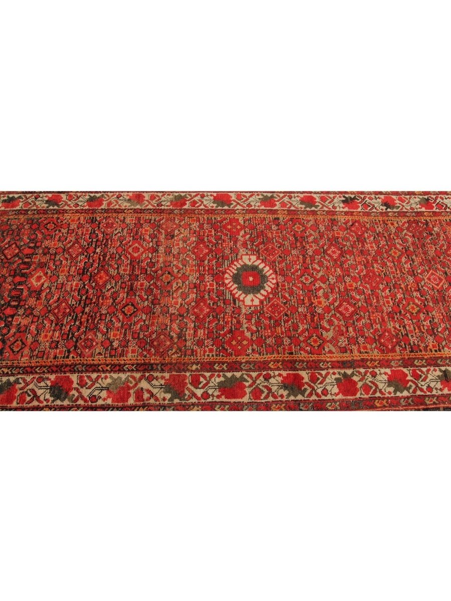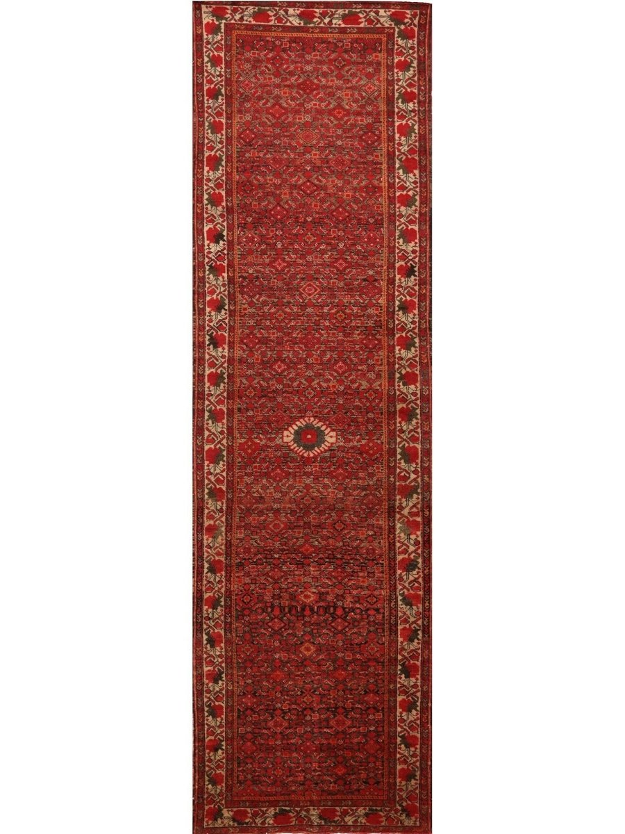 Add a touch of enduring charm to your home with this 3x13 handwoven Old Persian Malayer Style Runner Rug, crafted in Persia. This rug features a captivating all-over geometric pattern, showcasing traditional motifs in a rich, deep red, beige, deep blue, and black palette. Its hand-knotted wool construction ensures durability and lasting beauty and is perfect for hallways, entryways, or narrow spaces. The intricate detail reflects the artisan's skill and timeless design heritage. This piece effortlessly enhances, adding warmth, texture, and style. A true blend of artistry and function, it easily brings heritage charm into any space. Enjoy the benefit of free shipping across the United States. Each rug has one-of-a-kind subtle variations highlighting its handmade nature.