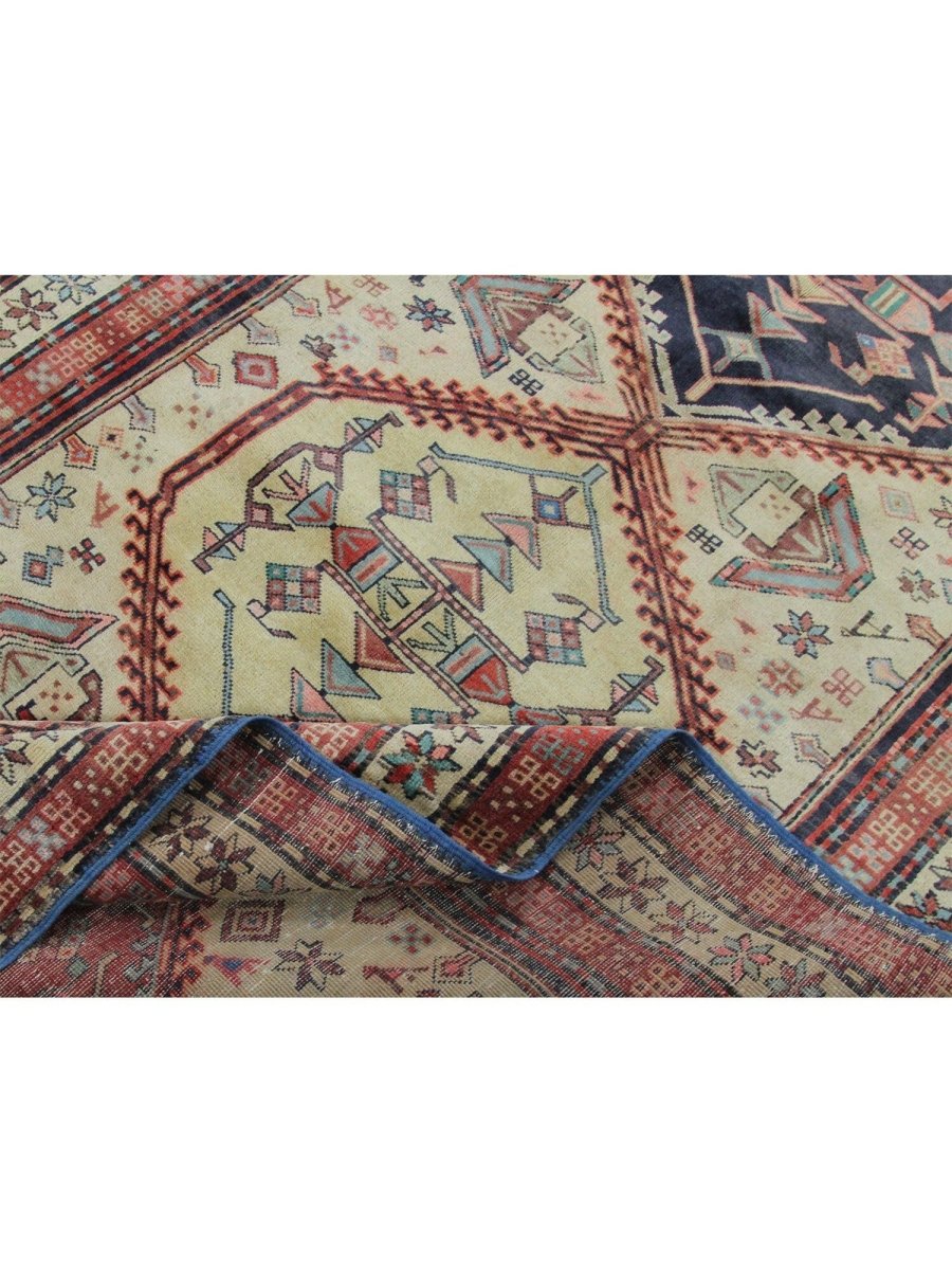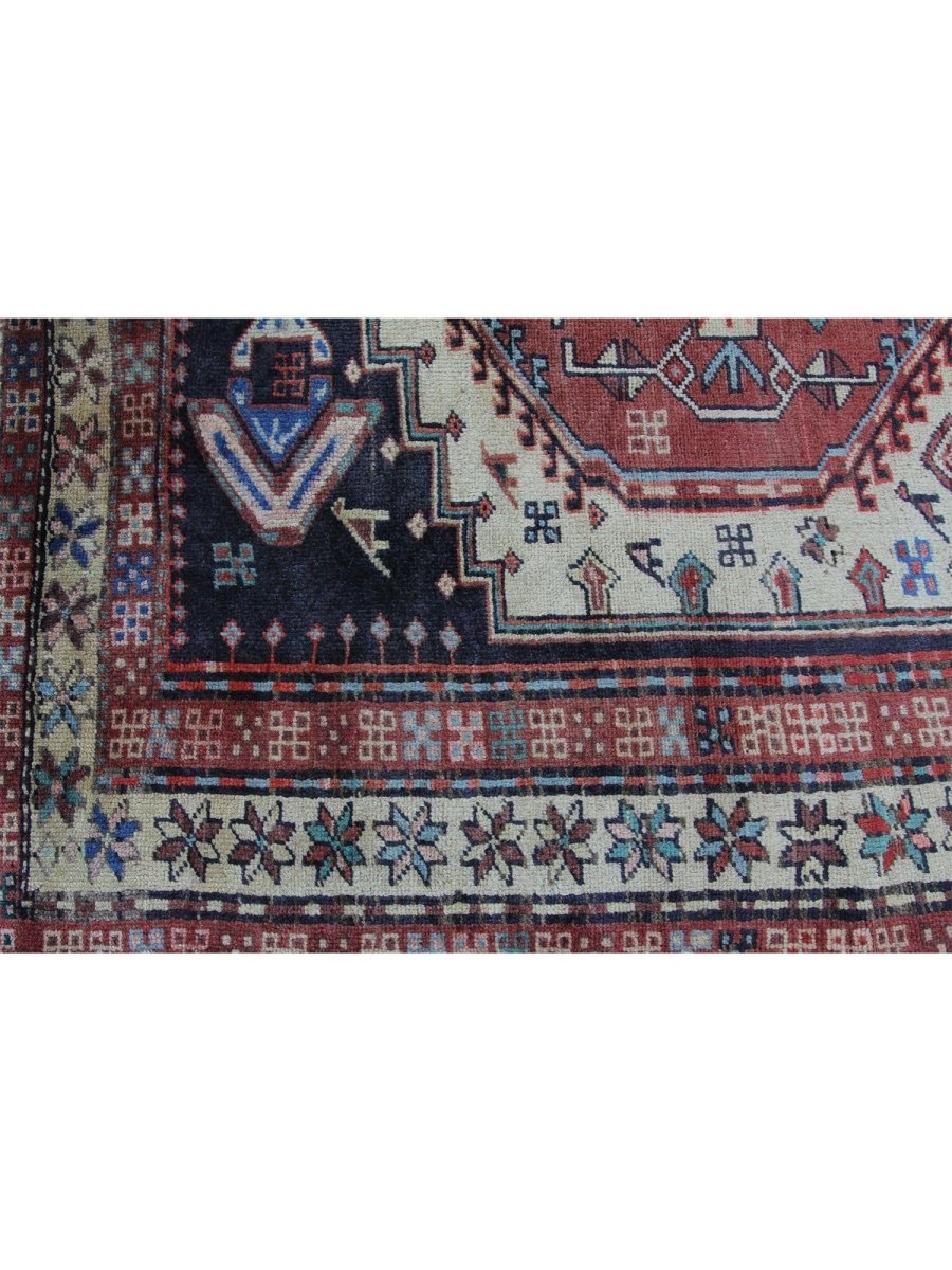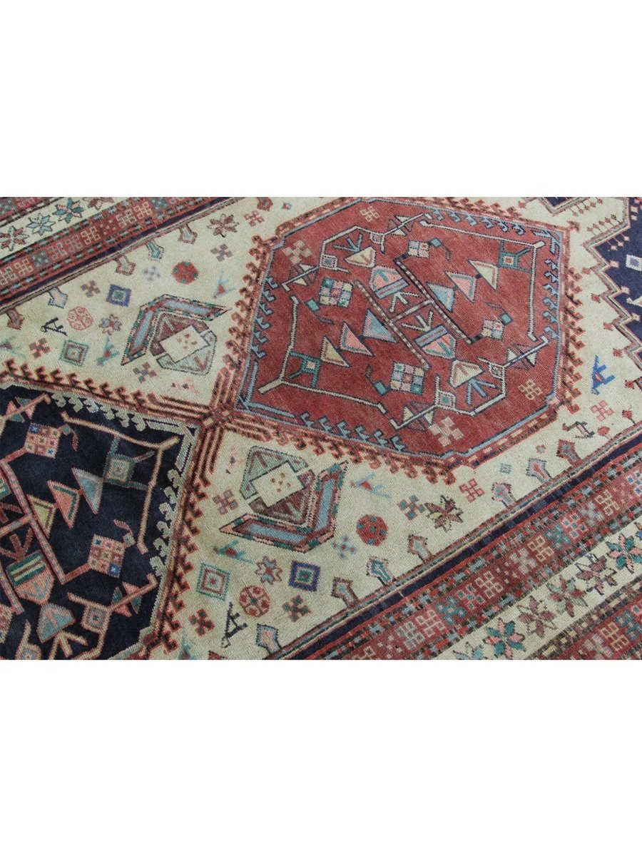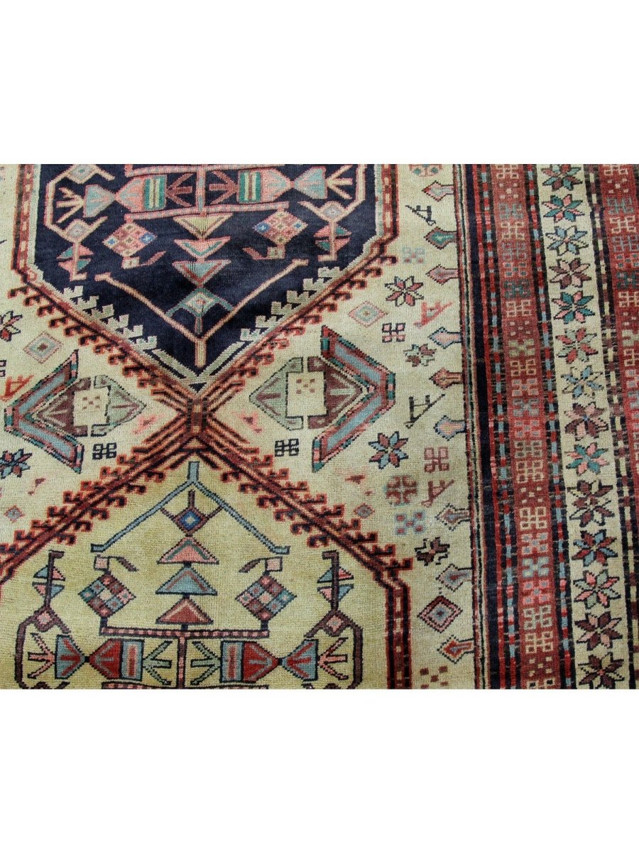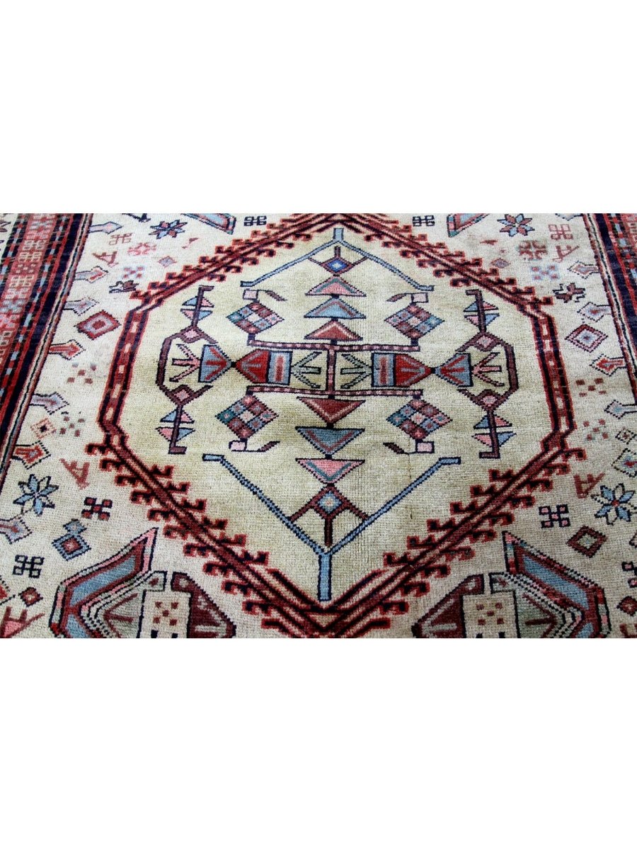 Add a touch of timeless charm to your home with this 4x10 handwoven Old Persian Sarab Style Runner Rug, crafted in Persia. This rug features a captivating geometric pattern with interconnected medallions, showcasing traditional motifs in a classic light beige, deep red, and deep blue palette. Its hand-knotted wool construction ensures durability and lasting beauty and is perfect for hallways and entryways. The intricate border detail reflects the artisan's skill and timeless design heritage. This piece effortlessly enhances, adding warmth, texture, and style. A true blend of artistry and function, it easily brings heritage charm into any space. Enjoy the benefit of free shipping across the United States. Each rug has one-of-a-kind subtle variations highlighting its handmade nature.