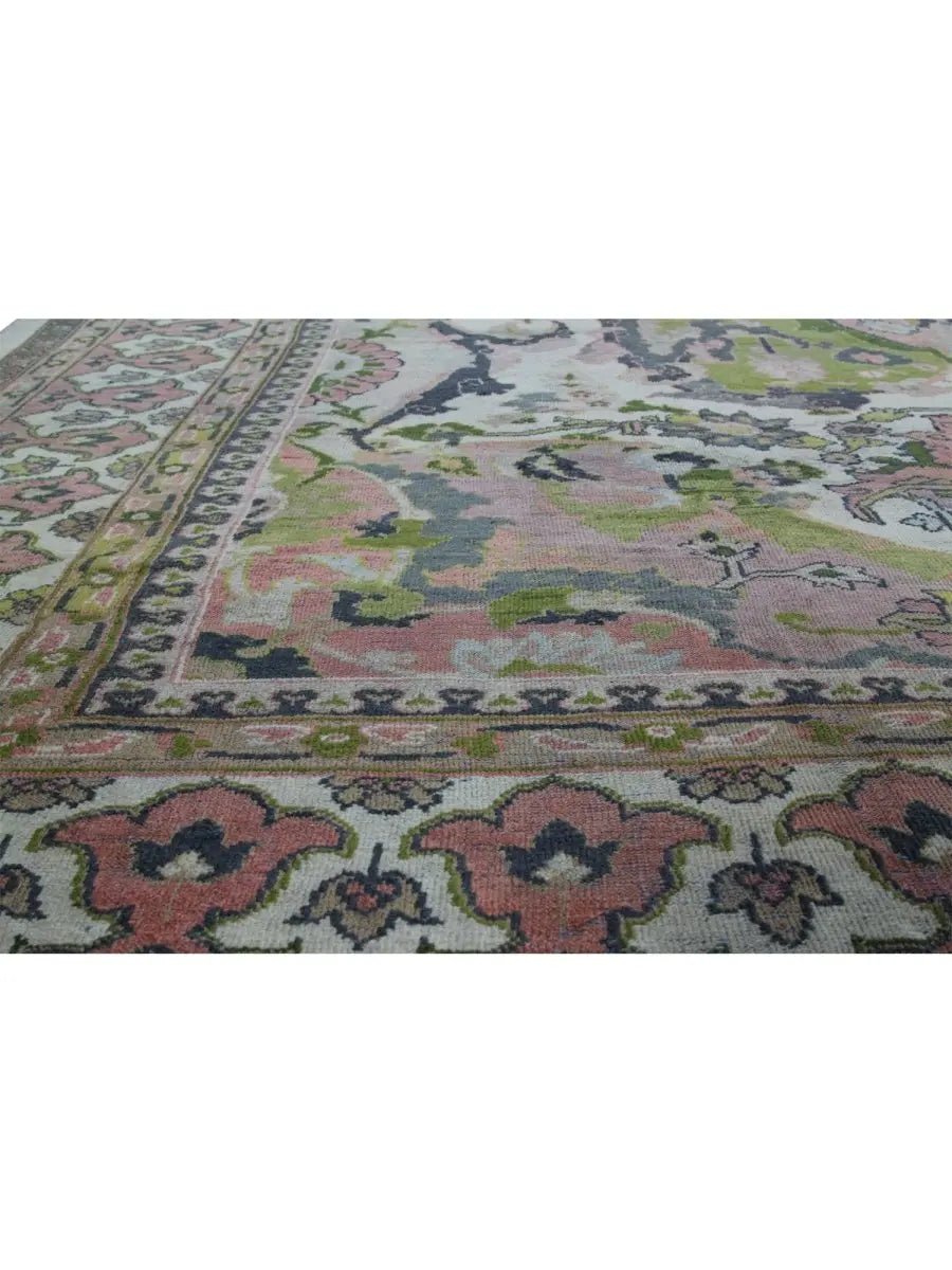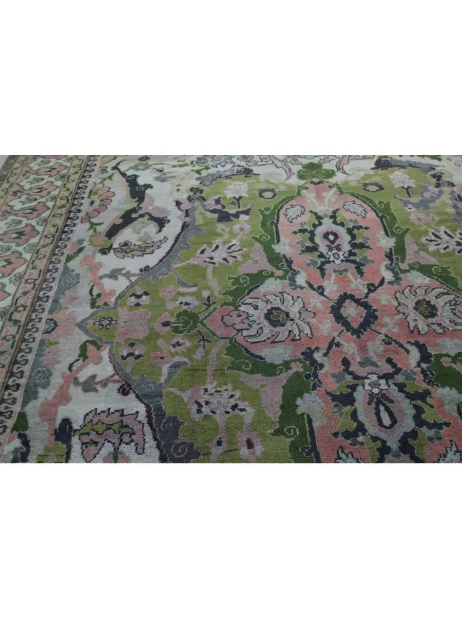 Enhance your home with the exquisite artistry of this 12x16 Antique Persian Sultanabad Area Rug. This stunning rug features a central medallion pattern surrounded by intricate floral and geometric motifs, a hallmark of Sultanabad craftsmanship. The soft green background is beautifully accented by shades of pink, ivory, blue, and black, creating a harmonious and elegant look. A detailed pink border with repeating floral designs adds to its antique charm. This rug is handmade with premium wool and offers both durability and a luxurious texture. Ideal for large living rooms, dining areas, or open spaces, it brings the rich heritage of Persian weaving into your home.