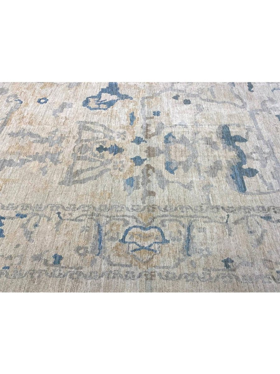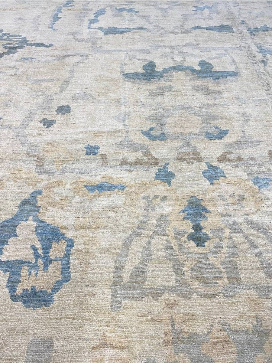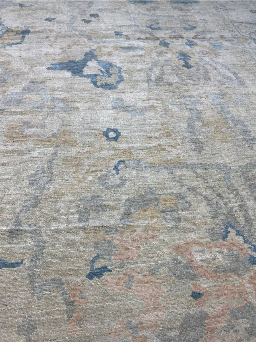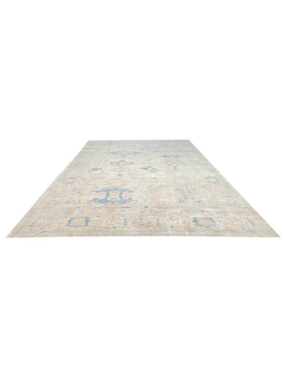 Add grand style and comfort to your large living room, dining room, or open space with this 13x20 Turkish Oushak Area Rug. Hand-knotted from premium wool, it showcases a refined geometric pattern highlighted by warm beige and cool blue hues. This traditional rug’s plush surface provides soft comfort underfoot, while its durable craftsmanship ensures it withstands heavy foot traffic and everyday use. The neutral tones and versatile design make it a perfect complement to various decor styles. Enjoy the added convenience of free shipping within the US.