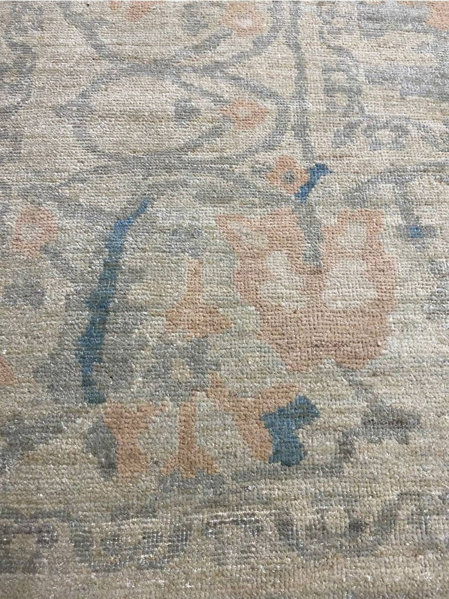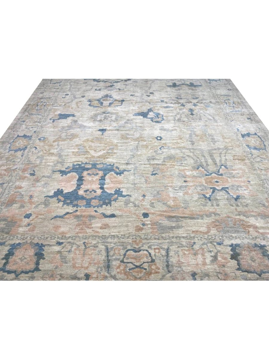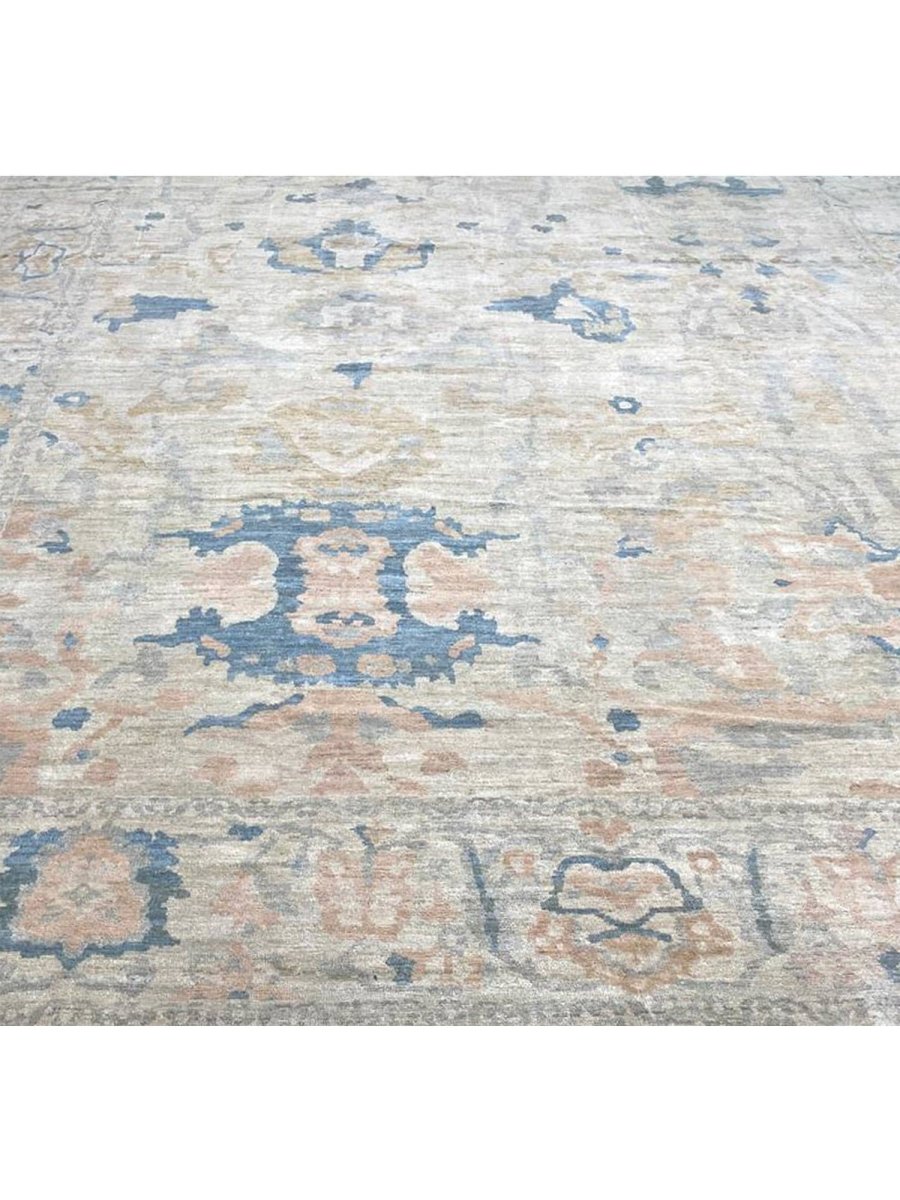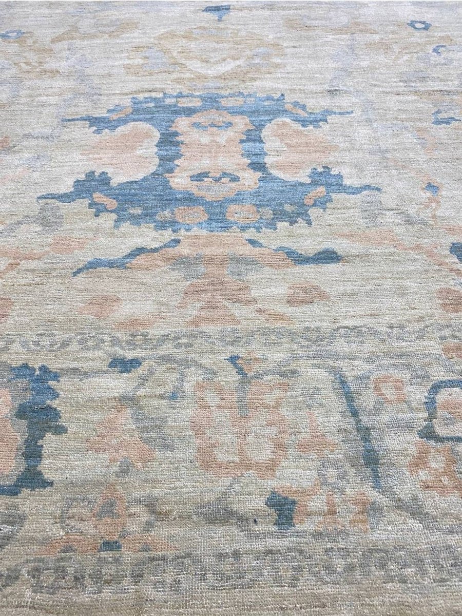 Add grand style and comfort to your large living room, dining room, or open space with this 13x20 Turkish Oushak Area Rug. Hand-knotted from premium wool, it showcases a refined geometric pattern highlighted by warm beige and cool blue hues. This traditional rug’s plush surface provides soft comfort underfoot, while its durable craftsmanship ensures it withstands heavy foot traffic and everyday use. The neutral tones and versatile design make it a perfect complement to various decor styles. Enjoy the added convenience of free shipping within the US.