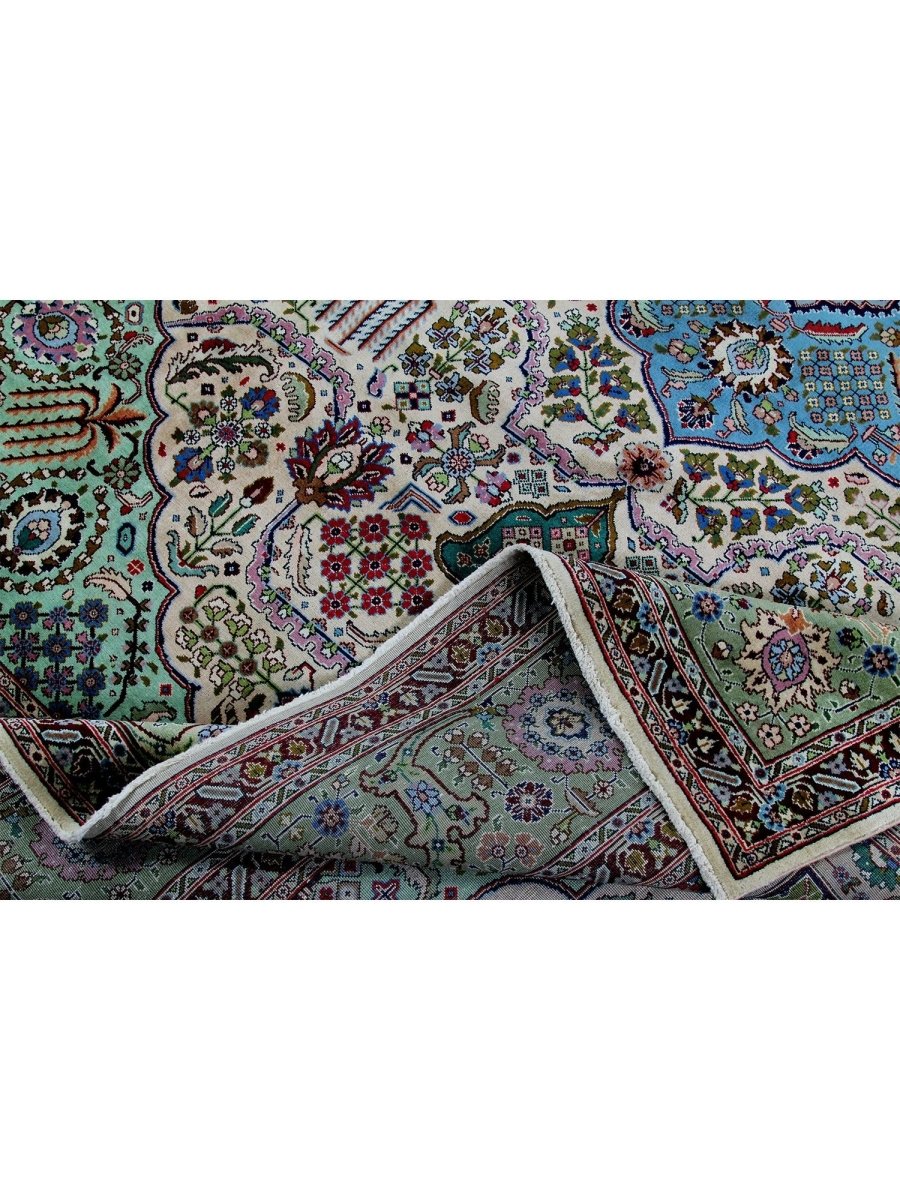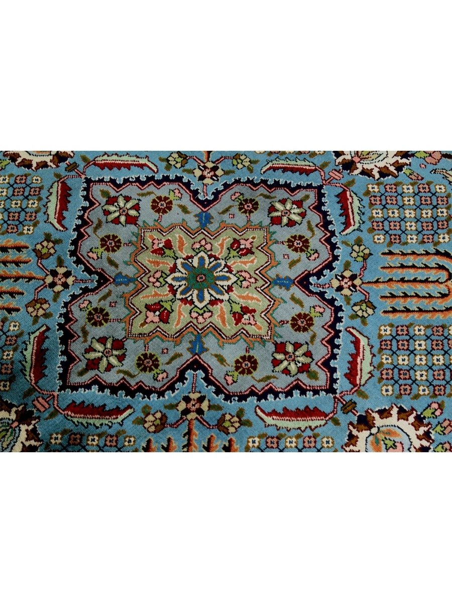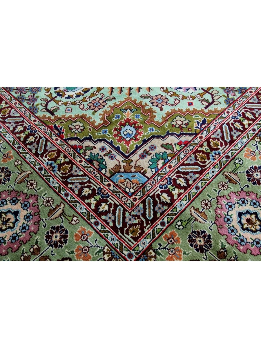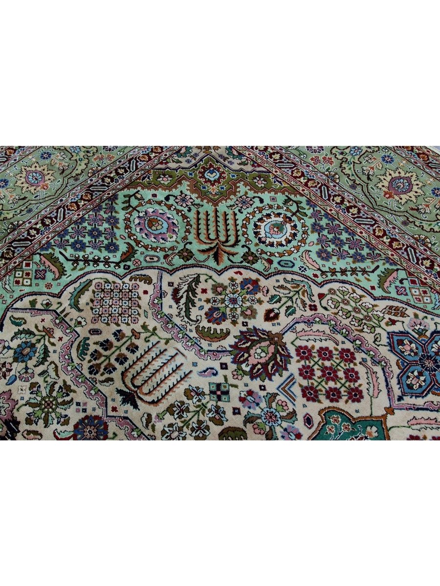 This 10x13 Old Persian Tabriz rug stands as a testament to the ancient art of rug-making, showcasing exceptional craftsmanship and timeless beauty. Hand-knotted by skilled artisans, it has a central medallion design that carries the elegance of Persian tradition. Originating from Persia, renowned for producing the finest rugs, this piece is a true collector’s gem.