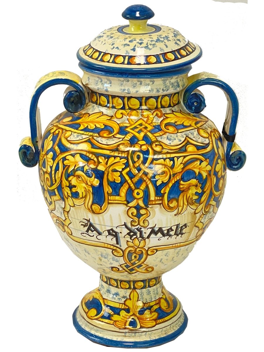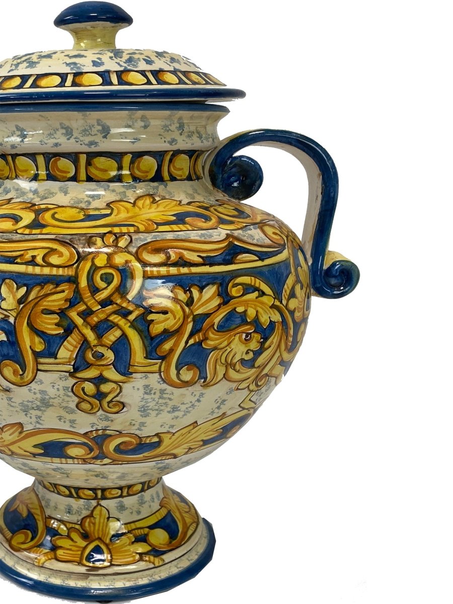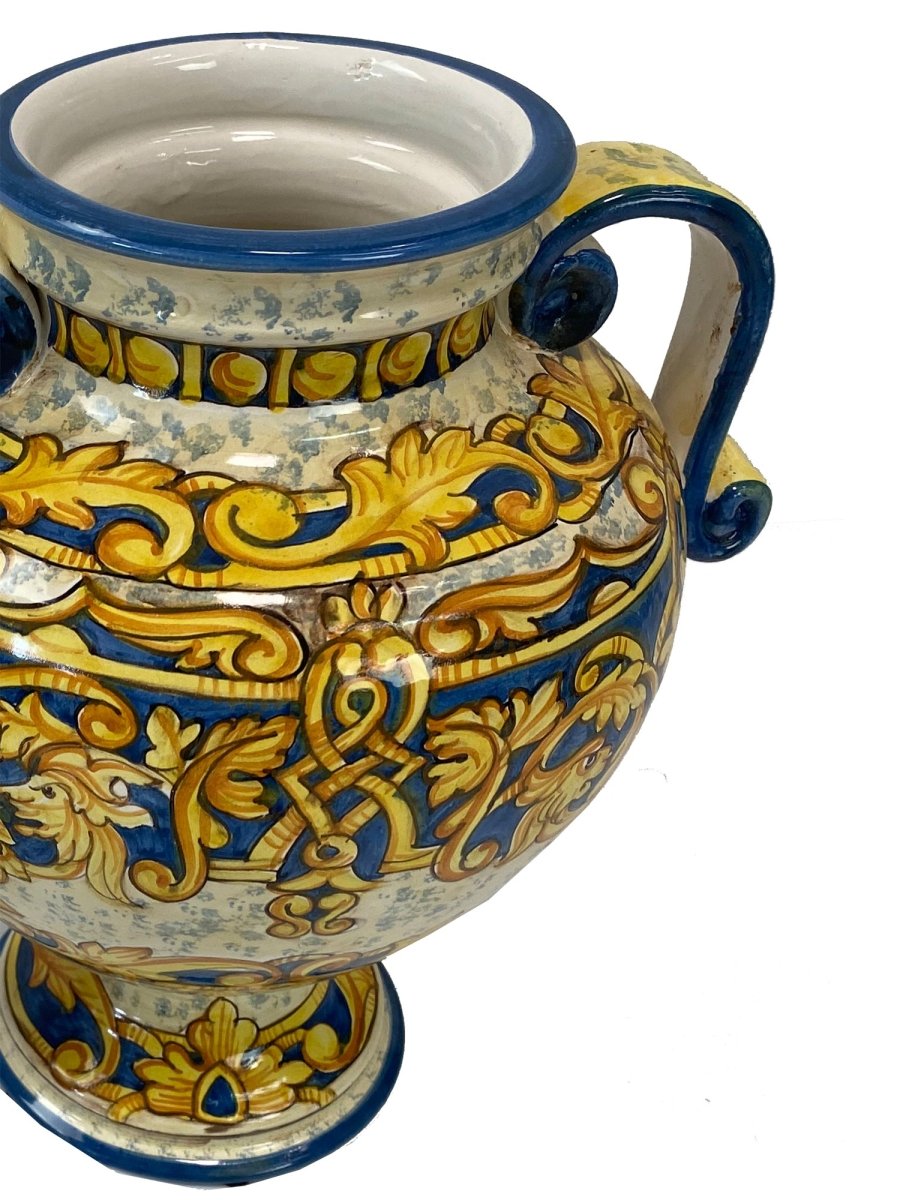 Italian Hand-Painted Ceramic Urn with Handles - 3193
