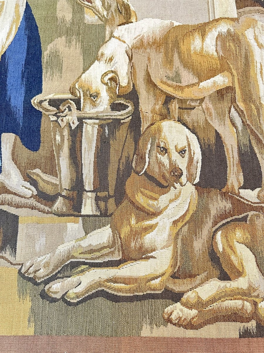 Discover the allure of this 3x3 Square 16th-century style Tapestry, a unique accent that adds classic style to your house. This gorgeous rug, which is hand-knotted from premium wool, has a pictorial design that gives personality to any room. It produces a cozy and welcoming ambiance and is ideal for comfort driven interiors. Its amazing combination of brown, gold, ivory, and blue tones make it a great option for a variety of styles. This outstanding sculpture acts as a stunning piece of art in addition to enhancing your decor. Take advantage of free U.S. delivery.