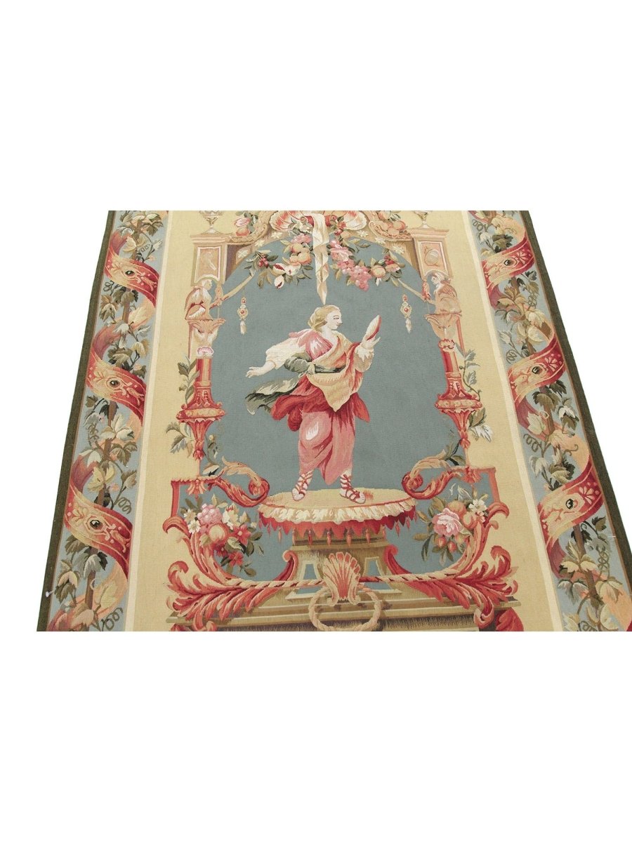 Adorn your wall or enhance a refined space with the distinct allure of this 4x8 Vertical Tapestry, depicting a "Female on Pedestal" facing right. Meticulously hand-knotted in China from fine wool, this exquisite piece displays a captivating pictorial motif across its surface. The elegant color scheme, showcasing soft gold, muted green, blue, and subtle rose pink against a creamy ivory backdrop, bestows serene grace upon any interior. Fashioned for both resilience and decorative charm, this tapestry promises to be a treasured accent in your abode. Its plush texture and elaborate detailing render it a captivating and sophisticated selection for any room. Acquire yours now and enjoy complimentary delivery directly to your United States doorstep. Discover exceptional artistry and comfort in this singular, elegant piece.