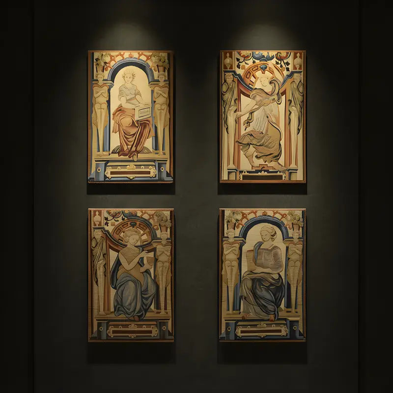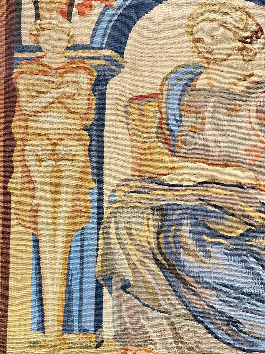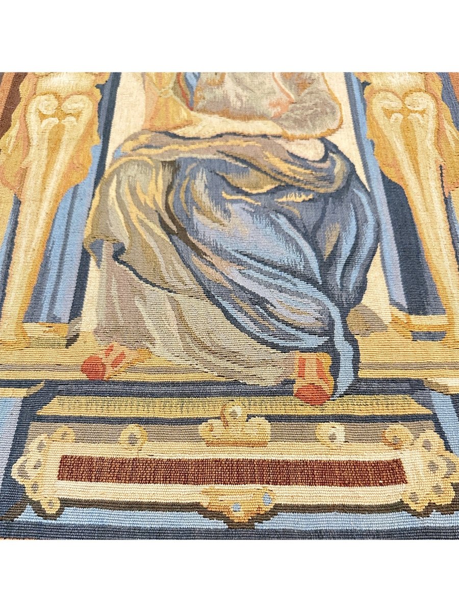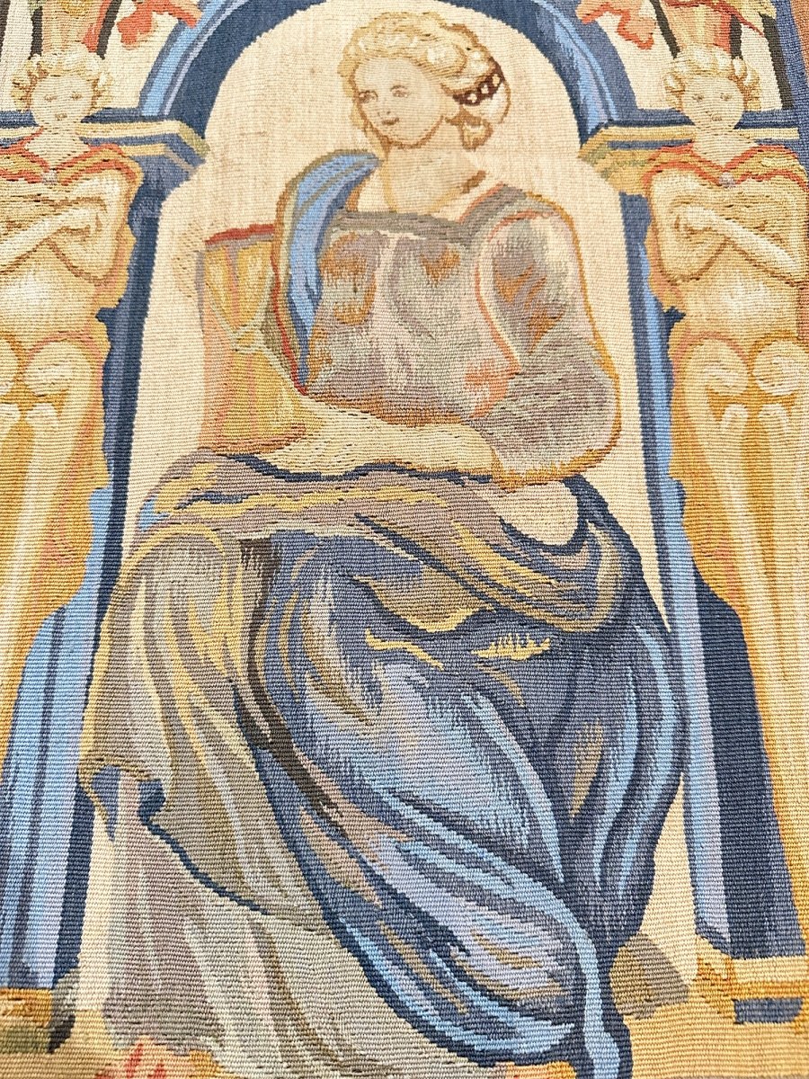 Add a touch of casual style to your home with this Tapestry Fragment - Female in Flowing Dress, crafted in China. This gorgeous rug features a captivating pictorial pattern, showcasing a simple yet effective design in a gold, rust, gray, brown, blue, and tan palette. Its durable wool construction ensures longevity and easy care, perfect for statement zones. The clean finish reflects quality craftsmanship and design. This piece effortlessly brightens, adding warmth, texture, and a relaxed feel. A blend of simple design and function, it easily enhances any space. Enjoy the benefit of free shipping across the United States.