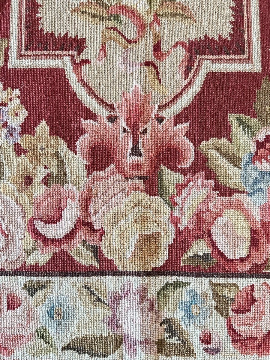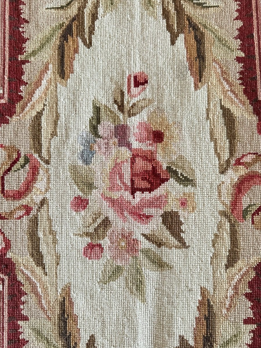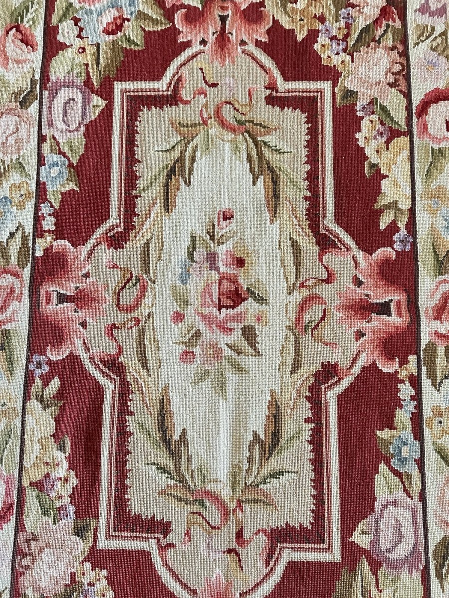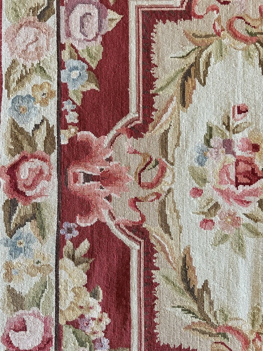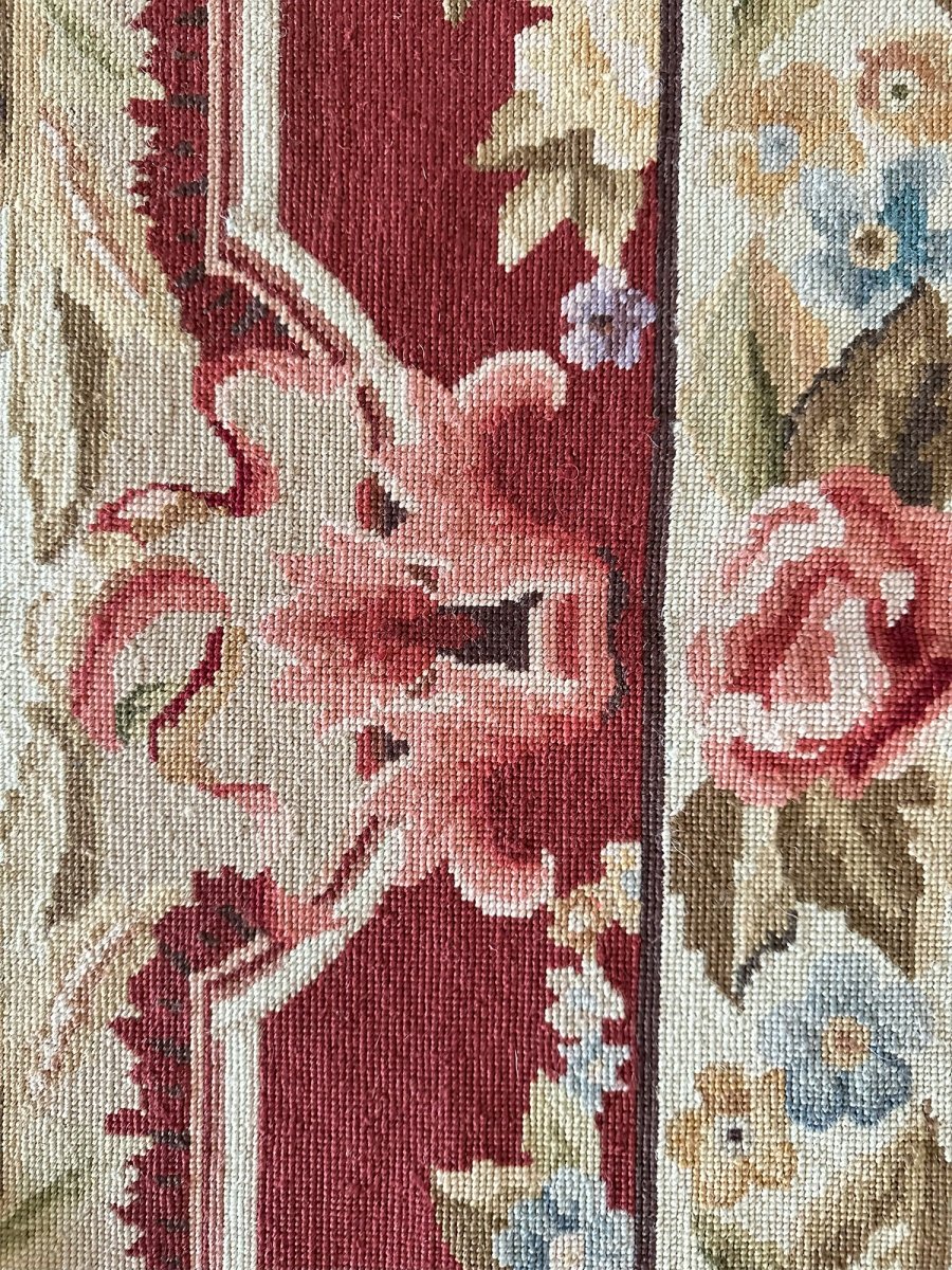 The 3x5 French Needlepoint Style Area Rug is a beauty that adds warmth and elegance to any room. Beautifully hand-knotted from the finest quality wool, this stunning rug features a floral design that is an ideal choice for sophisticated settings, creating a cozy atmosphere. The striking combination of burgundy, cream, olive-green, and blue make it a suitable enhancement for any home style. This outstanding piece not only adds great beauty to your decor but also serves as a fine piece of artwork, sure to be a conversation starter in any home. Enjoy free shipping in the US.