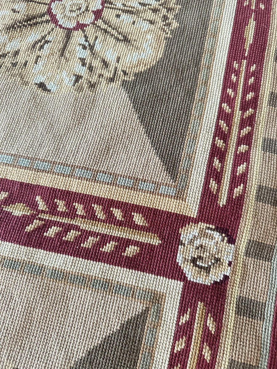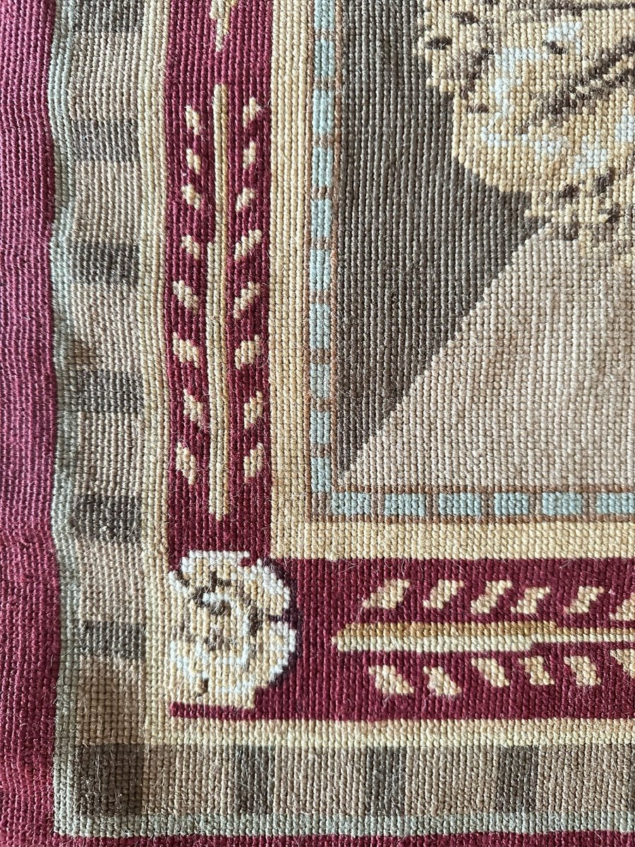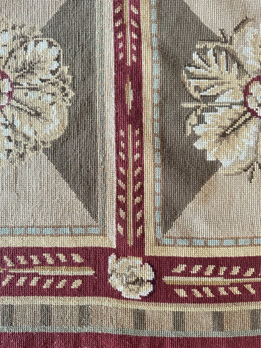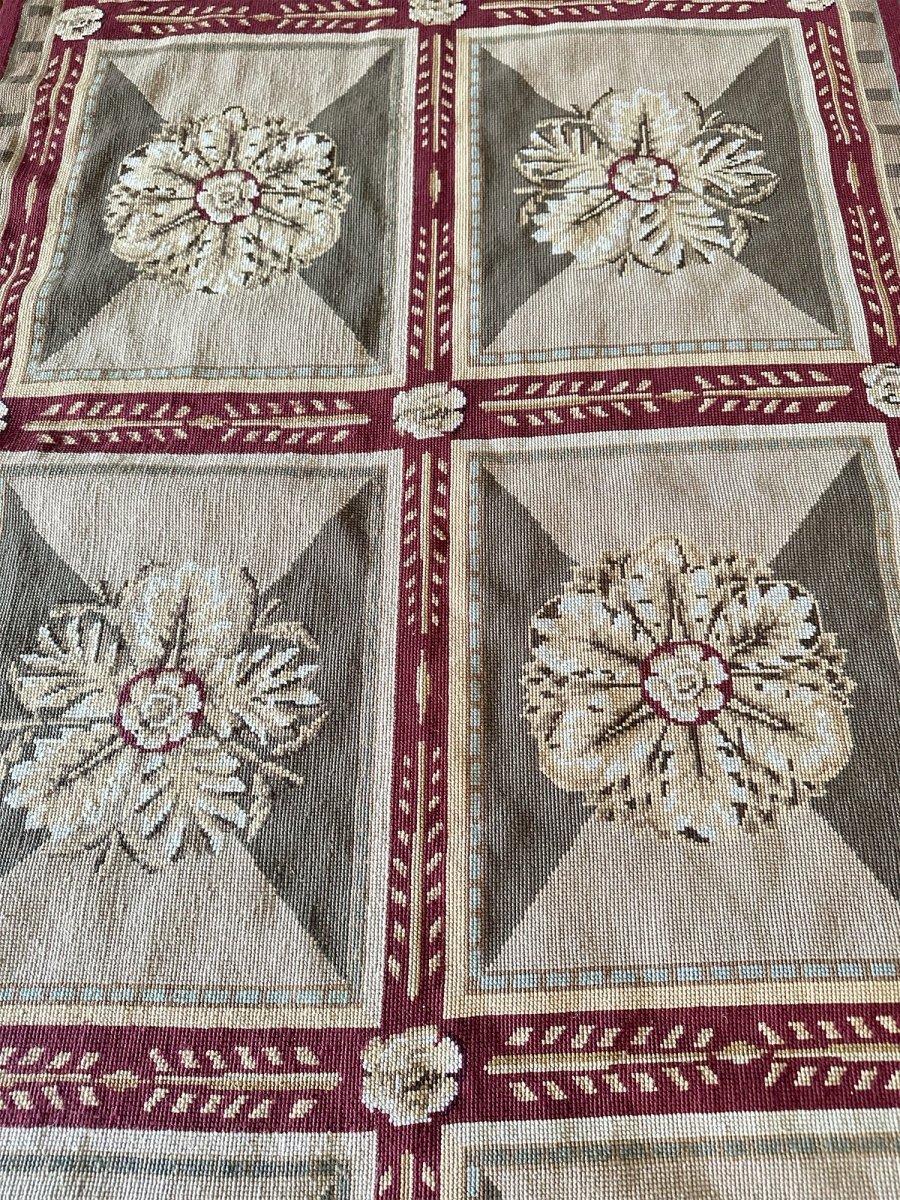 Add a touch of casual style to your home with this 3x9 French Needlepoint Style Runner Rug, crafted in China. This gorgeous rug features a captivating floral pattern, showcasing a simple yet effective design in a taupe, rust, and beige palette. Its durable wool construction ensures longevity and easy care, perfect for timeless interiors. The clean finish reflects quality craftsmanship and design. This piece effortlessly brightens, adding warmth, texture, and a relaxed feel. A blend of simple design and function, it easily enhances any space. Enjoy the benefit of free shipping across the United States. Each rug offers a distinct look, with subtle variations inherent to its creation.