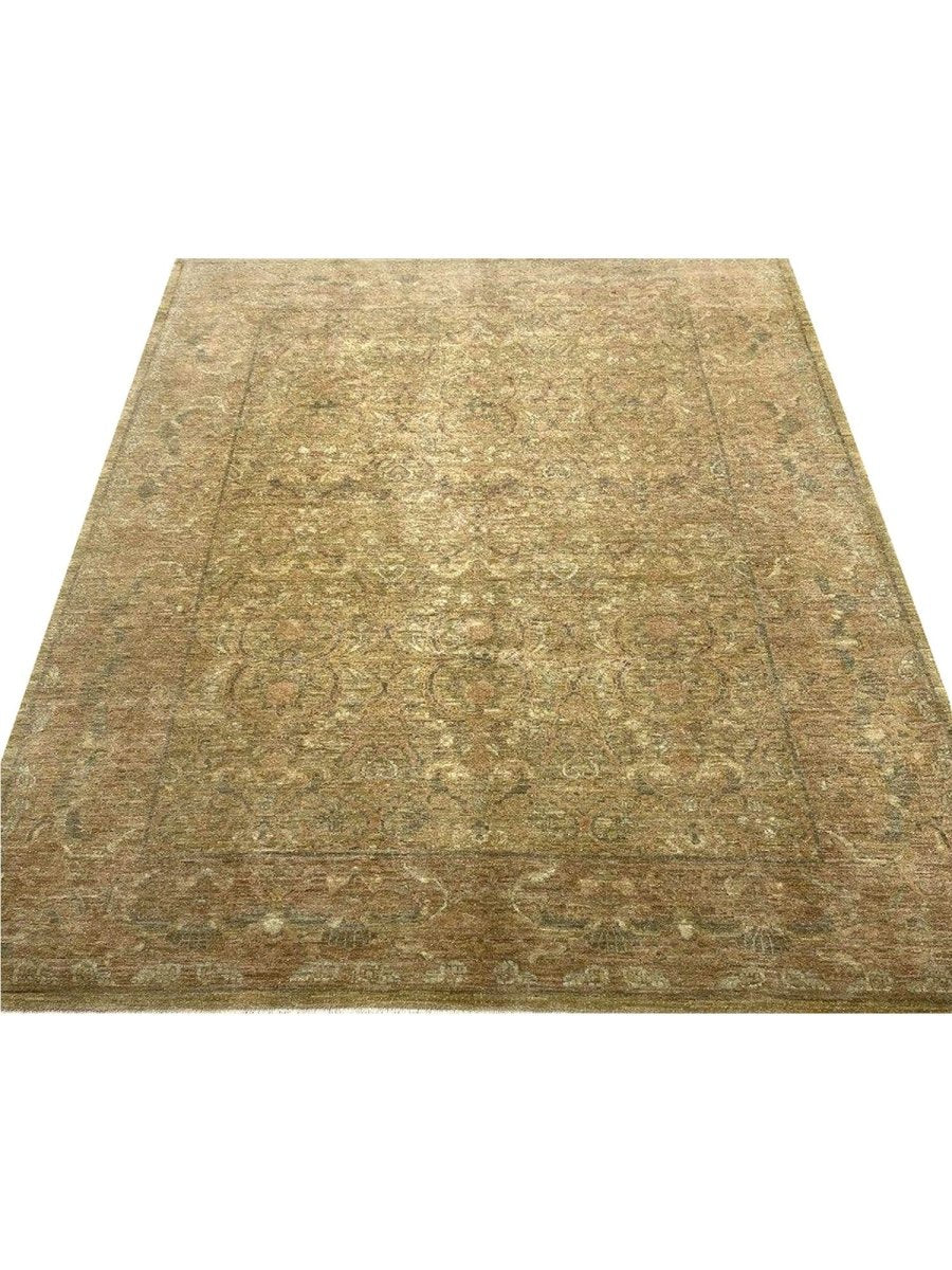 Immerse your space in the sophisticated charm of this magnificent 6x8 European Style Area Rug. Hand-knotted by skilled artisans in Pakistan from high-quality wool, this new rug offers a soft underfoot feel coupled with exceptional durability. The captivating distressed floral pattern showcases classic motifs within a defined border, creating a sense of enduring elegance and artistry.