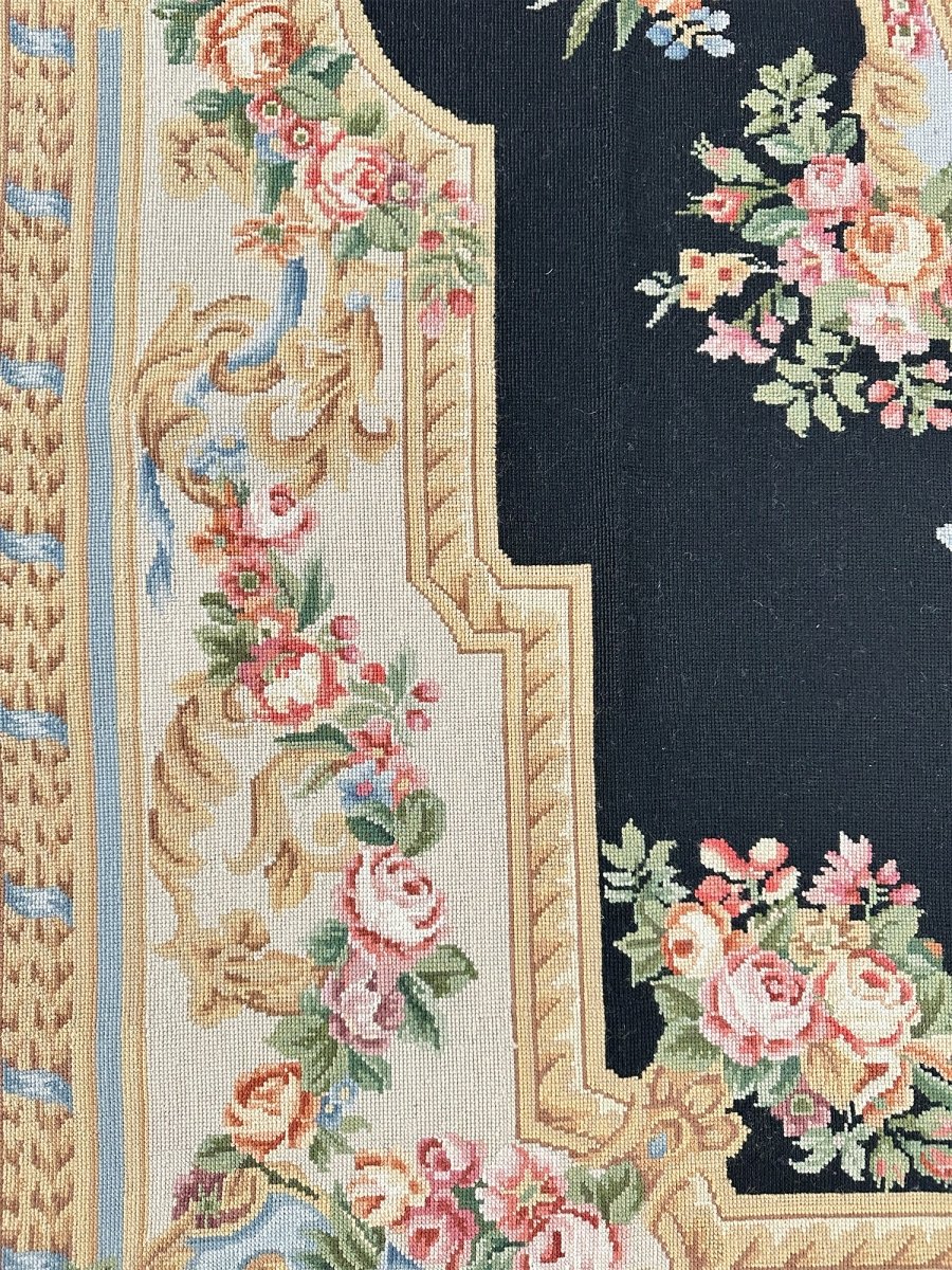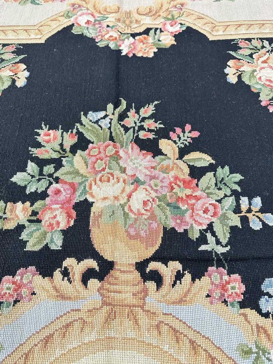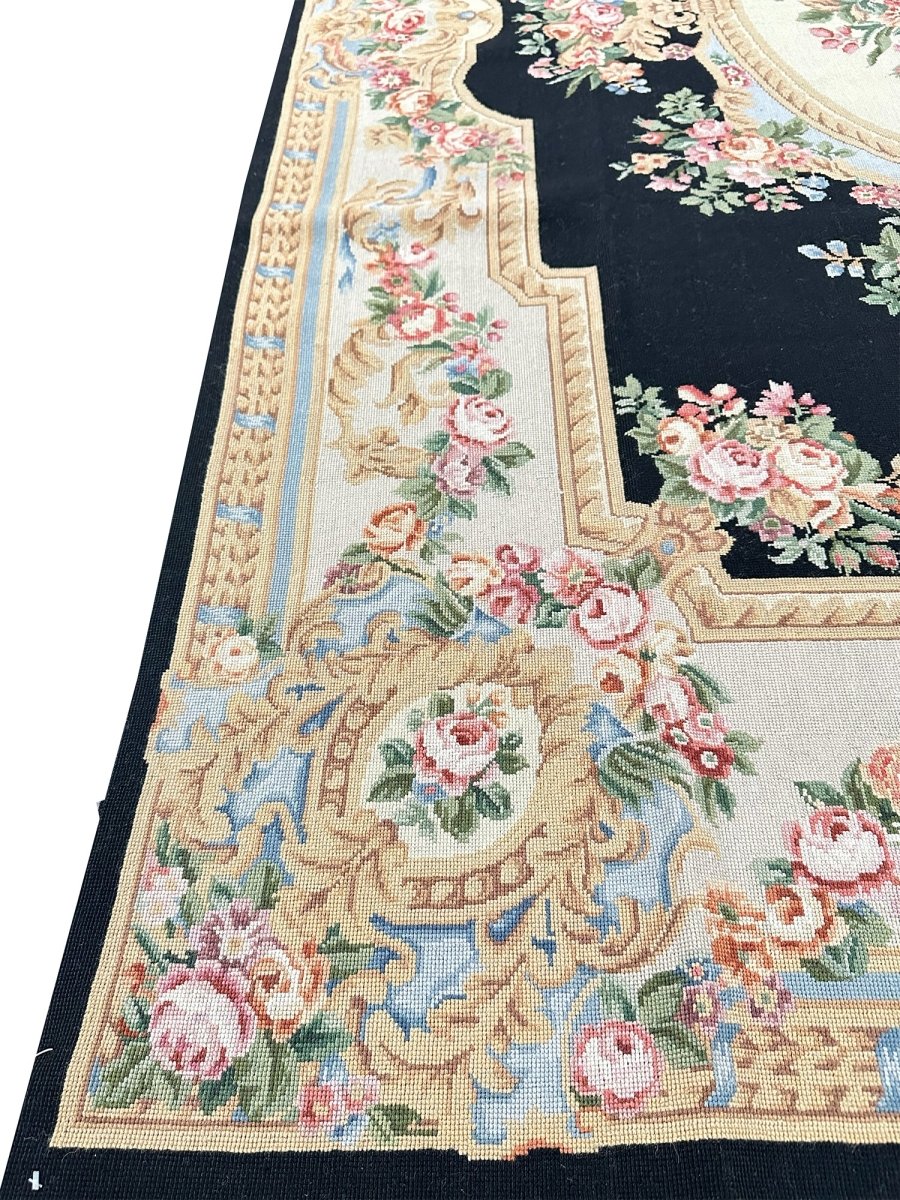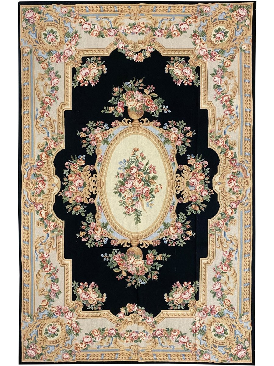 Bring timeless European elegance to your home with this 6x9 French Needlepoint Style Area Rug, hand-knotted from premium wool and expertly crafted in China. Inspired by classic French Needlepoint traditions, this rug features a dramatic black primary field complemented by a refined cream border, creating a sophisticated contrast that suits both traditional and transitional interiors.