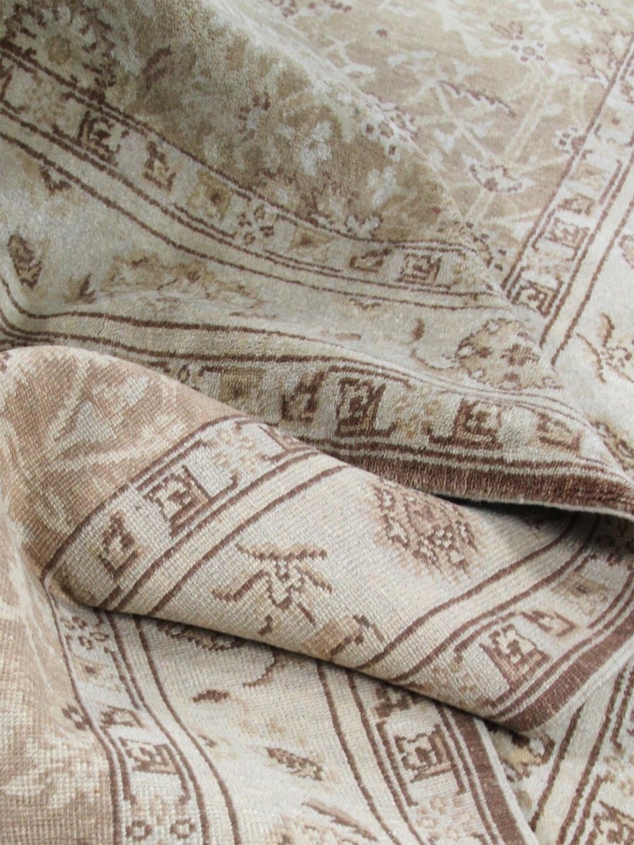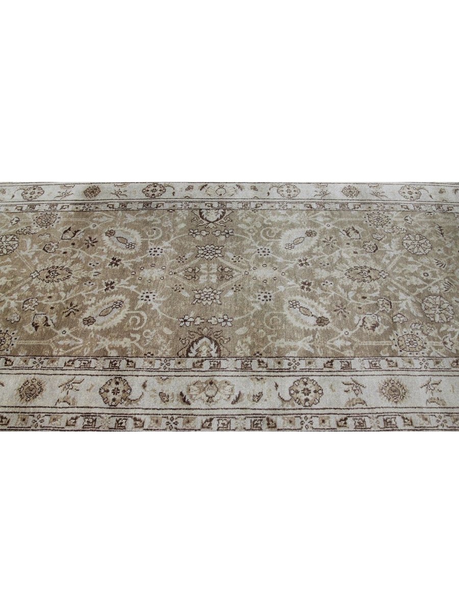 Enhance your home with the elegant design of this 4x20 Mahal Style Runner Rug. Handwoven in China, this runner features a captivating all-over geometric pattern inspired by traditional Mahal designs. The color palette consists of soothing beige and light brown tones, creating a warm, neutral foundation that complements various decor styles. Crafted from premium wool, this runner offers durability and a comfortable texture underfoot. Its impressive 4x20 size is ideal for adding length and a touch of traditional style to long hallways, corridors, or expansive entryways, bringing timeless craftsmanship to your space.