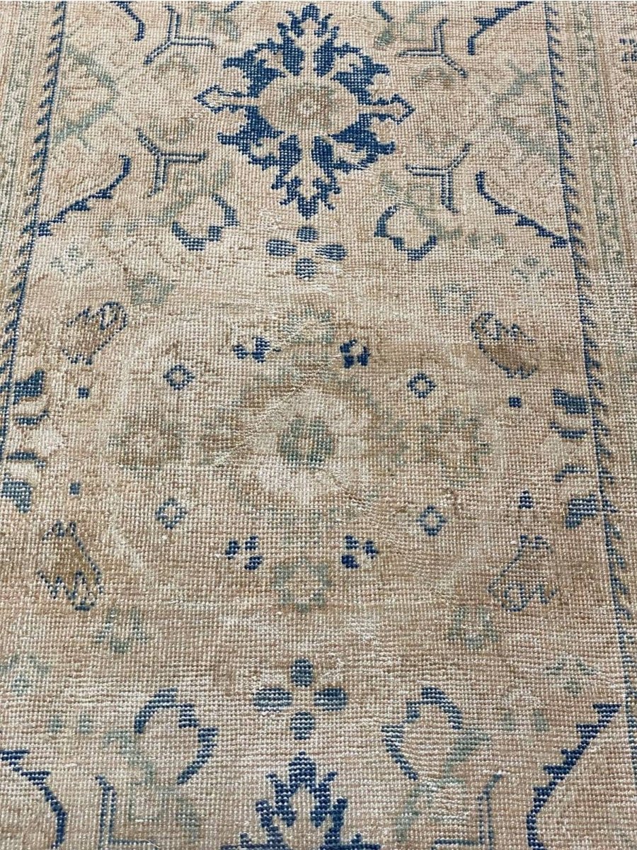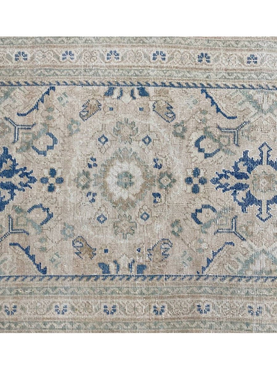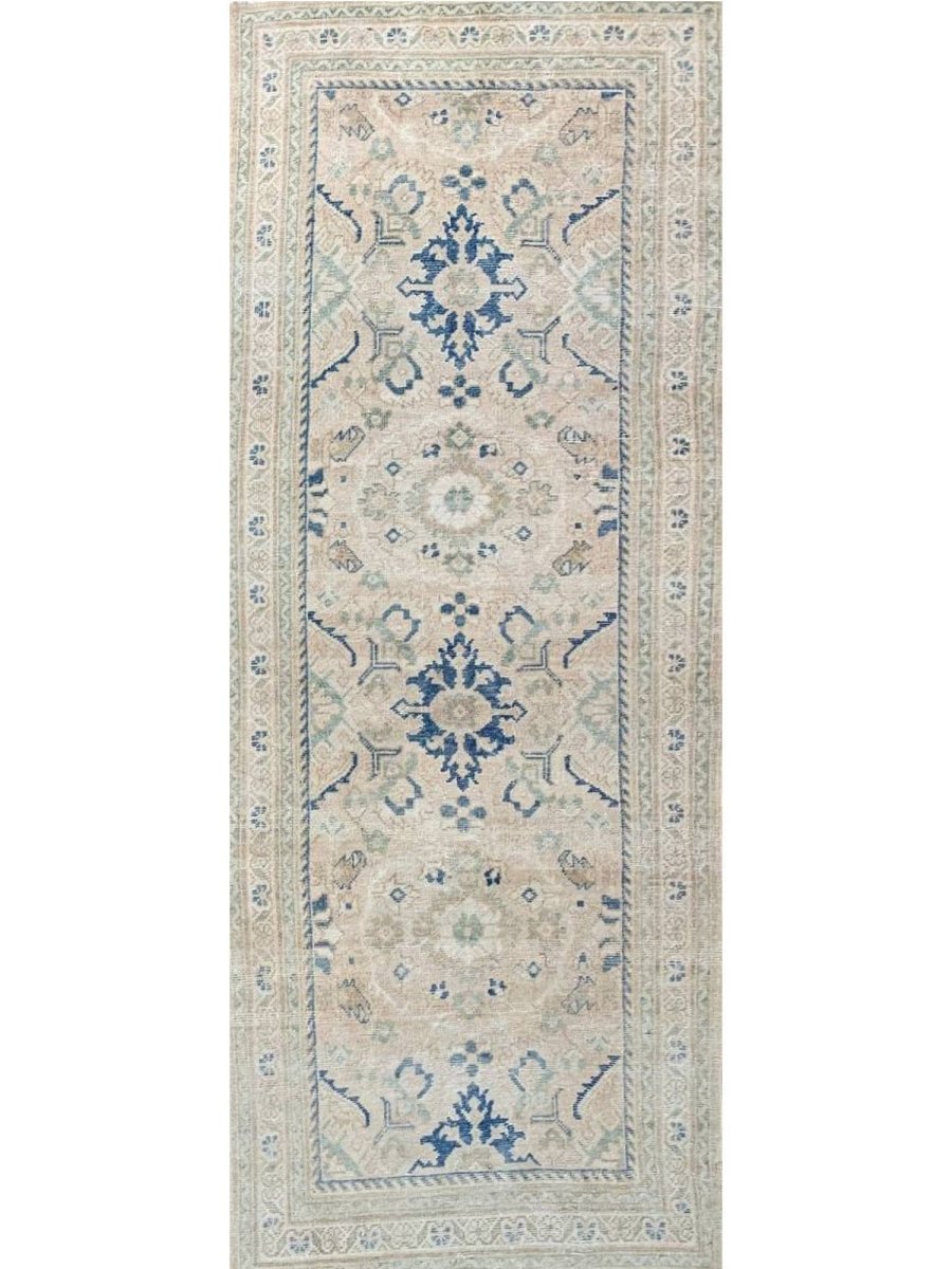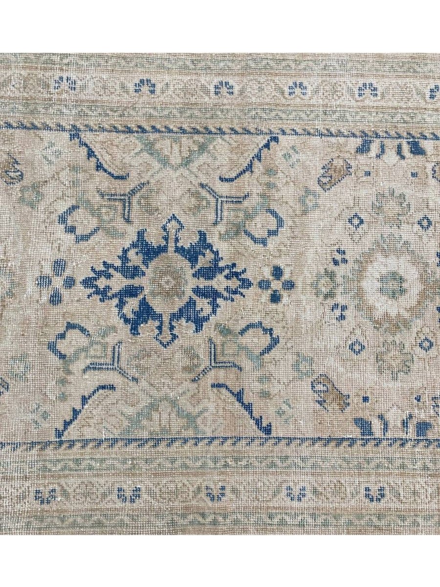 Enhance your home with the timeless charm of this 4x11 Old Persian Mahal Runner Rug. Handwoven in Persia, this rug showcases the enduring craftsmanship of Persian weaving. Its versatile size is perfect for hallways, entryways, and other narrow spaces, adding a touch of traditional elegance to your decor. The geometric pattern offers a classic and sophisticated appeal. The color palette features a soft beige as the primary hue, beautifully contrasted by distinct blue geometric motifs and border accents. These colors work together to create a balanced and inviting aesthetic. Crafted from durable wool, this runner rug is designed for longevity, becoming a cherished element in your home for years. Enjoy the beauty and heritage of a handwoven Persian rug, plus free US shipping.