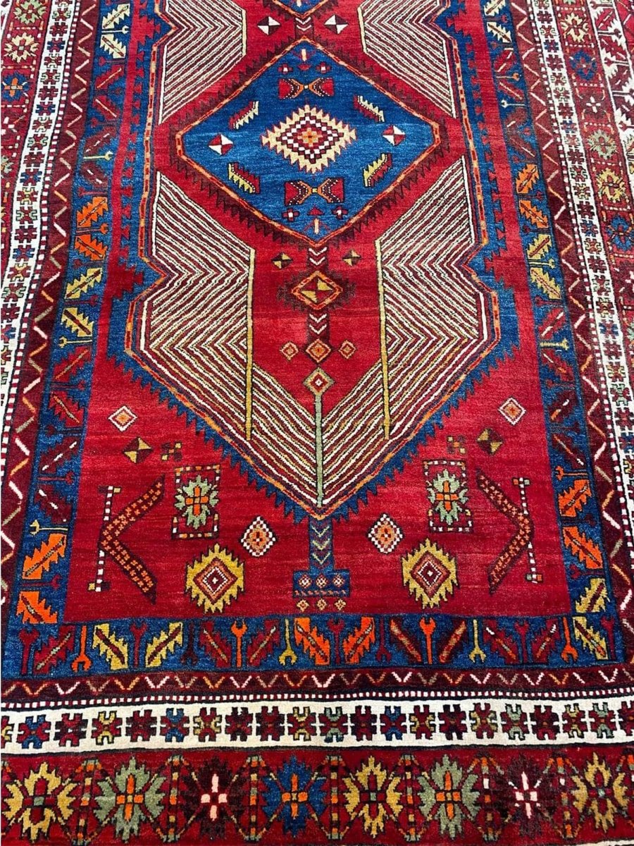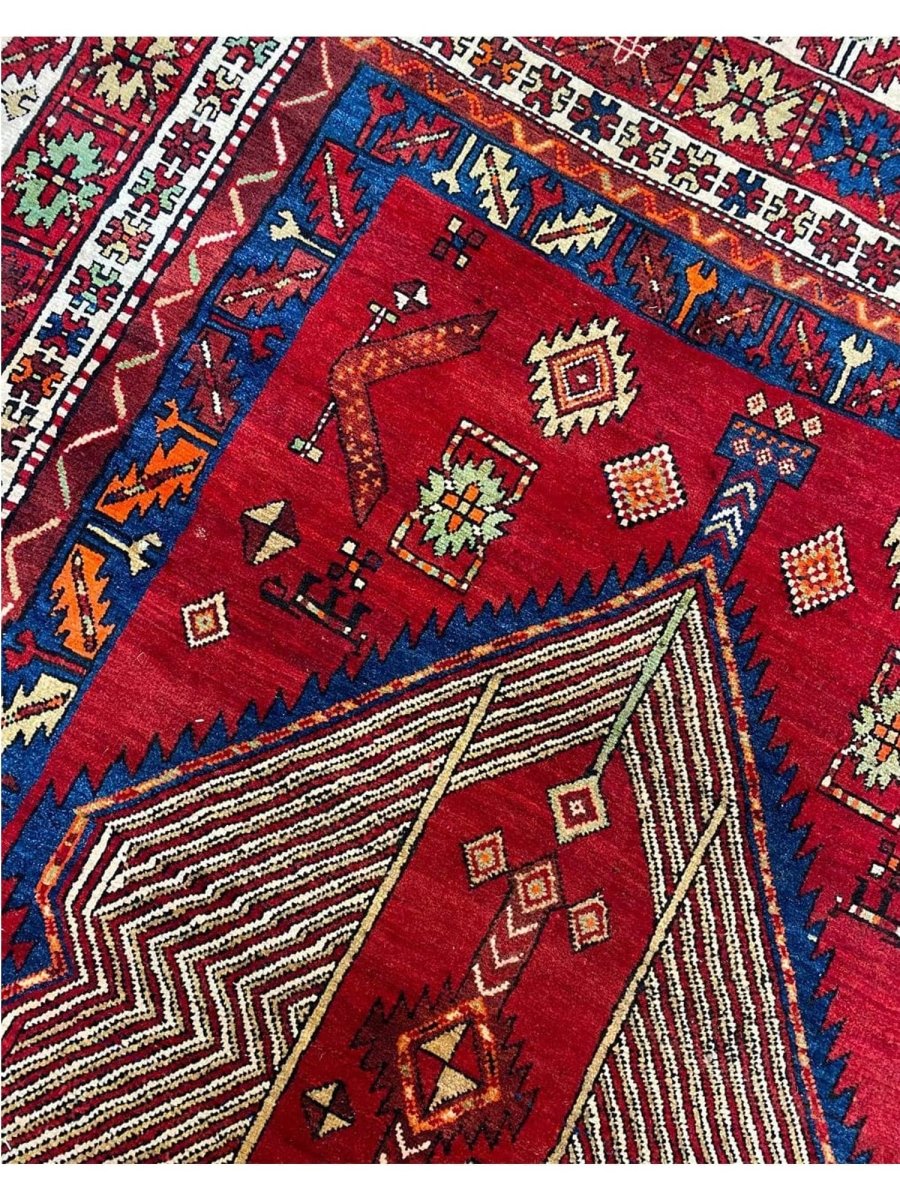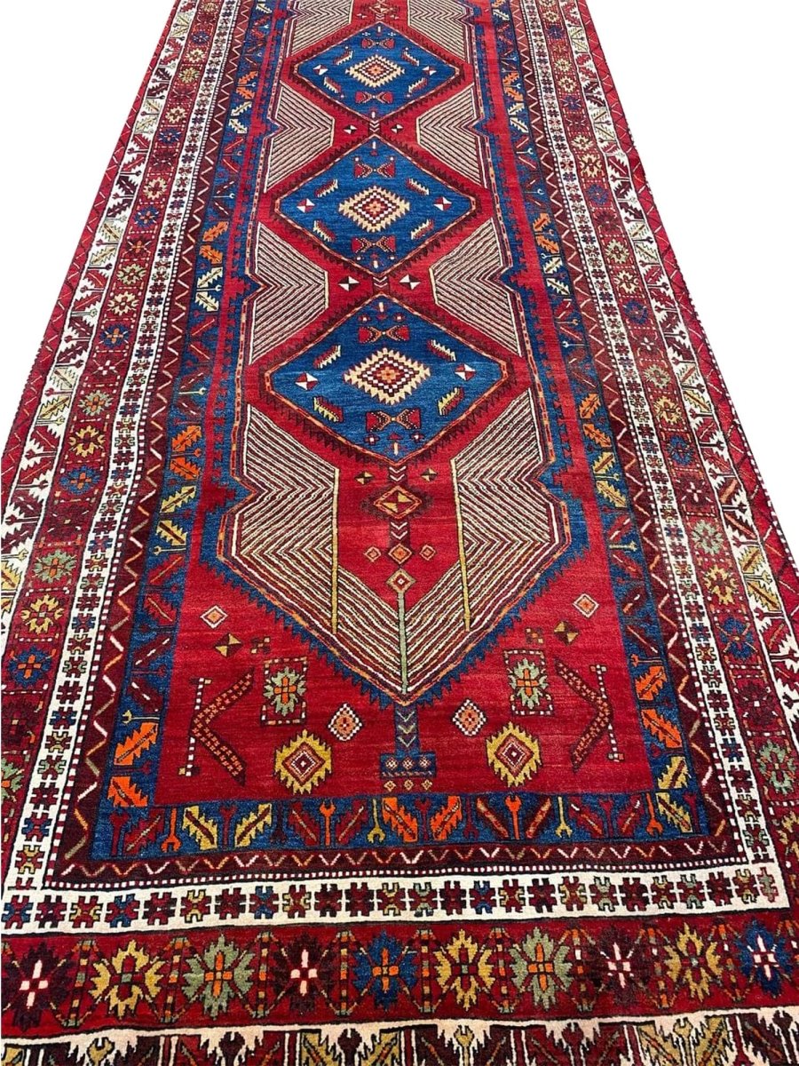 Experience the elegance of the 5x14 Old Persian Heriz Runner Rug, a unique piece that brings classic beauty to your home. Hand-knotted from quality wool, this beautiful rug boasts a medallion pattern that adds charm to any room. Ideal for hallways, entryways, or as a focal point in your entranceway, it makes any space feel cozy and inviting. The stunning combination of red, brown, blue, yellow, orange, and ivory colors make it a great option for any style. This outstanding item not only beautifies your space but also stands as a stunning piece of art. Get free shipping in the US.