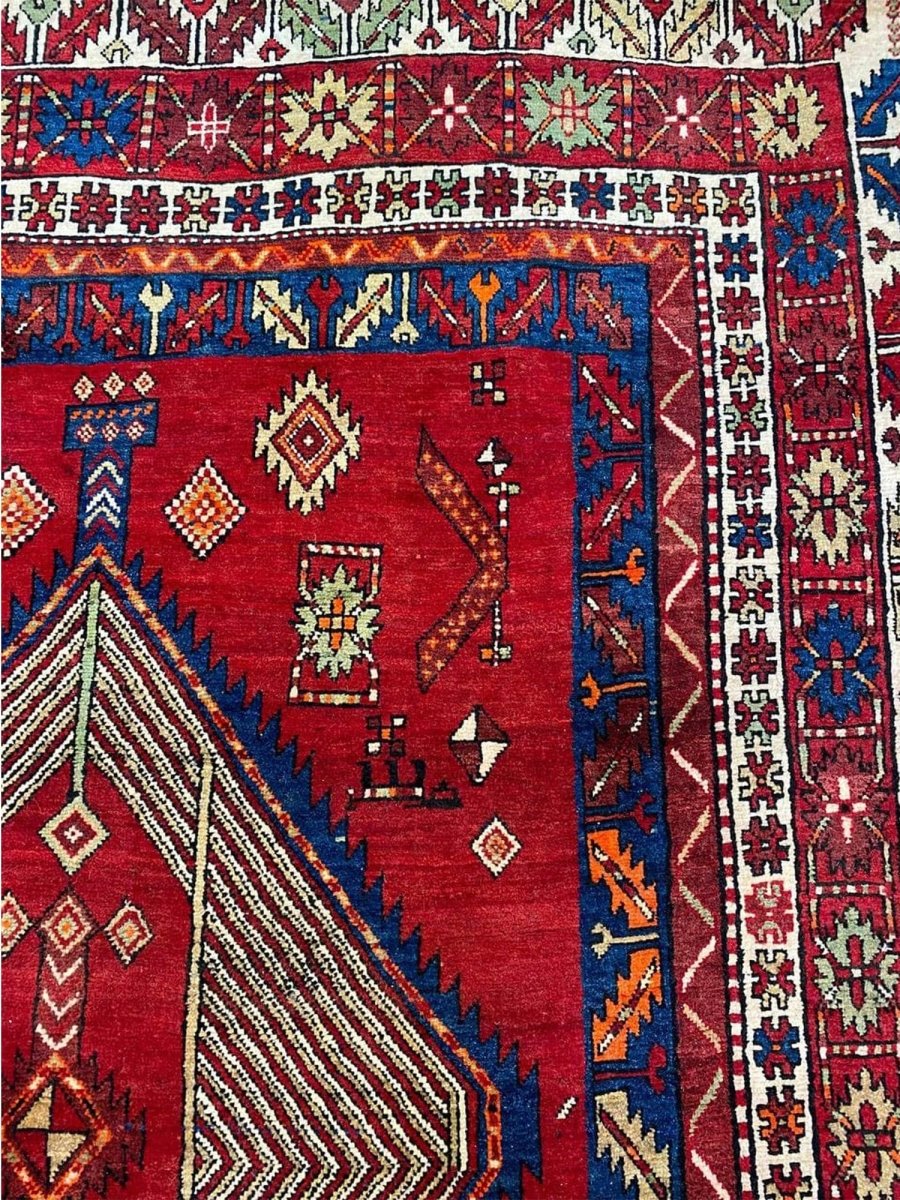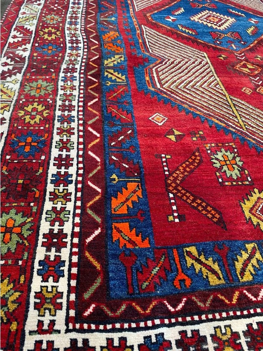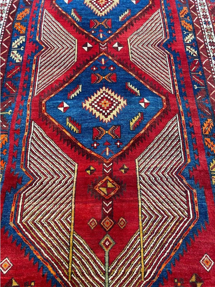 Experience the elegance of the 5x14 Old Persian Heriz Runner Rug, a unique piece that brings classic beauty to your home. Hand-knotted from quality wool, this beautiful rug boasts a medallion pattern that adds charm to any room. Ideal for hallways, entryways, or as a focal point in your entranceway, it makes any space feel cozy and inviting. The stunning combination of red, brown, blue, yellow, orange, and ivory colors make it a great option for any style. This outstanding item not only beautifies your space but also stands as a stunning piece of art. Get free shipping in the US.