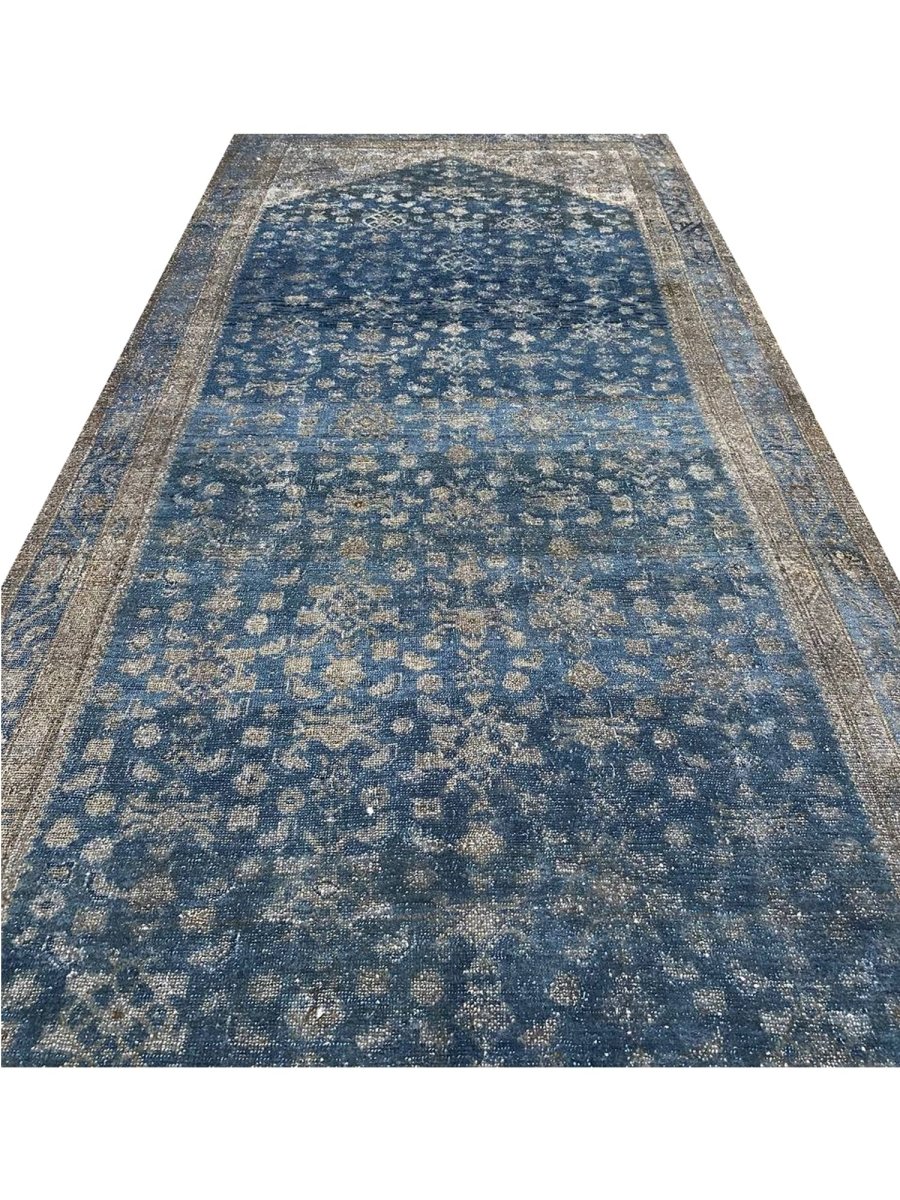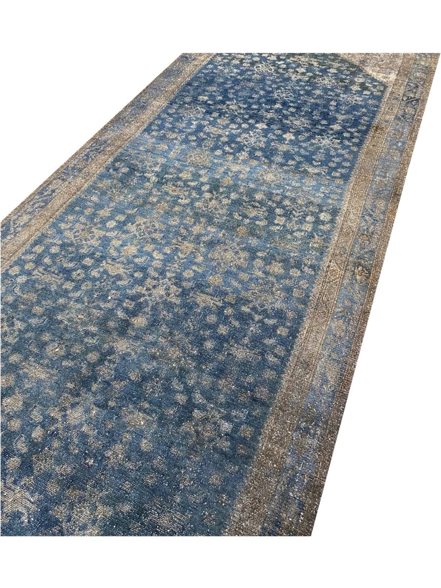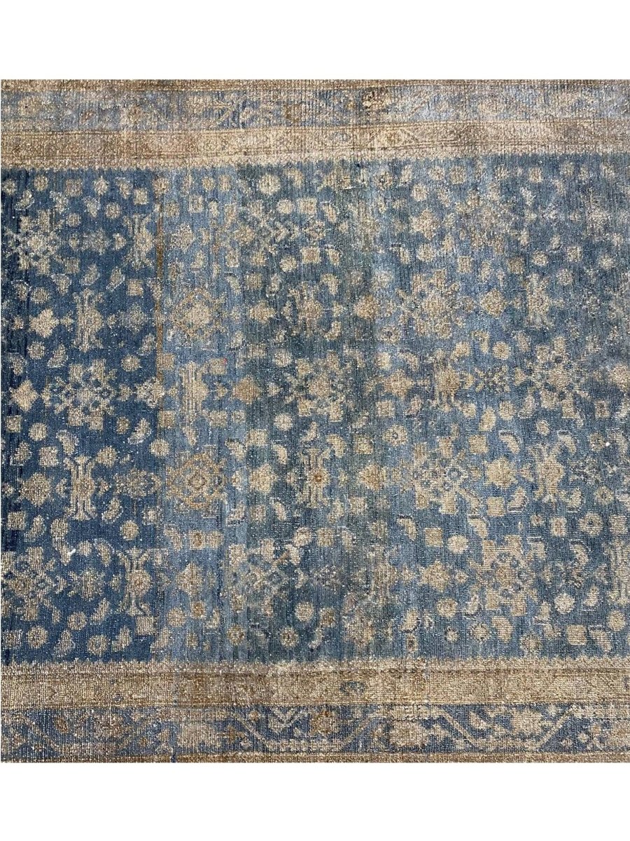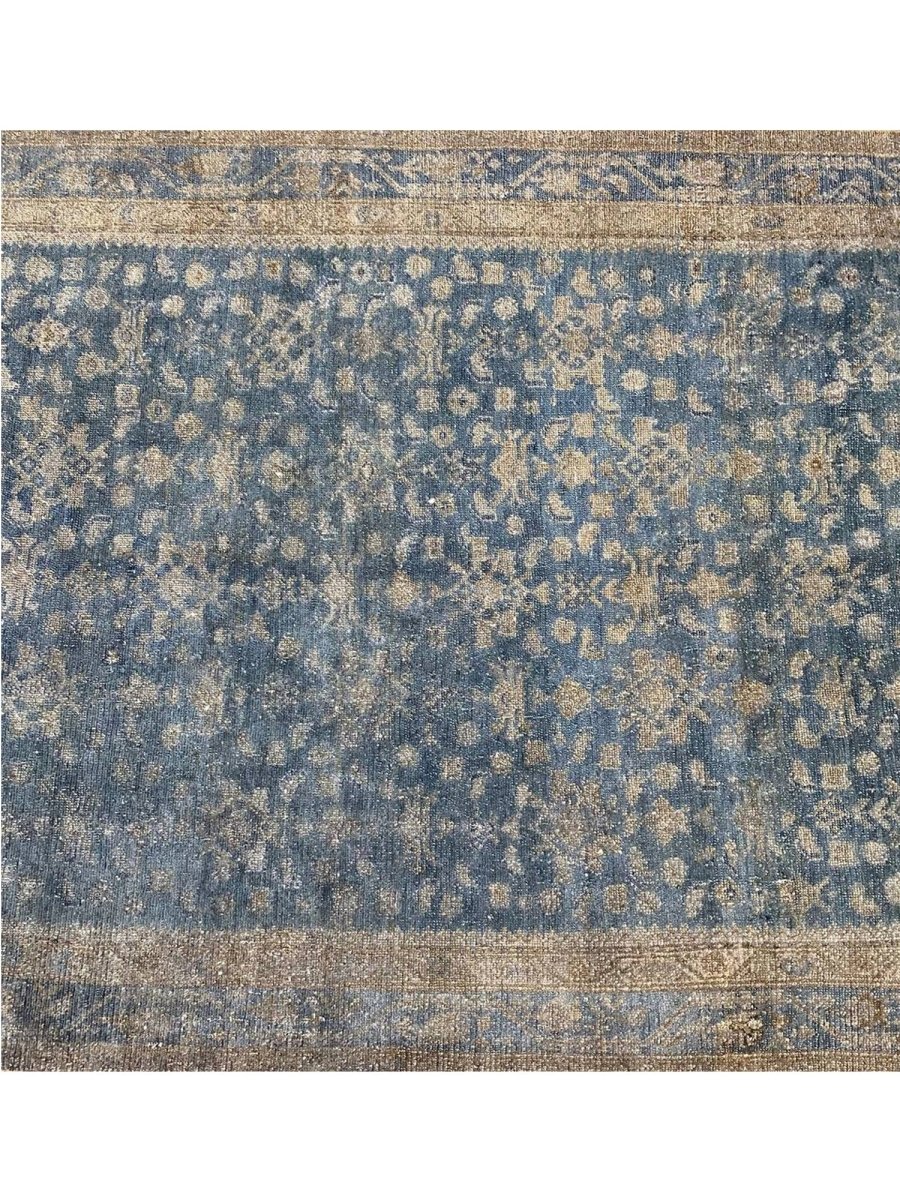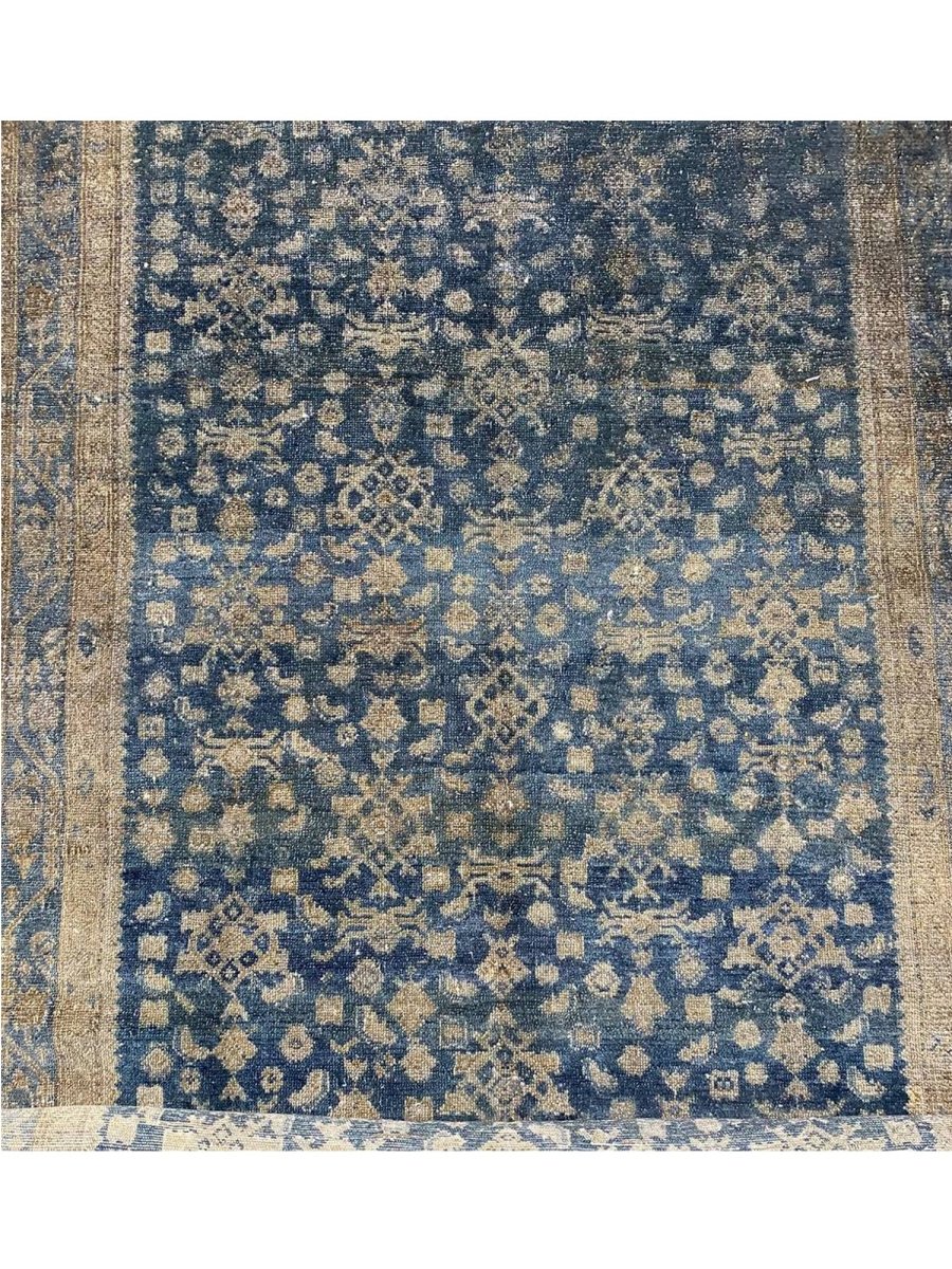 Transform your home with the timeless elegance of this 5x19 old Persian Malayer runner rug. Hand-knotted in Persia using traditional techniques, this rug boasts exceptional quality and craftsmanship. The intricate pattern, featuring delicate floral motifs and subtle geometric shapes, creates a visually striking effect that's sure to impress. The soothing blue, beige, and brown hues evoke a sense of warmth and coziness, making this rug perfect for adding a touch of sophistication to any room. As an antique piece, this rug has a unique character that's been developed over time, making it a truly special addition to your home decor. With its exceptional quality and timeless design, this rug is a true investment piece that will be cherished for generations to come. Its classic design and rich colors make it a versatile addition to any room. Whether you're looking to elevate your living room or create a cozy atmosphere in your bedroom, this rug is sure to impress.