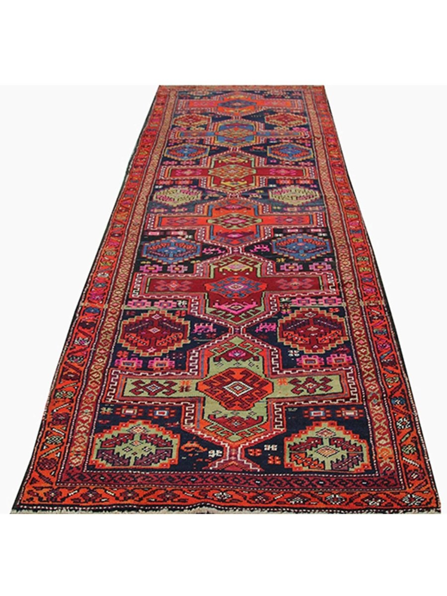 Step into elegance with this magnificent 4x12 Old Persian Malayer Runner rug. Hand-knotted in Persia from fine wool, it showcases an exquisite geometric pattern. The design unfolds with intricate motifs across a captivating field and rich borders, detailed in rust, blue, olive green, pink and orange. This substantial size is perfect for anchoring extremely narrow spaces, such as hallways, and entryways adding timeless beauty and luxurious comfort. The meticulous craftsmanship ensures lasting quality. Bringing this traditional rug into your home adds a piece of art and history, a true testament to Persian weaving tradition. Enjoy its enduring charm with free delivery across US.