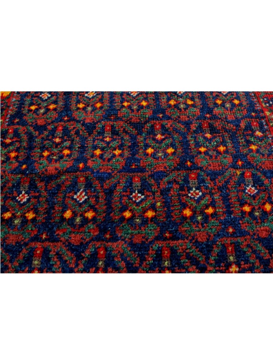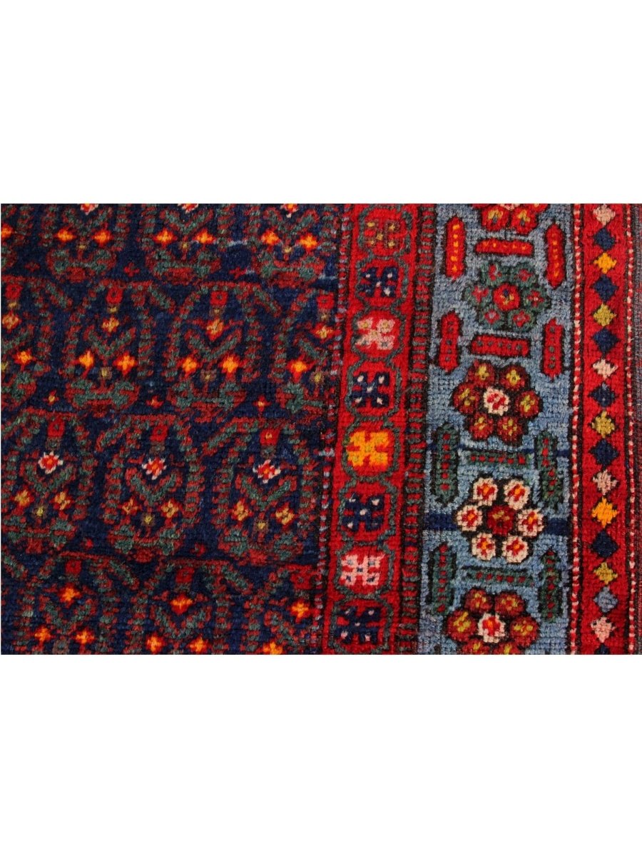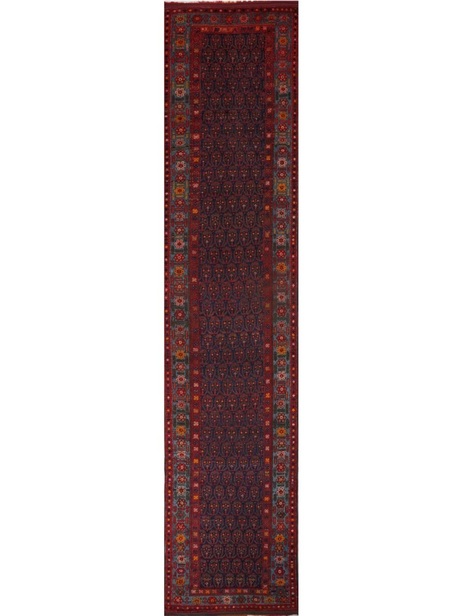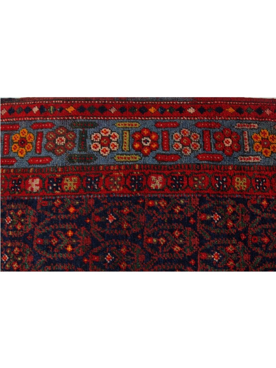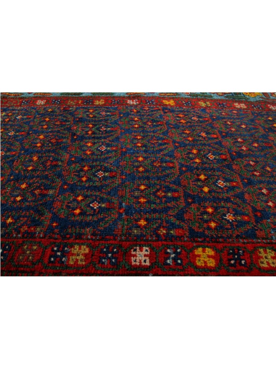 This 4x18 Old Persian Kurdish Runner Rug will add bold character and vivid color to any hallway or small area. Hand-knotted from fine wool, it features a geometric pattern in blue, red, and yellow. Its robust structure withstands everyday wear and tear, while the plush texture guarantees a comforting sensation underfoot. This versatile traditional runner is perfect for enhancing halls, corridors, and entryways, as it skillfully blends classic craftsmanship with a vibrant appearance. When you incorporate this delightful piece into your home, you can enjoy free delivery within the United States.