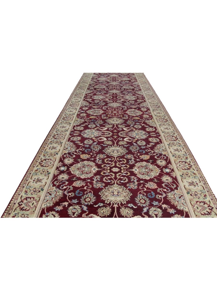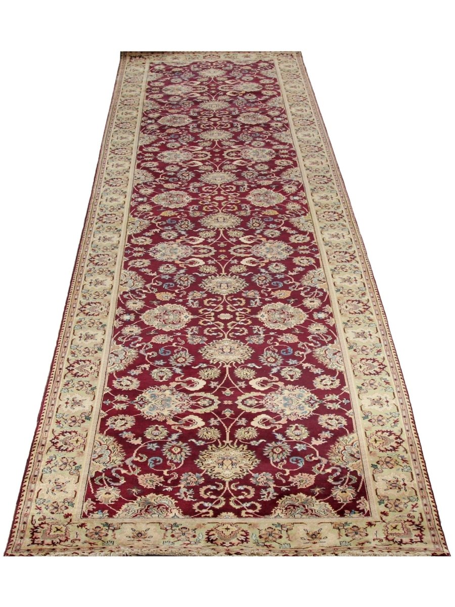 Add a touch of casual style to your home with this 4x17 Handwoven Indo Persian Area Rug, crafted in India. This rug features a captivating geometric pattern, showcasing a simple yet effective design in a burgundy, soft beige, and brown palette. Its durable wool construction ensures longevity and easy care, perfect for living rooms, bedrooms, and dining spaces. The clean finish reflects quality craftsmanship and design. This piece effortlessly brightens, adding warmth, texture, and a relaxed feel. A blend of simple design and function, it easily enhances any space. Enjoy the benefit of free shipping across the United States. Each rug offers a distinct look, with subtle variations inherent to its creation.