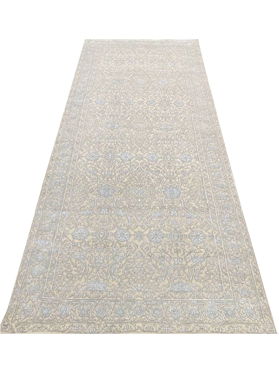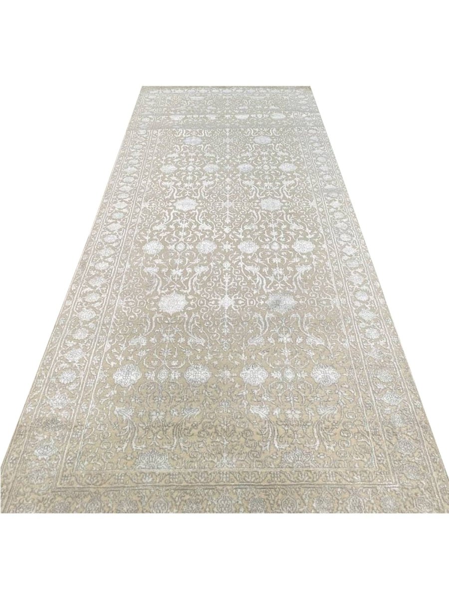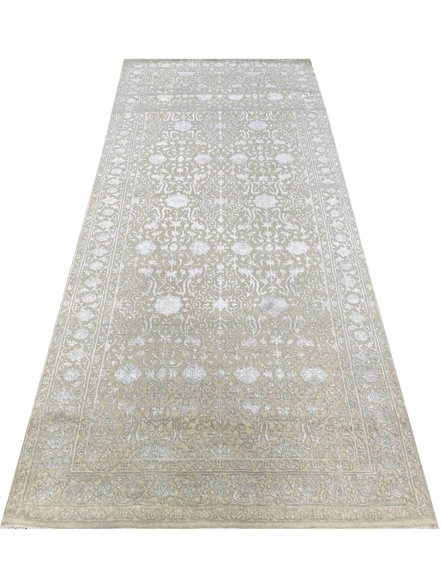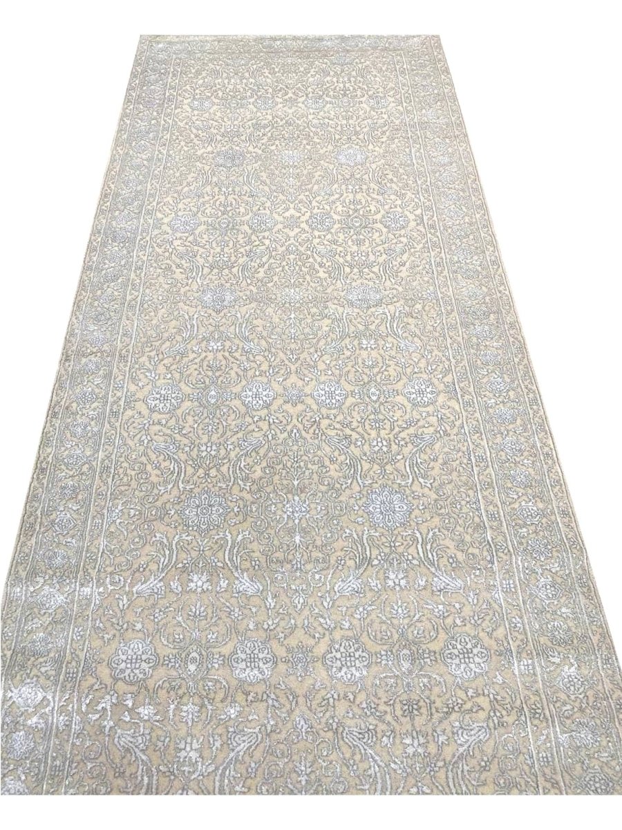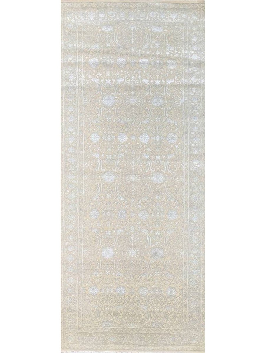 Experience the charm of the 4x10 Transitional Tabriz Runner Rug, a one-of-a-kind addition that brings traditional elegance to your home. Hand-knotted from high-quality wool and bamboo silk, this stunning rug features a geometric design that adds character to any space. Perfect for narrow hallways, inviting kitchens, or as a statement piece in your living room, it creates a warm and welcoming atmosphere. The exquisite soft ivory, and brown make it a versatile choice for various styles. This exceptional piece not only enhances your decor but also serves as a beautiful work of art. Enjoy free shipping in the US.