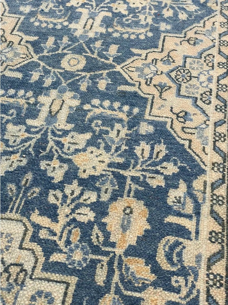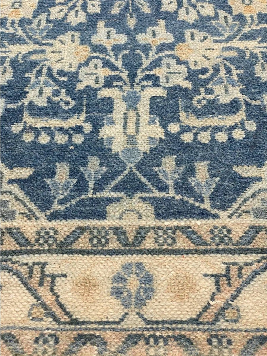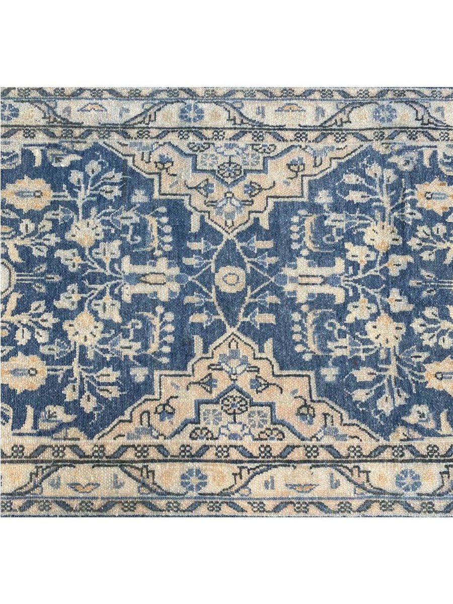 This exquisite 4x11 Old Persian Hamedan Runner Rug enhances your hallway. Showcasing a classic medallion pattern filled with intricate floral and geometric designs, this rug reflects the esteemed weaving heritage of Persia. The rich, deep blue background is beautifully contrasted with lighter shades of blue and accents of ivory and beige in the patterns and borders, creating a sophisticated and timeless appeal. Handwoven in Persia from premium wool, this runner offers durability and a soft texture underfoot. Its elongated size adds warmth and style to hallways, entryways, or narrow spaces, bringing authentic Persian artistry to your home.