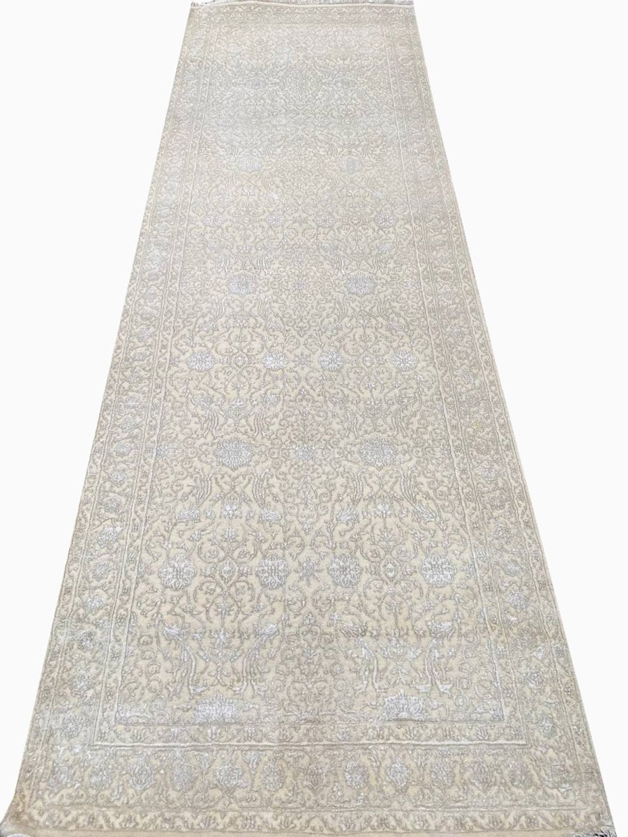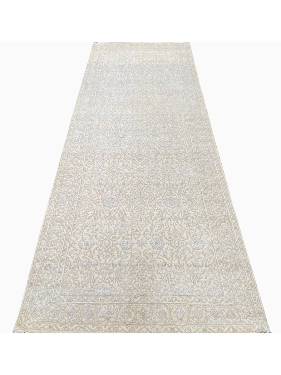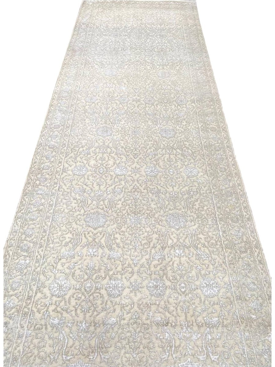 Discover the appeal of the 4x12 Transitional Tabriz Runner Rug, a unique accent piece for your house. This gorgeous runner, which is hand-knotted from a luxurious combination of wool and bamboo silk, has a rich flower design that elevates any space. It generates a warm and welcoming environment and is ideal for long corridors, tiny entryways, or as the centerpiece in your living space. It is a flexible option for your design because of the lovely blending of the gentle beige and white hues. This outstanding item is a magnificent piece of art and improves your area. Take advantage of free US delivery.