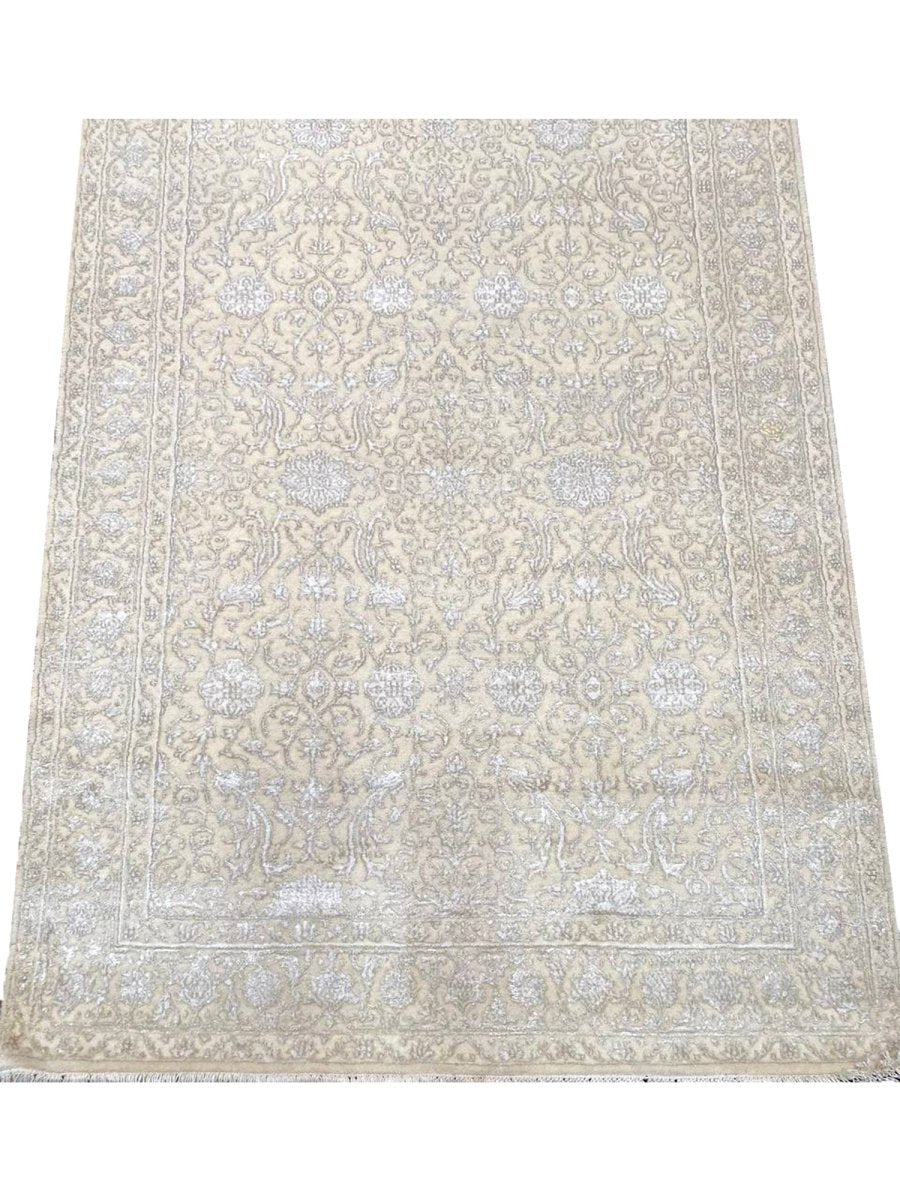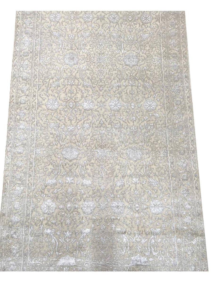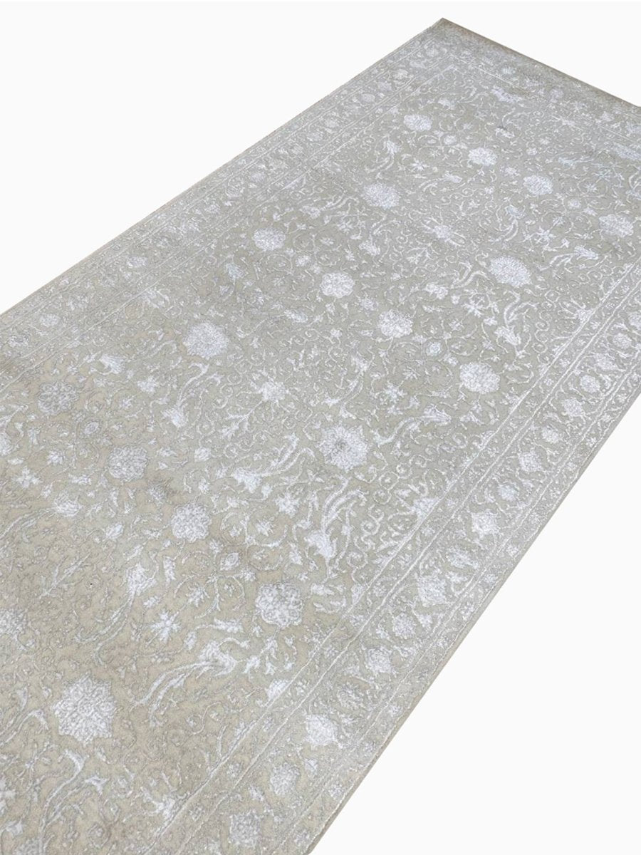 Discover the appeal of the 4x12 Transitional Tabriz Runner Rug, a unique accent piece for your house. This gorgeous runner, which is hand-knotted from a luxurious combination of wool and bamboo silk, has a rich flower design that elevates any space. It generates a warm and welcoming environment and is ideal for long corridors, tiny entryways, or as the centerpiece in your living space. It is a flexible option for your design because of the lovely blending of the gentle beige and white hues. This outstanding item is a magnificent piece of art and improves your area. Take advantage of free US delivery.