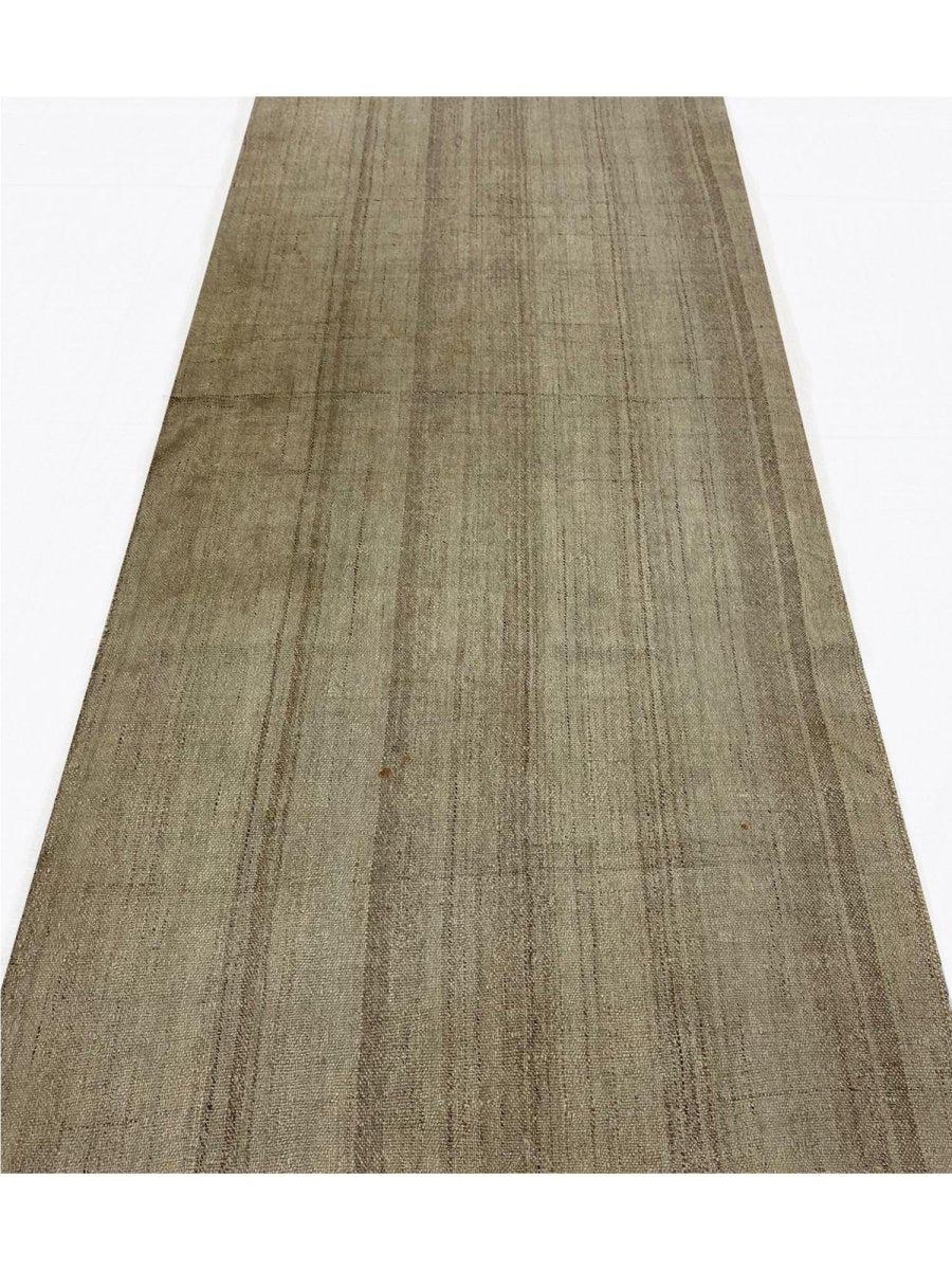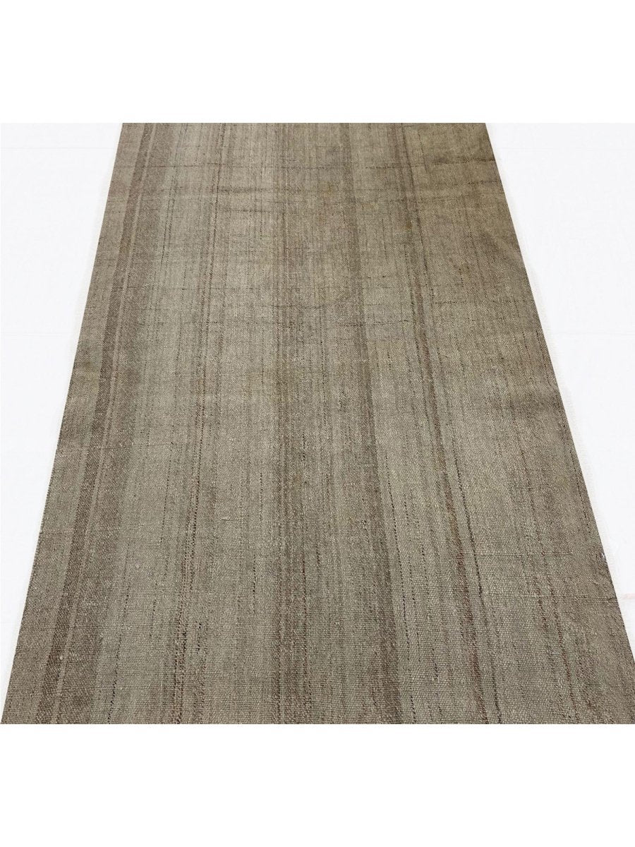 The 4x8 Old Persian Kilim Runner features a minimalist design with light brown and beige tones, creating a calm, earthy ambiance. Delicate linear accents run vertically across the rug, adding subtle depth and elegance. The pattern’s simplicity is complemented by organic, textured variations in the background, giving it a natural, handcrafted feel. This rug works well in sleek, chic, or minimalist interiors, providing a sophisticated backdrop to other design elements in the room. Its neutral tones and subtle pattern make it a versatile addition to hallways, kitchens, or other narrow spaces. Whether enhancing your living room, bedroom, or office, this rug brings a blend of cultural artistry and chic charm to your interior. This rug is a timeless accent that will enrich your living space.