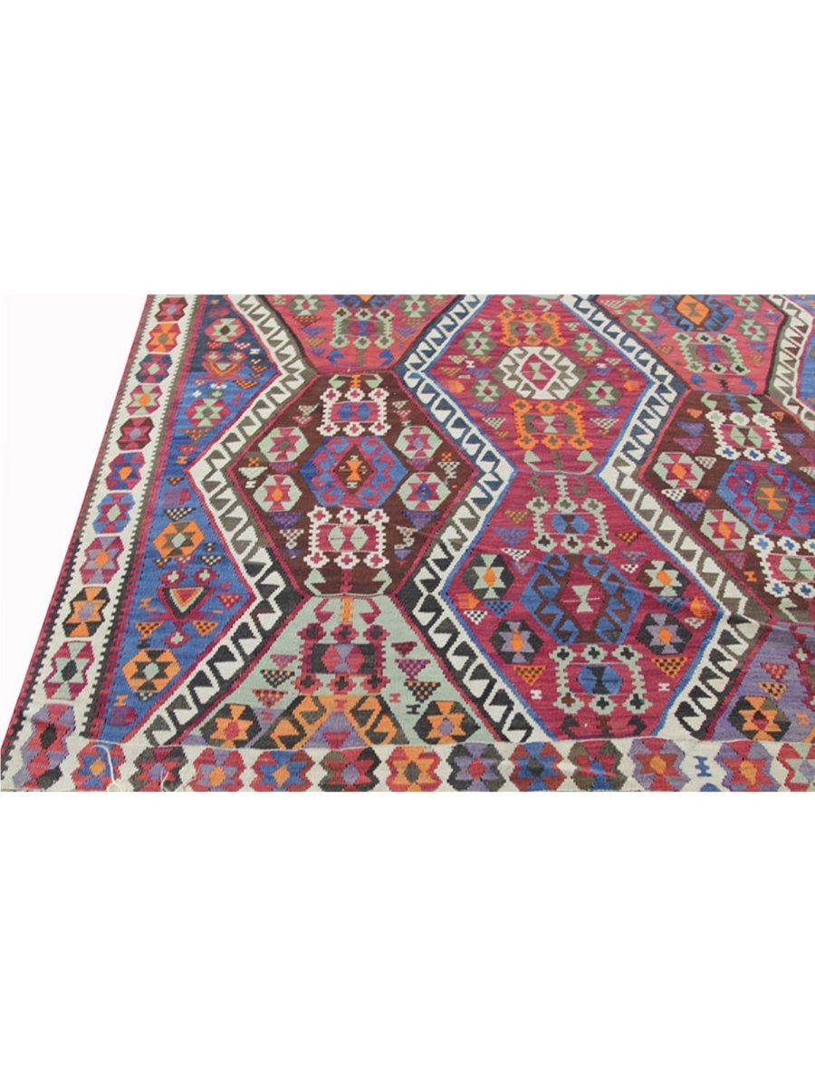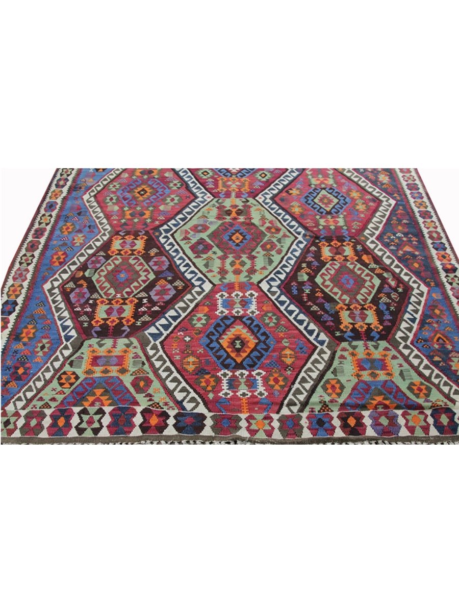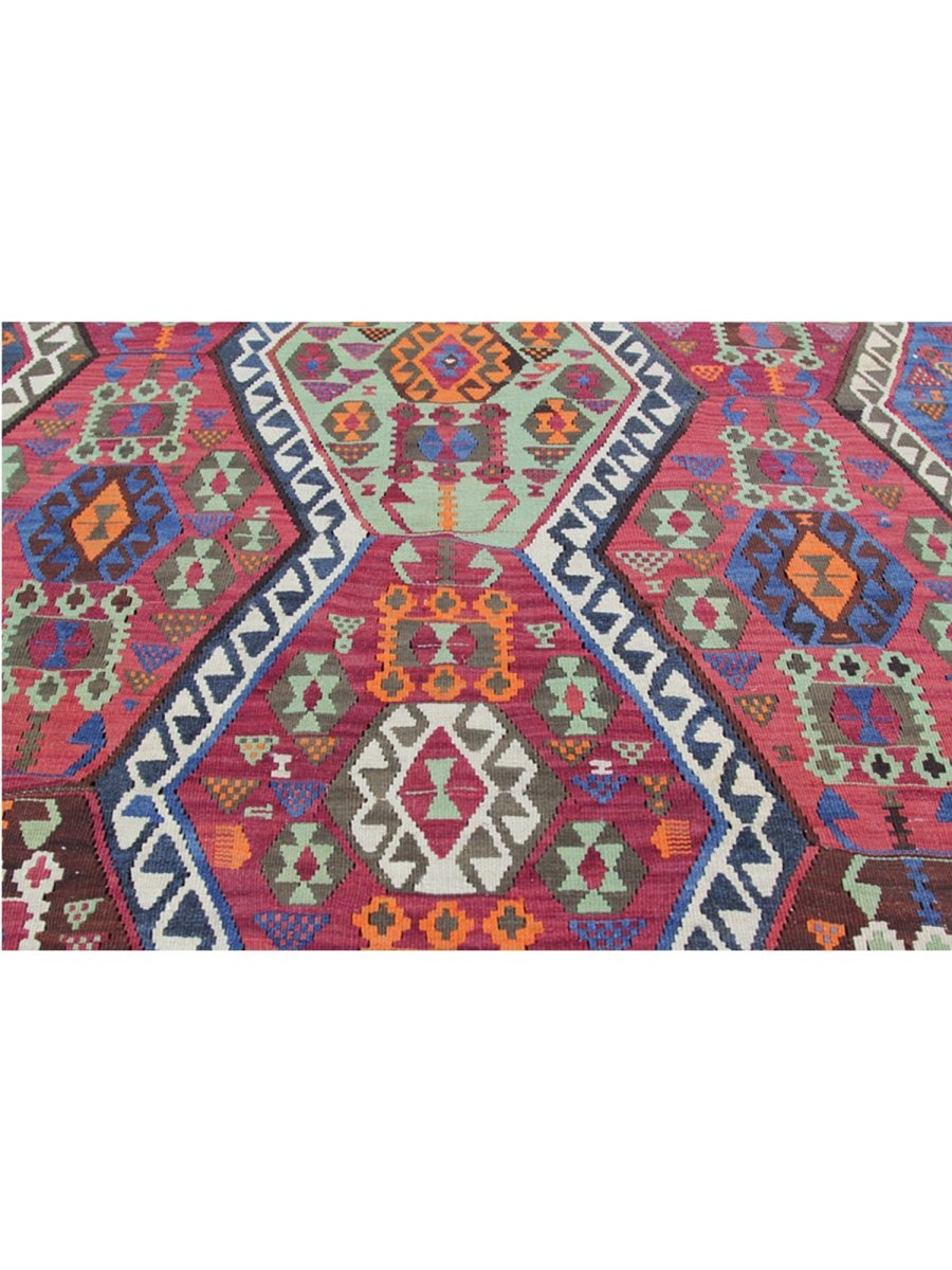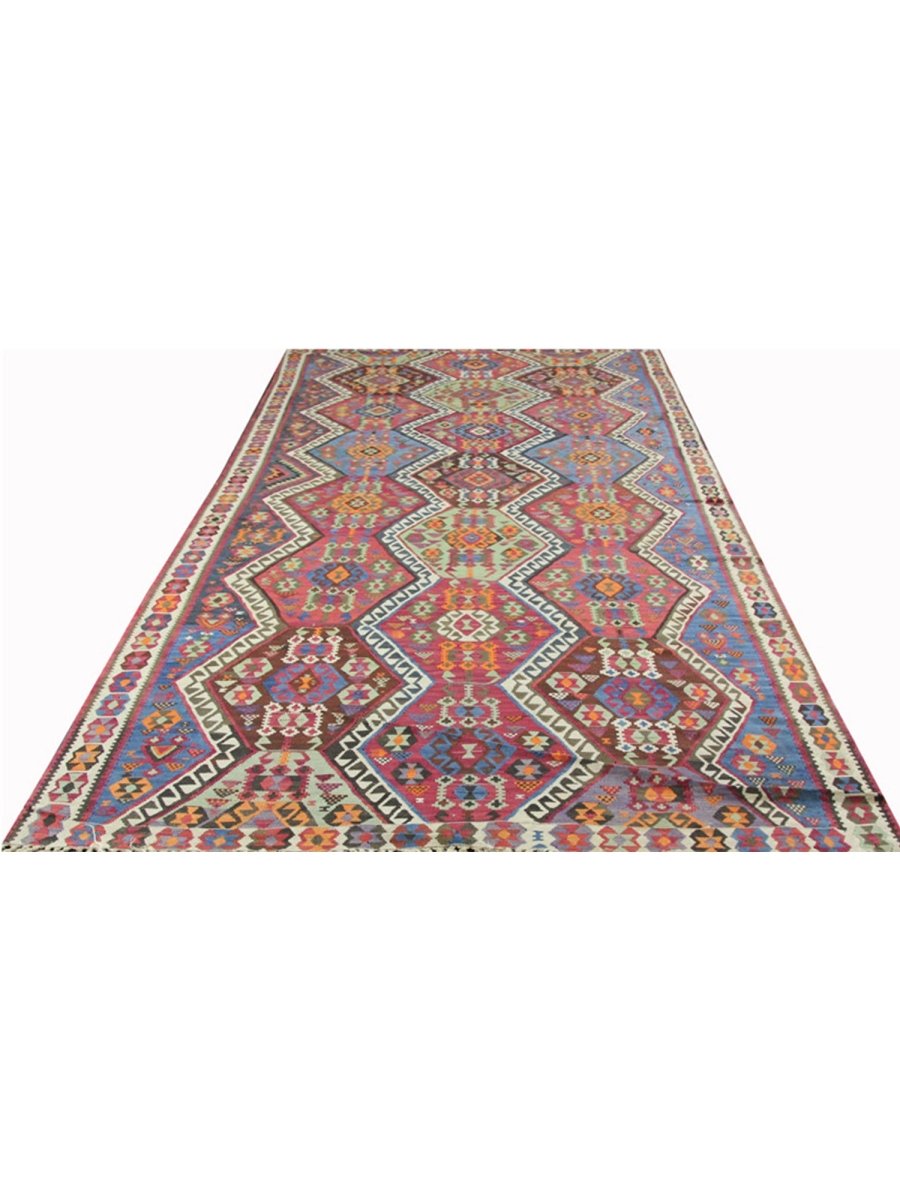 Enhance your hallway with this stunning 6x14 Persian Kilim runner, meticulously hand-knotted from premium wool. Featuring an intricate geometric pattern, this rug blends white, rust, blue, and green hues to create a timeless statement adding warmth and texture to your space. Its durable craftsmanship ensures long-lasting beauty, making it a functional and stylish addition to your home. Free shipping within the US.