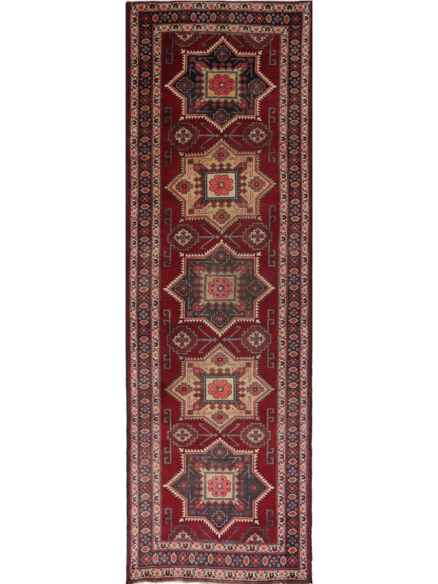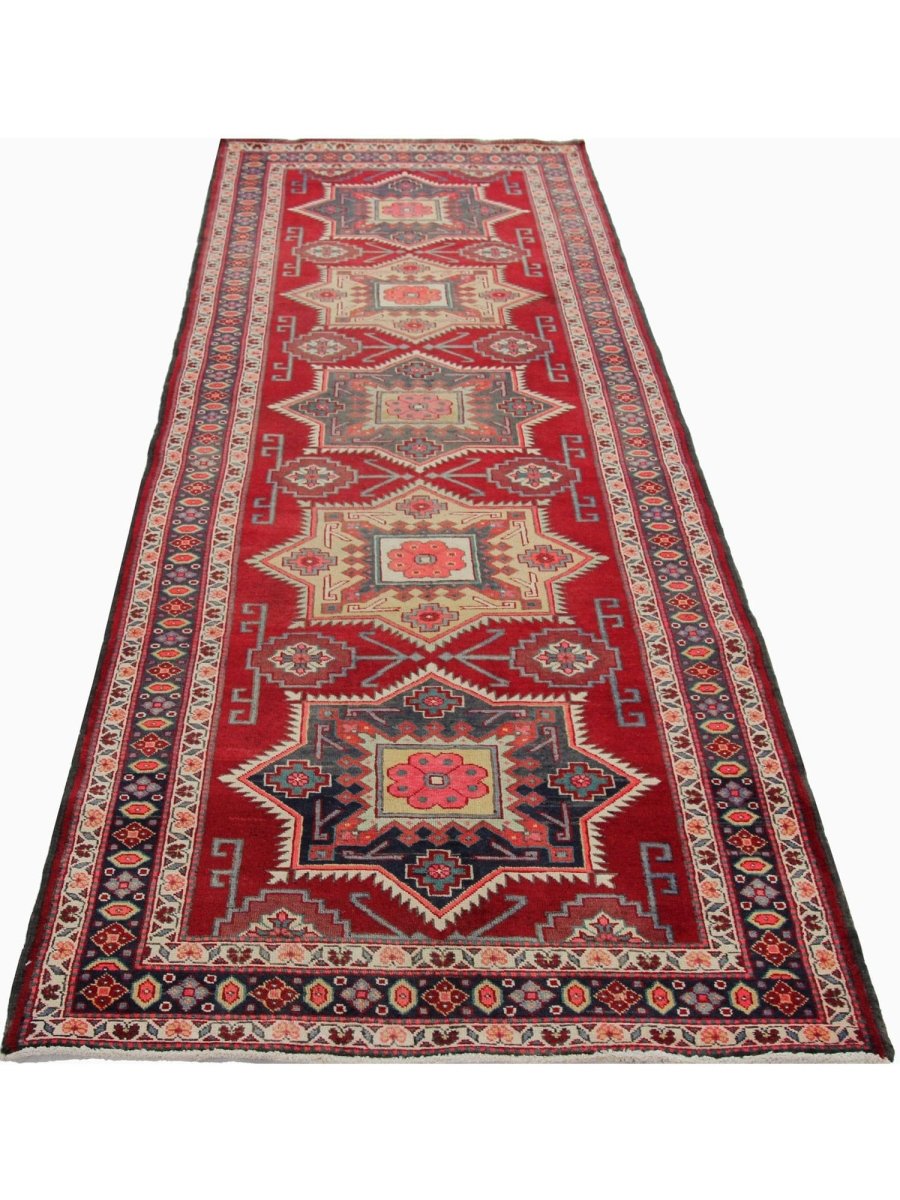 Elevate your hallway or entryway with this 4x11 Old Persian Heriz Runner Rug, hand-knotted from premium wool. The striking geometric pattern in vibrant red, soft beige, charcoal, and fresh green hues adds richness and warmth to your space. Its versatility makes it an excellent option for any decor style, thanks to the serene ambiance. Ideal for enhancing traditional decor styles, it creates a welcoming focal point in any room. Enjoy free shipping within the US for a seamless shopping experience.