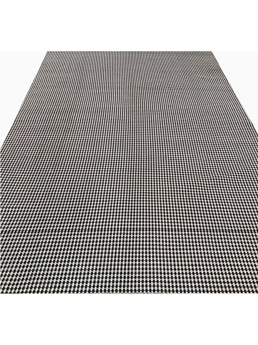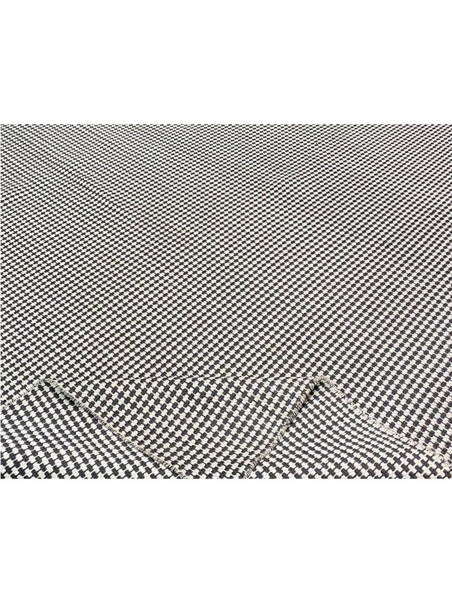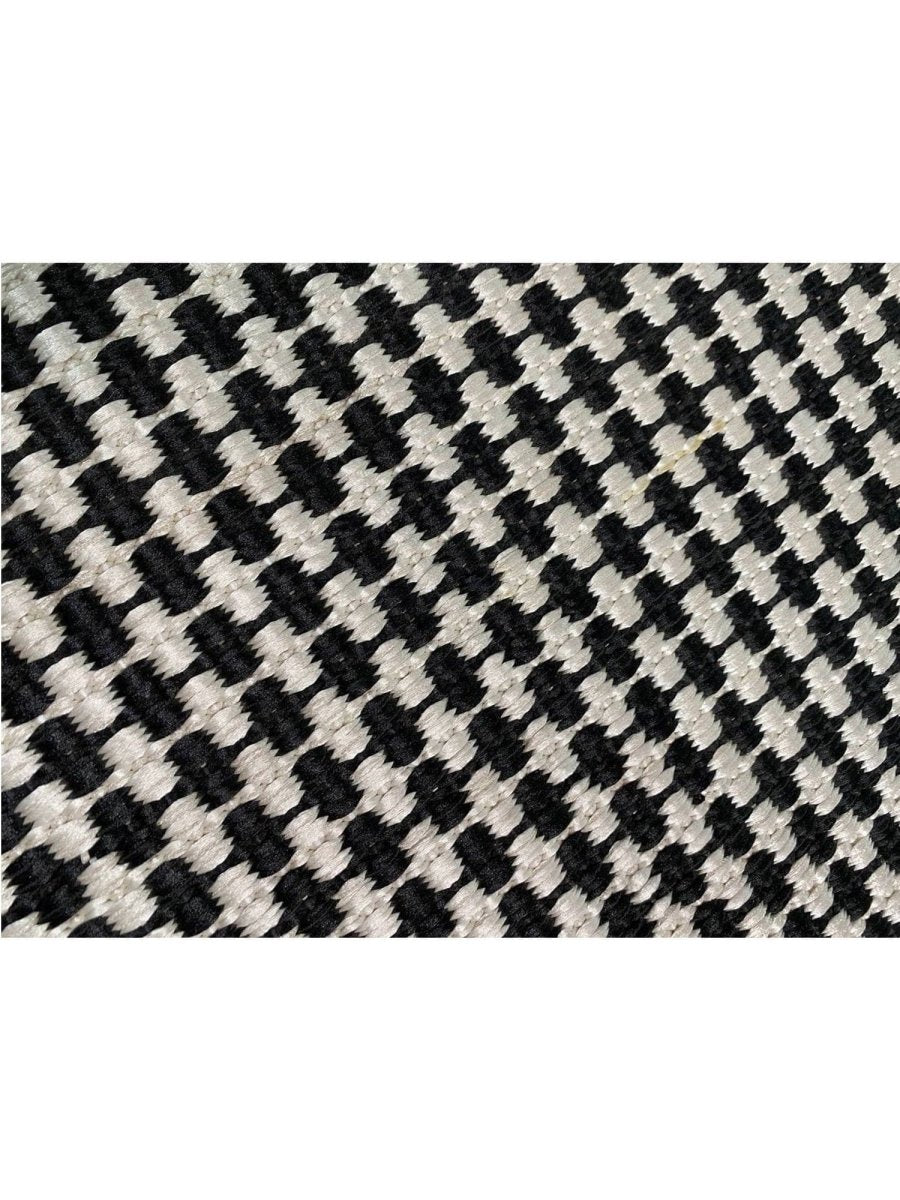 This 9x13 Contemporary Kilim Area Rug features a beautiful all-over geometric design in a black and white color palette. Luxurious bamboo silk brings simple elegance to any room. Hand-knotted on a durable cotton foundation by talented artisans in India, this rug offers both style and durability, making it a perfect addition to various interiors. Its soft texture provides a comfortable feel underfoot, while the high-quality craftsmanship ensures long-lasting beauty. This versatile rug enhances any space with its sophisticated charm.