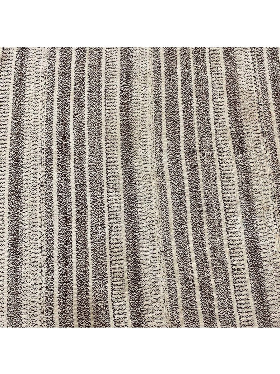 The 5x7 Persian Kilim Rug is a beautifully hand-knotted wool rug, crafted in Persia with intricate detailing and a timeless aesthetic. Featuring a refined striped design in ivory and black, this rug brings a sophisticated yet versatile touch to any space. Its durable wool material ensures long-lasting quality. The hand-knotted craftsmanship highlights the rug’s heritage, offering a unique blend of culture and artistry. With its rich texture and neutral palette, this Persian Kilim rug effortlessly complements a variety of decor styles, adding depth and warmth to any interior.