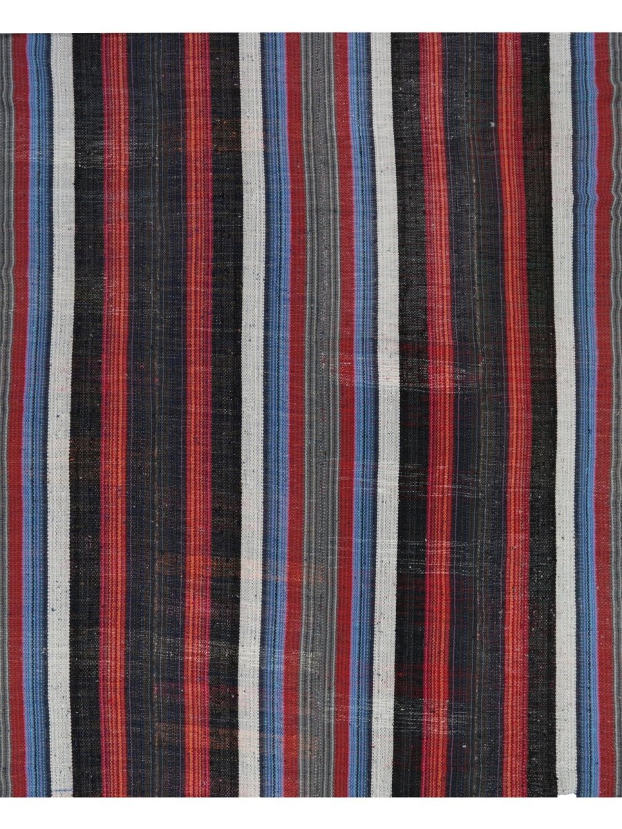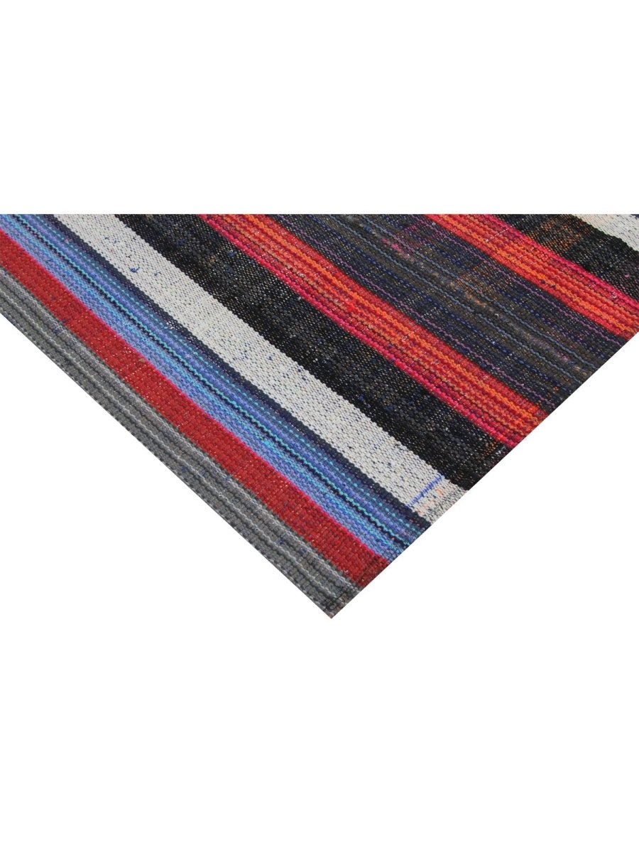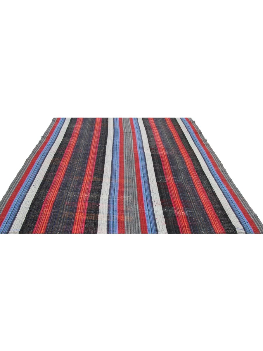 This charming 5x7 Kilim area rug is a delightful addition to any room, boasting a timeless striped pattern that adds a touch of warmth and sophistication. Made from a high-quality cotton blend, it features a beautiful combination of black, ivory, red, and blue hues, perfectly balanced to create a sense of energy and vitality. The striped pattern adds a touch of visual interest and dynamism to the rug's design, which is characterized by subtle color gradations and a classic charm. With its generous size of 5'7" x 6'7", this Kilim area rug is perfect for adding a touch of elegance. Its exceptional quality and beautiful design make it a valuable addition to any home. Whether displayed in a formal setting or a cozy retreat, this Kilim area rug is sure to impress.