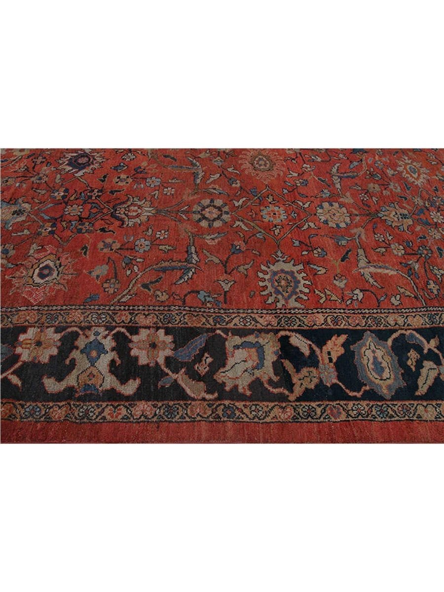 Walk through history with this stunning 10x14 Antique Persian Sultanabad area rug. This rug was hand-knotted in the Sultanabad area of Persia, renowned for its exquisite rugs. The pattern features a dense, all-over floral design. The dominant color of the background is a reddish-orange, with the flowers and other details in colors such as deep blue, lighter blue, green, and soft ivory. Crafted from natural wool, this antique rug is soft and resilient, showcasing the exceptional quality of traditional weaving techniques. Its great size is ideal for placing in a living room, dining room, or grand hall. This is not only a rug, it's art that has a story to tell. Get the bonus of free US shipping.