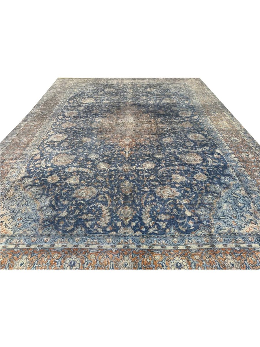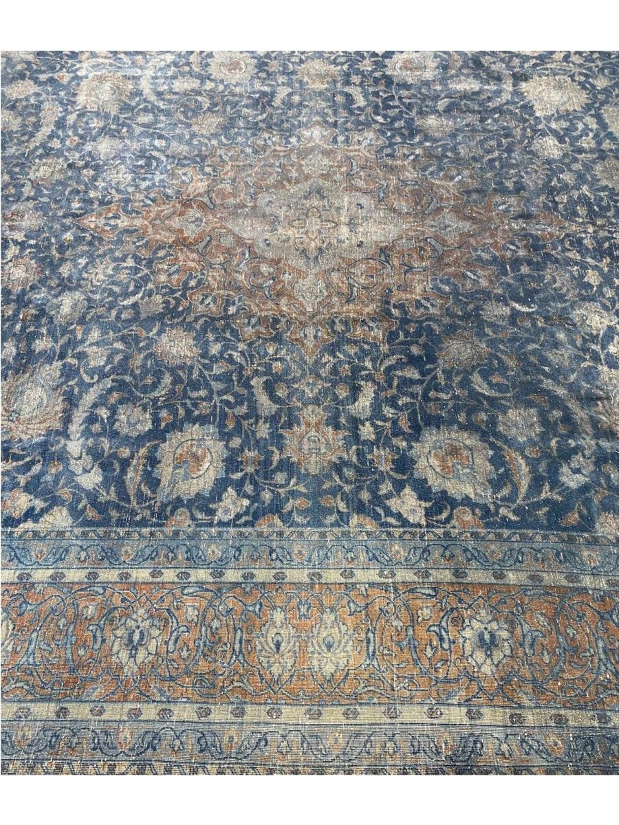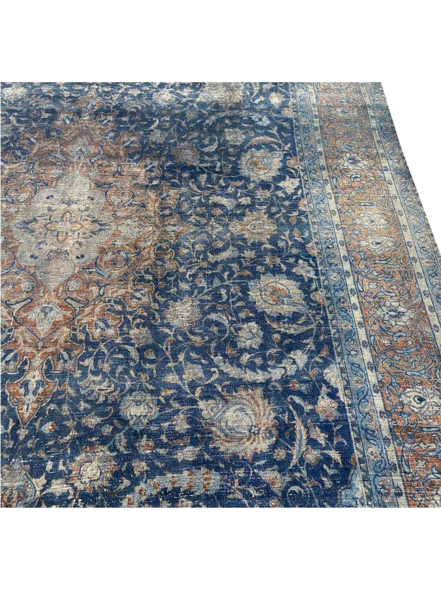 Discover the beauty of this 10x14 Old Persian Tabriz Area Rug. Handwoven in Persia, this rug showcases skilled artistry. The detailed medallion pattern gives it a sophisticated feel. The color palette features deep blue as a primary tone, complemented by shades of brown, beige, and light blue within the floral motifs and borders. These tones work together to create an elegant and calming ambiance. Made from durable wool, this rug is more than just a floor covering; it's a work of art that will enhance your home decor for years. Enjoy the lasting charm of a handwoven rug, plus free shipping within the United States.