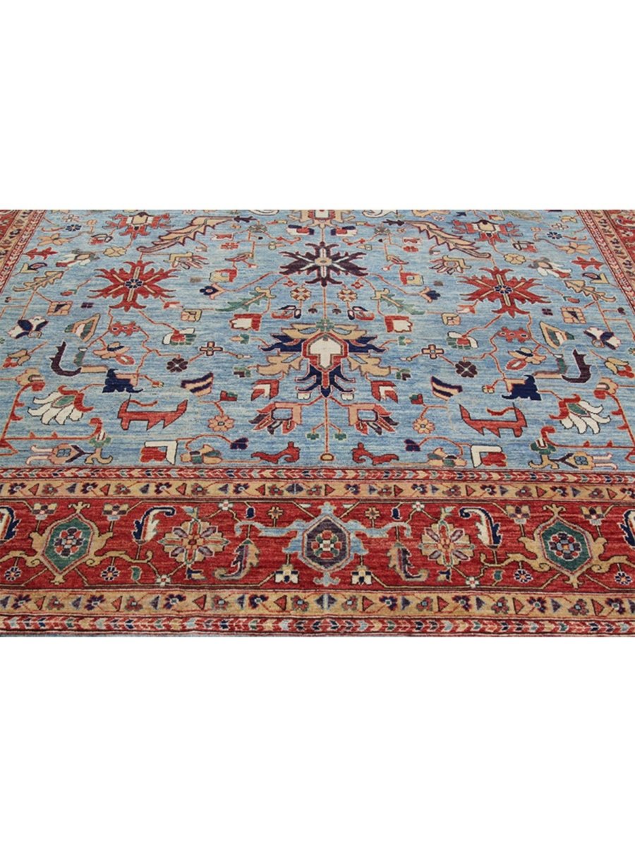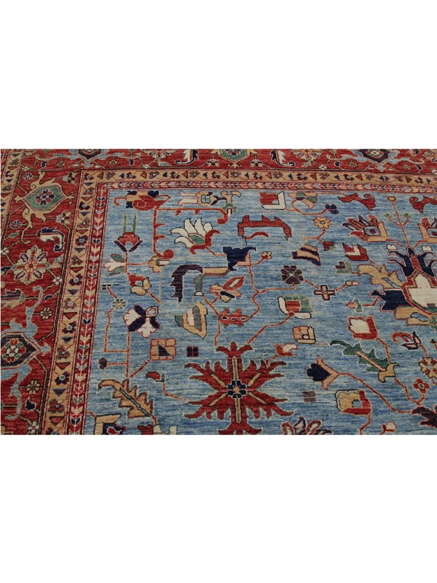 Discover the allure of the unique 10x14 Serapi Style Area Rug, which adds classic elegance to your home. This stunning traditional rug, hand-knotted from premium wool, features a floral design that brings character to any room. It creates a cozy and inviting atmosphere and is perfect for large living rooms, dining areas, or as a centerpiece in your foyer. Its exquisite blend of blue, red, green, and tan tones makes it a versatile choice for various styles. This exceptional piece not only enhances your decor but also serves as a remarkable work of art. Enjoy free delivery within the US.