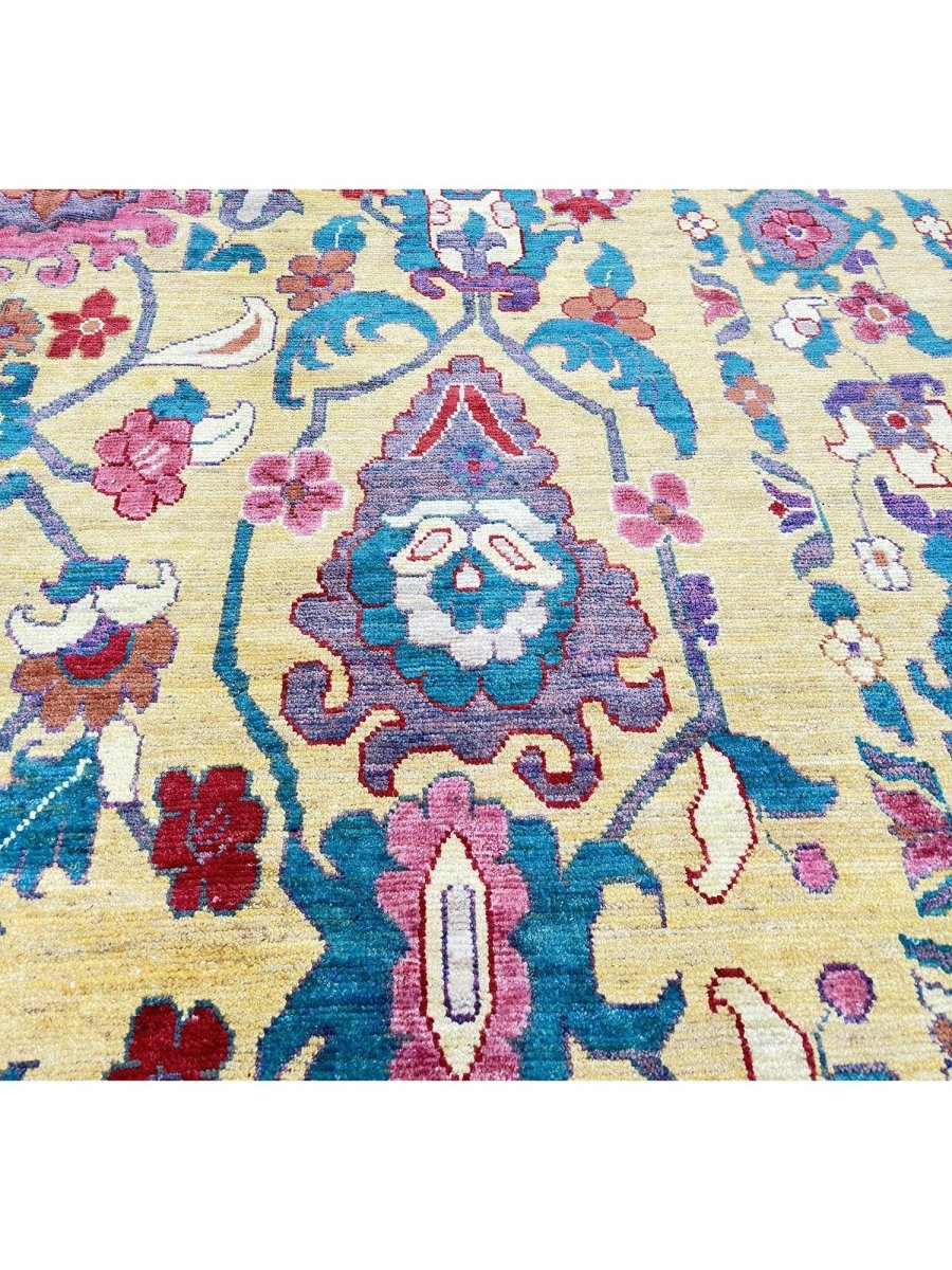 Bring timeless charm and vibrant elegance into your space with this exquisite 11x16 Persian Sultanabad Area rug. Hand-knotted from premium wool, this rug showcases a breathtaking all-over floral pattern that reflects the rich artistic heritage of Persian craftsmanship. With its majestic color palette of soft gold, rose red, deep blue, and ivory, it creates a striking piece in large living areas, dining rooms, or formal spaces. This rug isn't just a decorative piece; it's a celebration of heritage, handwoven to last for generations to come. Enjoy the beauty of intricate design and the comfort of soft, durable wool beneath your feet. Additionally, we offer free shipping throughout the U.S. for your added convenience.