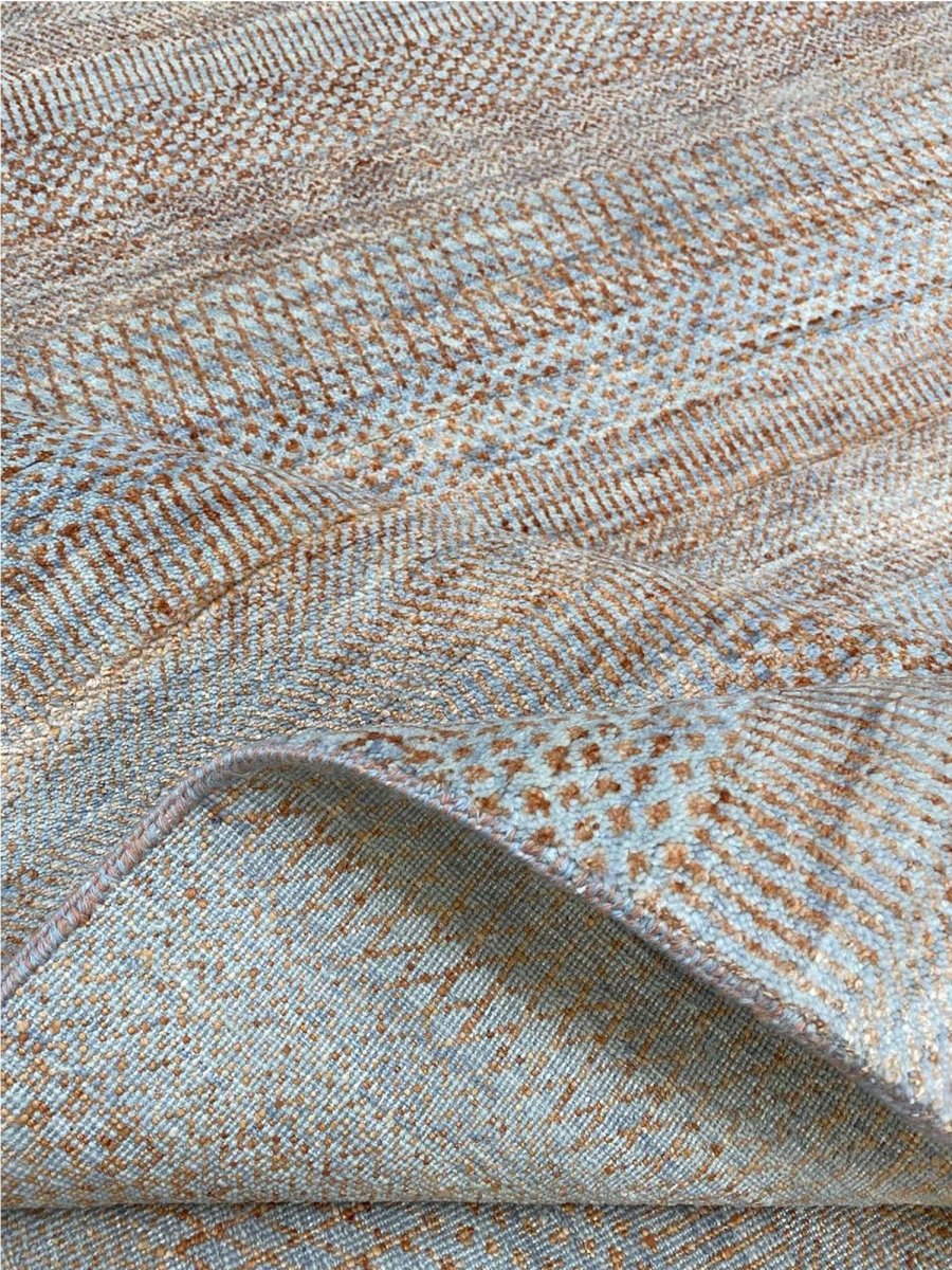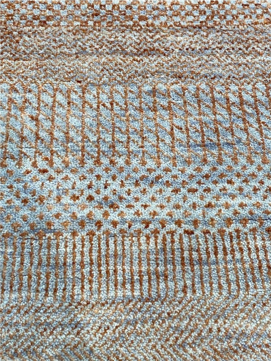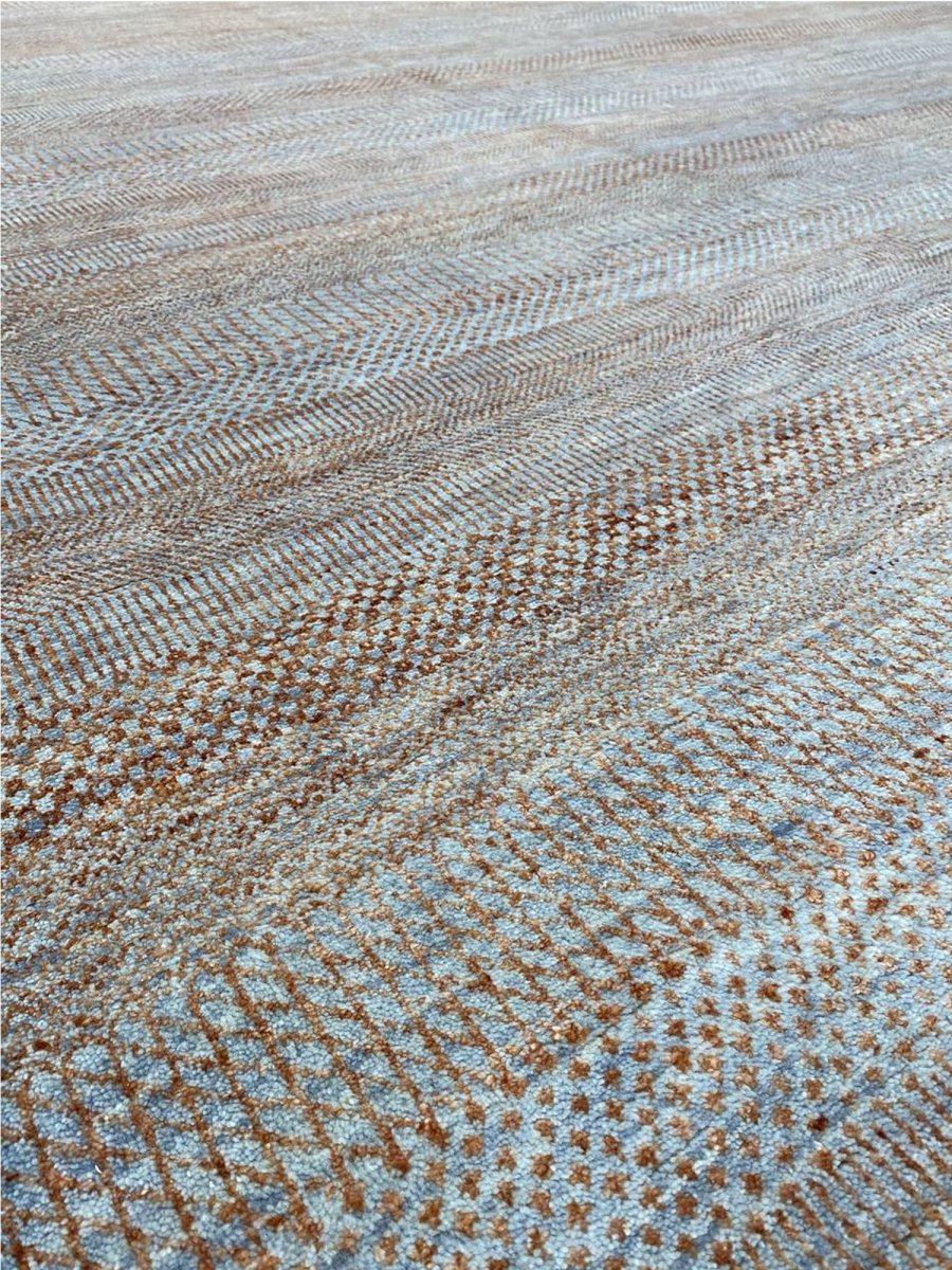 Add a touch of casual elegance with this 12x14 Transitional Area Rug, expertly crafted in India. Featuring a captivating geometric pattern, this rug showcases a simple yet effective design in a balanced palette of blue, beige, brown, and gray. Crafted from durable wool and bamboo silk, it offers lasting quality, easy care, and a comfortable texture underfoot. The clean finish reflects thoughtful craftsmanship and understated design. Blending simplicity with function, this versatile piece brings warmth, texture, and a relaxed feel while effortlessly enhancing any setting. Enjoy the convenience of free shipping across the United States. Each rug is one of a kind, with subtle variations that highlight its artisanal character.
