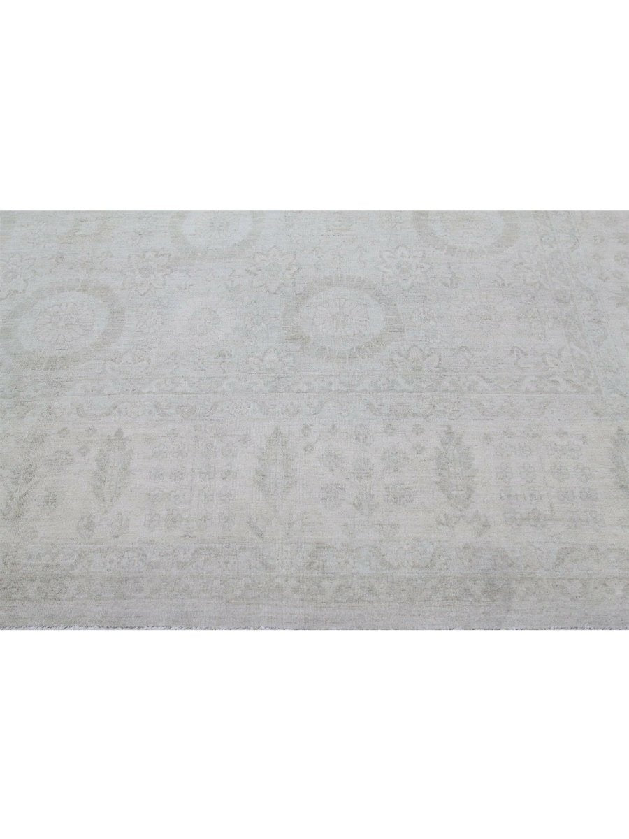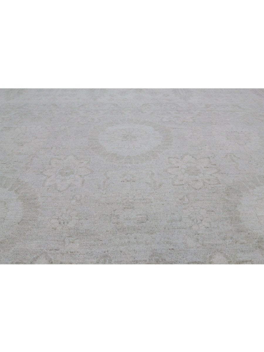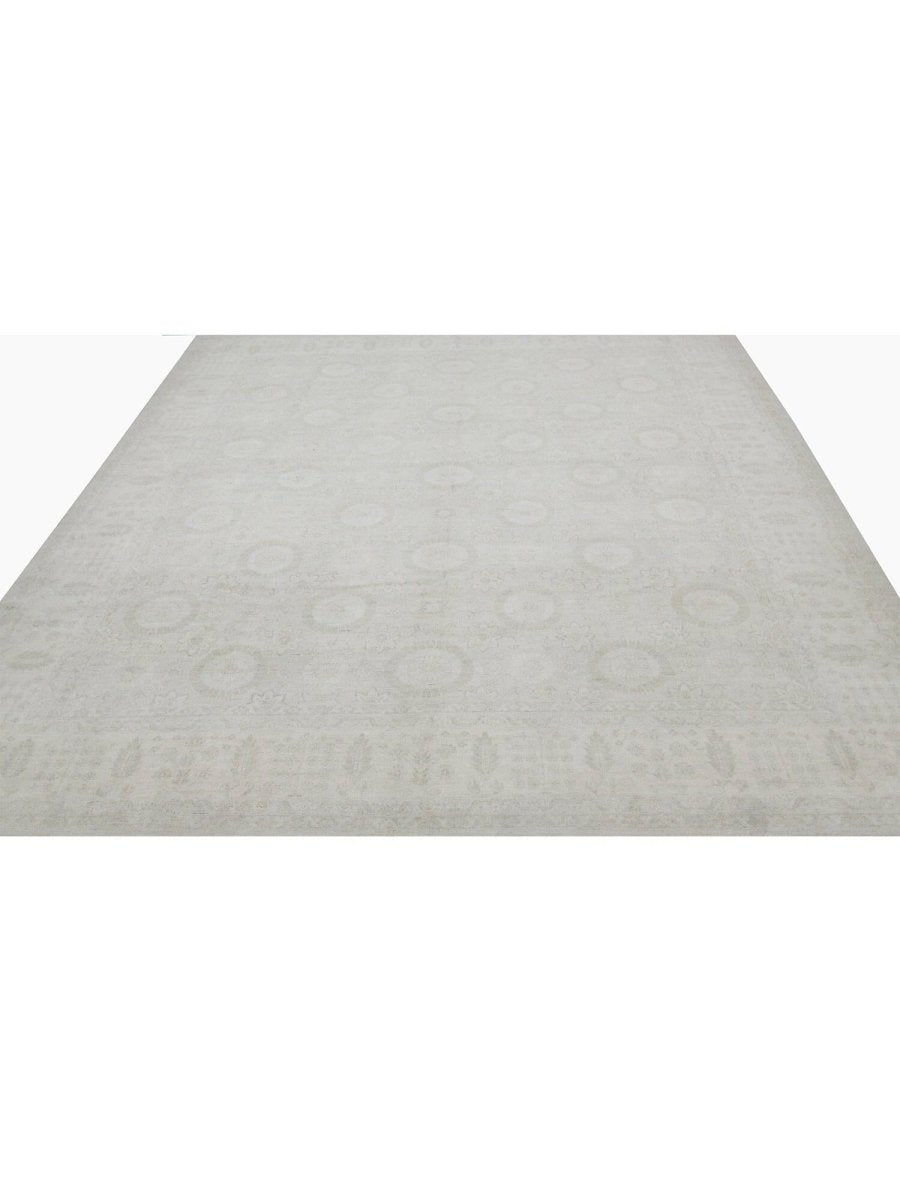 Add a touch of subtle elegance to your home with this 12x14 Handwoven Oushak Style Area Rug, crafted in Pakistan. This rug features a subtle floral pattern, showcasing delicate motifs in a soft light gray and beige palette. Its hand-knotted wool construction ensures durability and lasting beauty and is perfect for spacious living rooms, dining areas, or bedrooms. The intricate detail reflects the artisan's skill and timeless design heritage. This piece effortlessly complements, adding warmth, texture, and sophistication. A true blend of artistry and function, it easily brings heritage charm into any space. Enjoy the benefit of free shipping across the United States. Each rug has one-of-a-kind subtle variations highlighting its handmade nature.